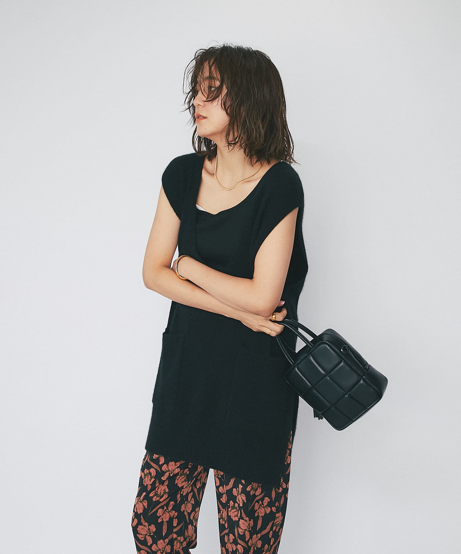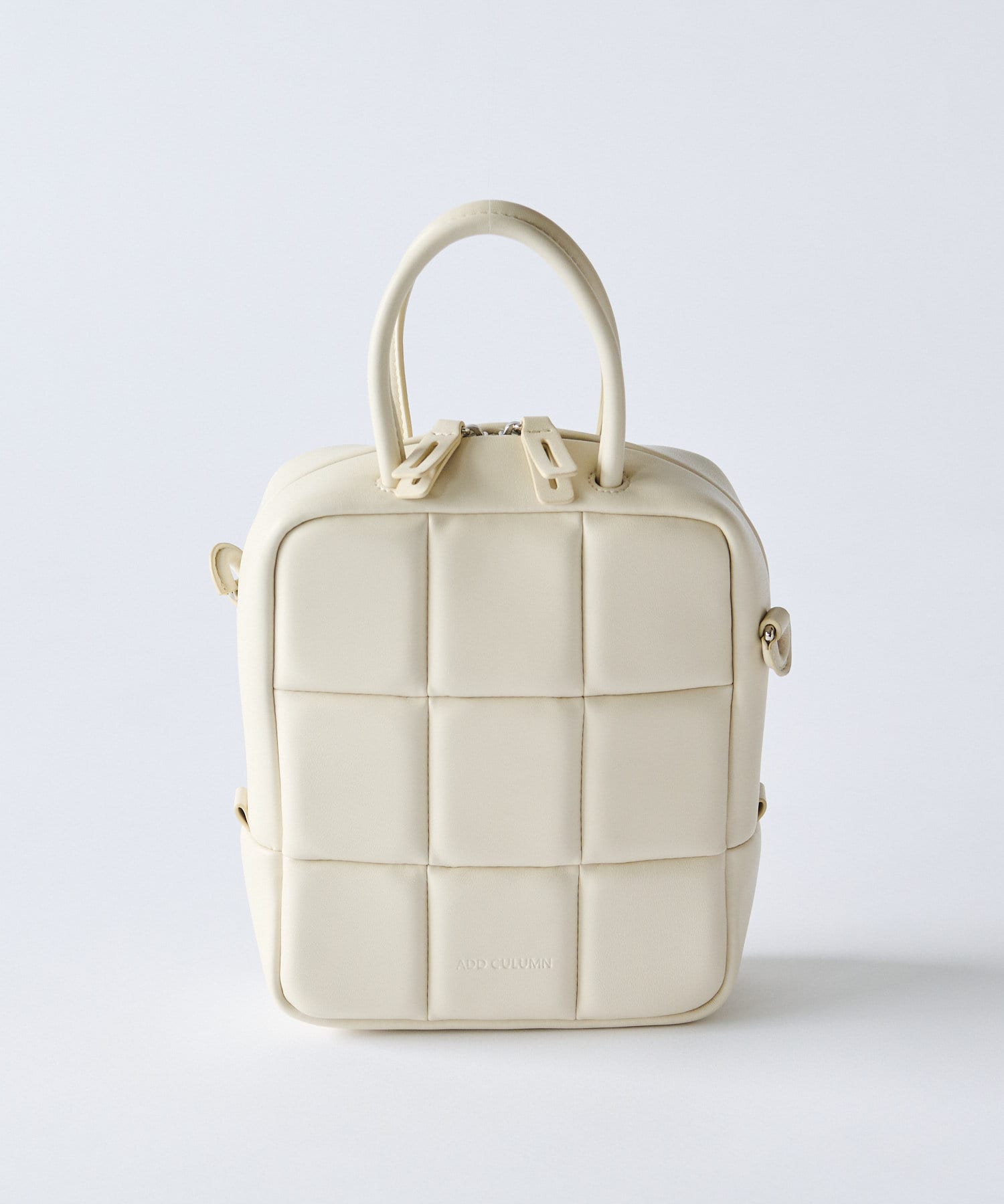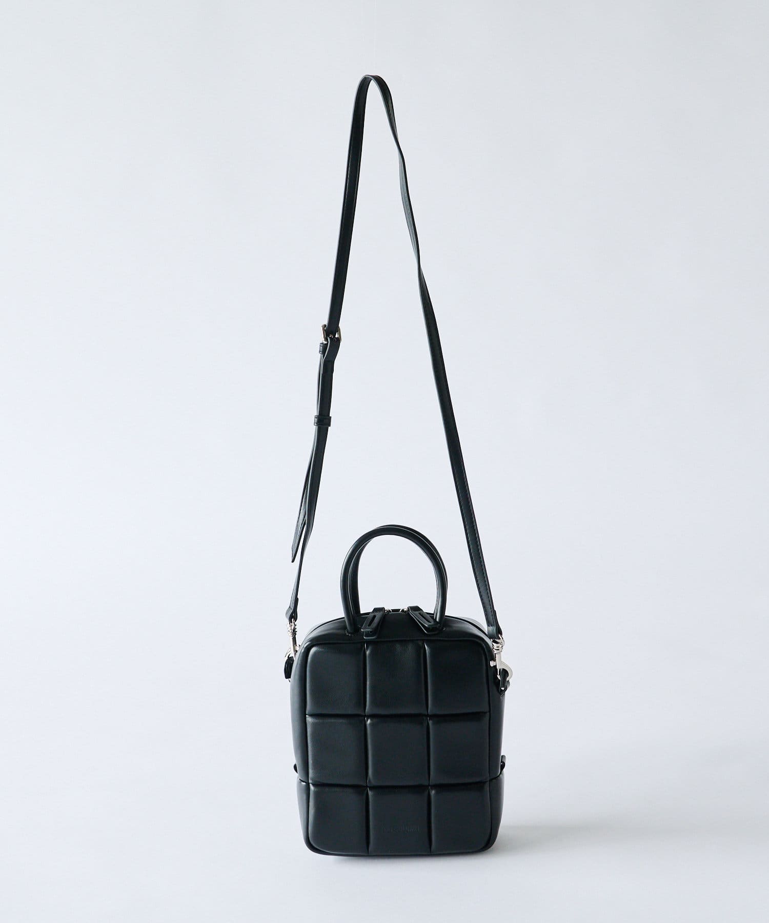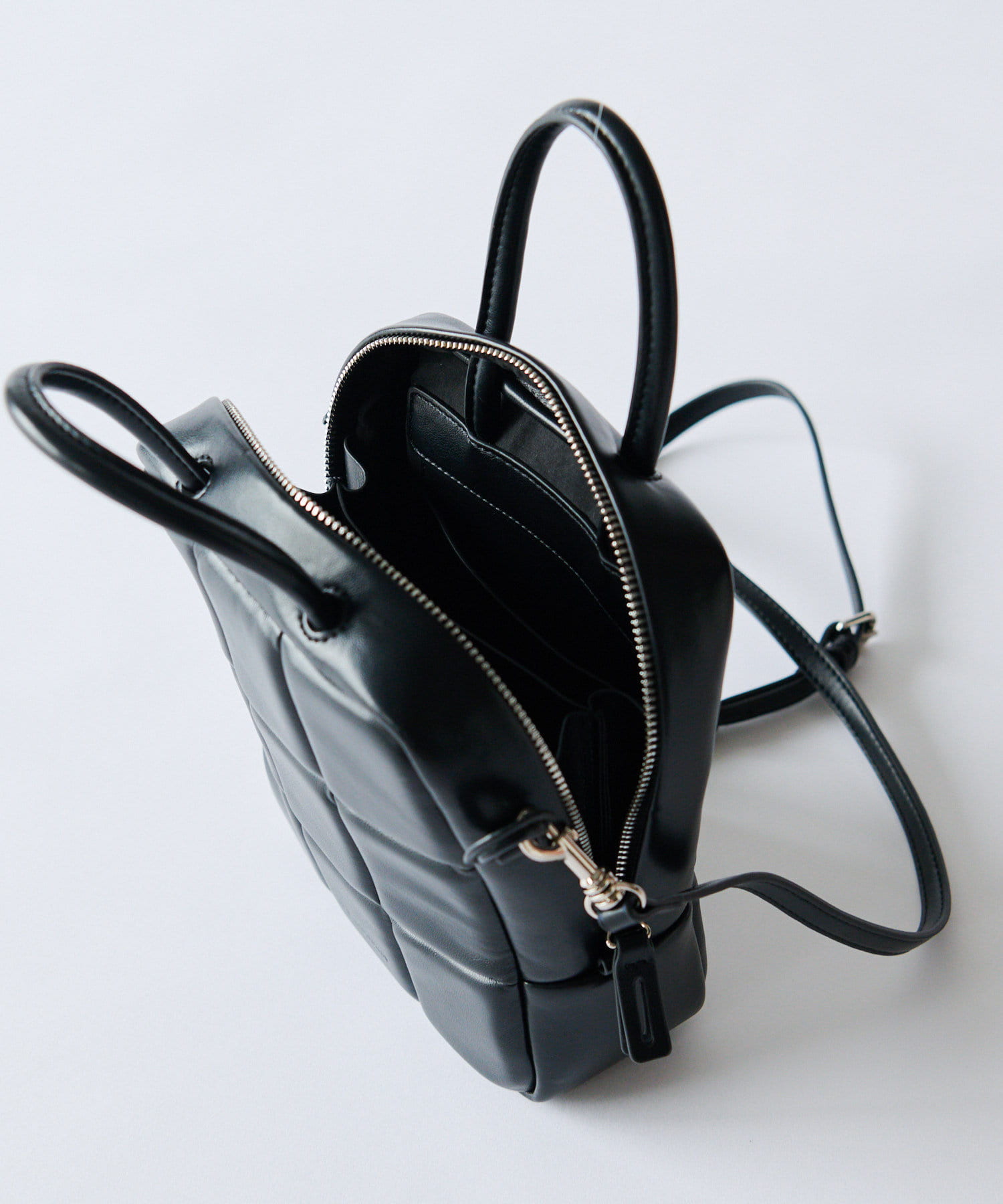 ダウン調の縫製でスクエアに模られたデザインでスタイリングにアクセントをプラスできます。