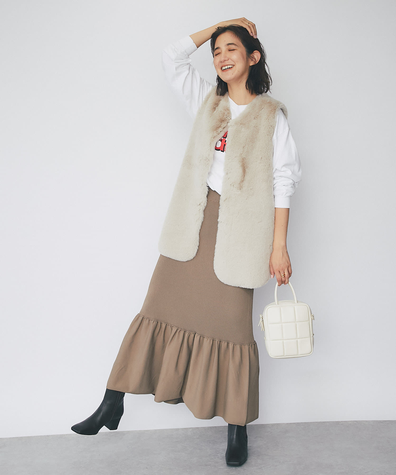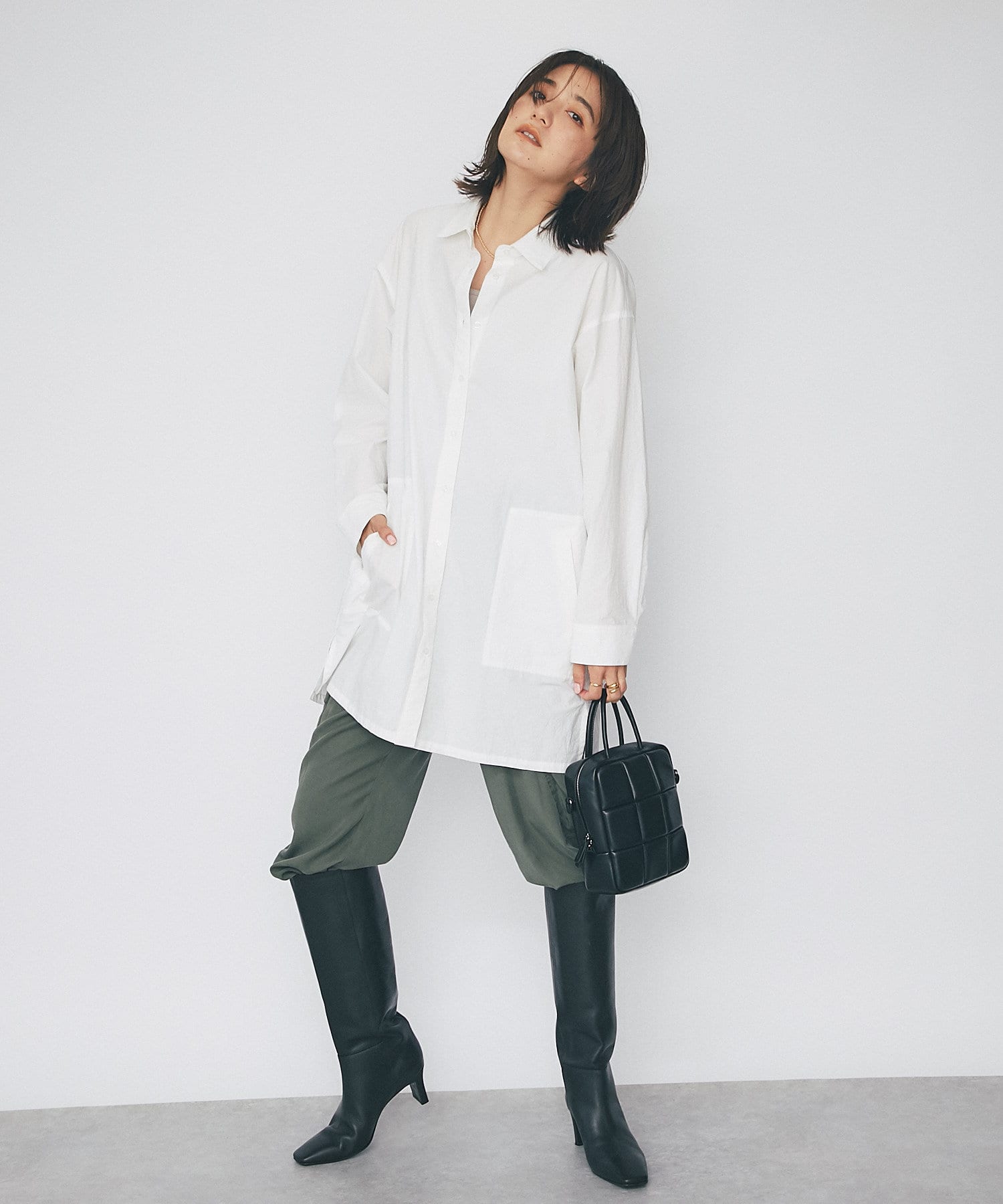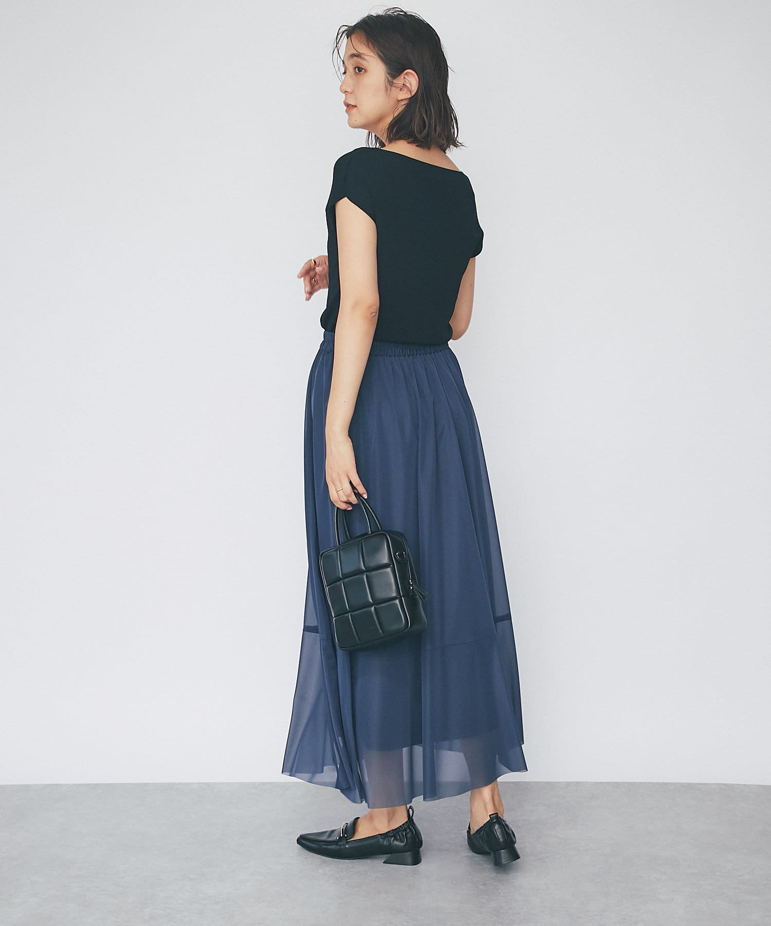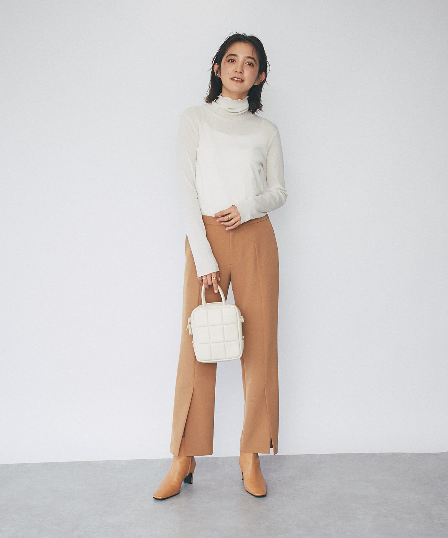 ダウン調の縫製でスクエアに模られたデザインでスタイリングにアクセントをプラスできます。