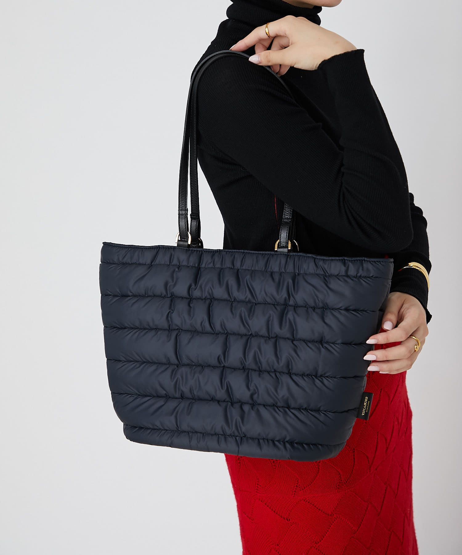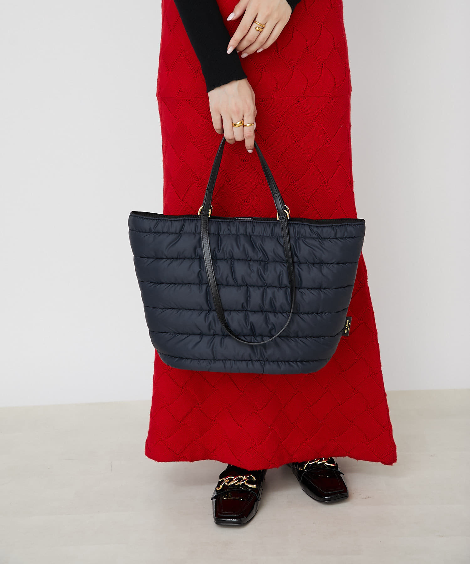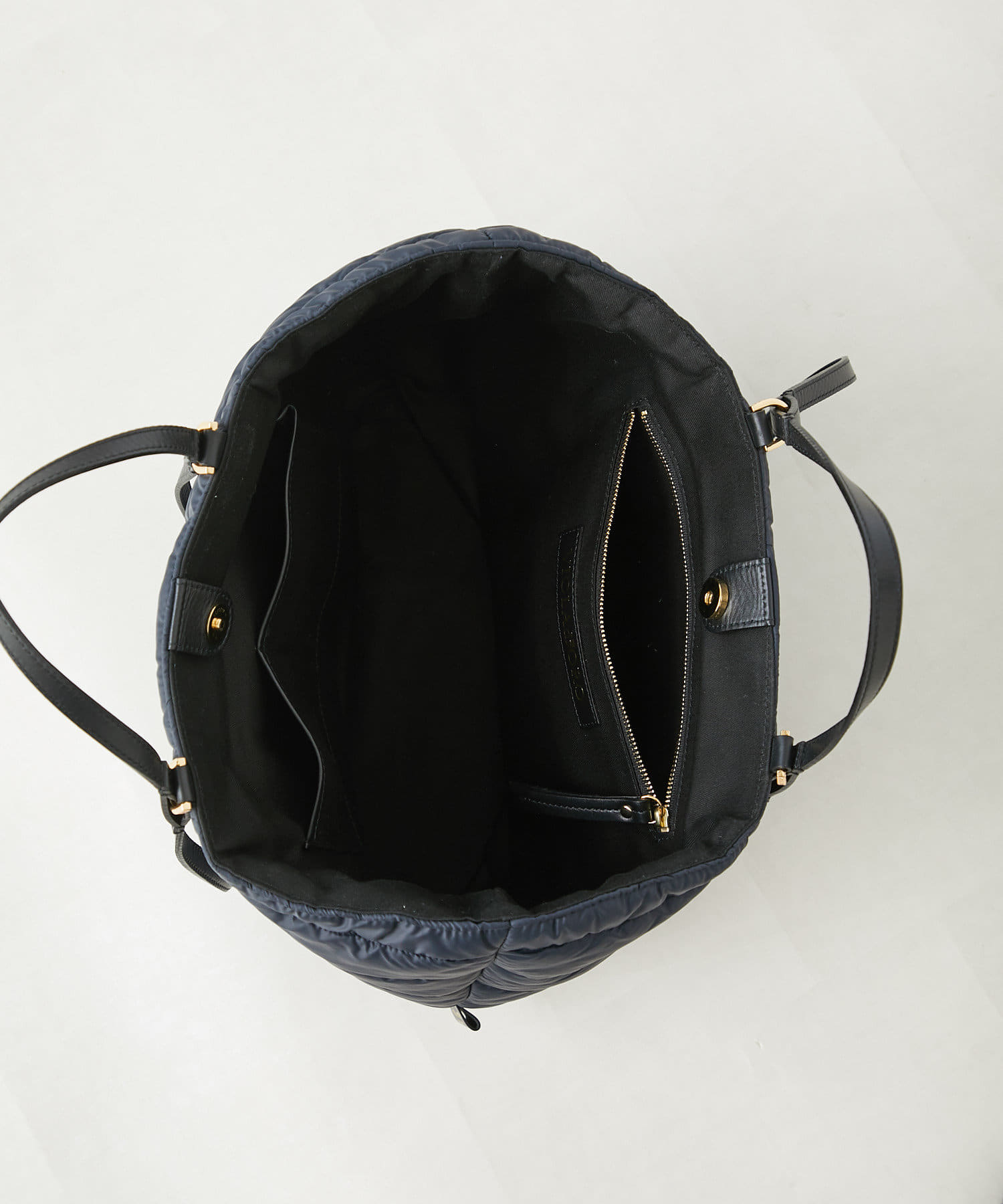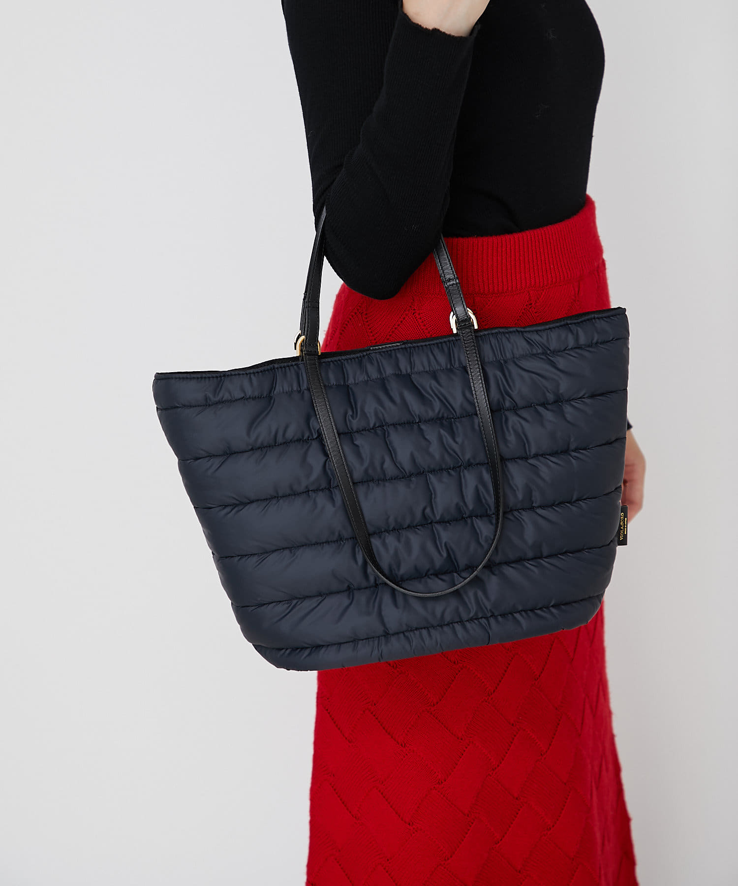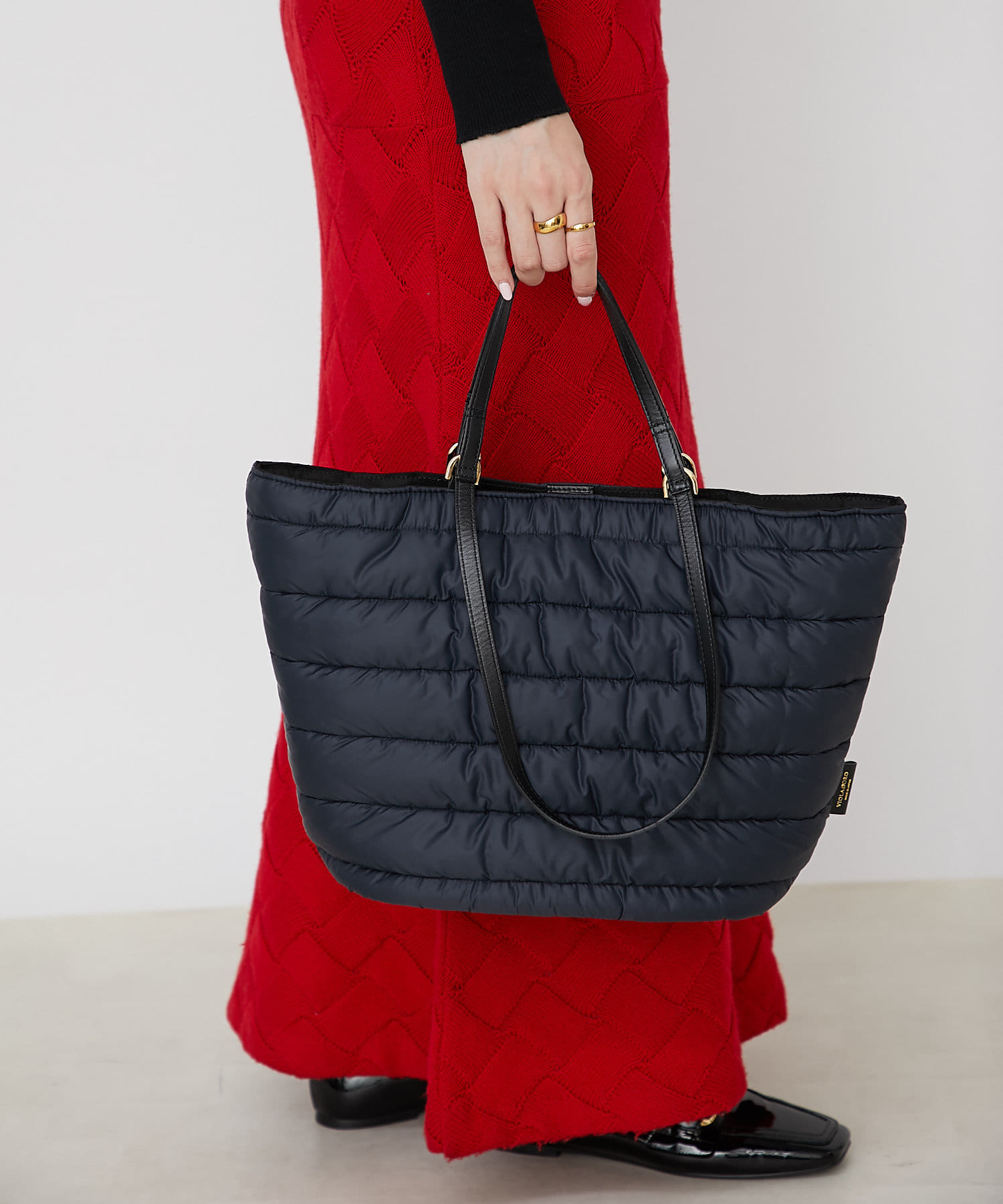 撥水性のあるナイロンをキルティング加工したトートバッグ。