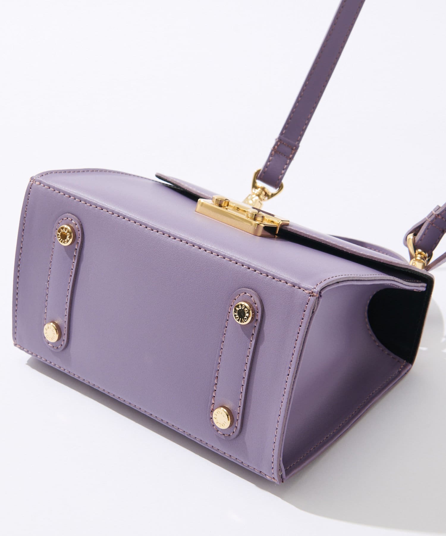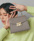 シンプルなデザインとゴールドの金具が高級感を演出するハンドルバッグ。