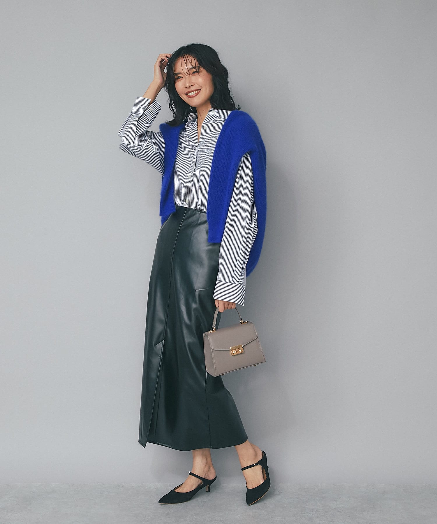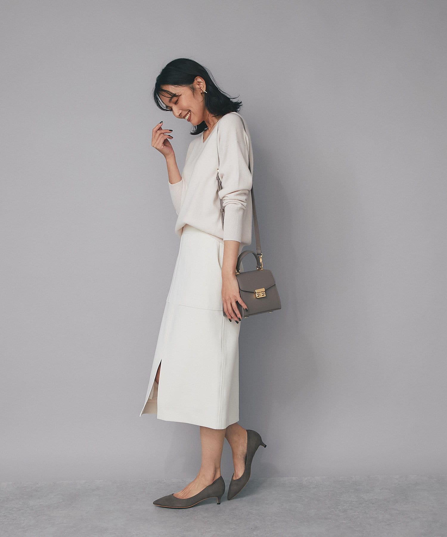 イタリアンレザーを使用した、マットでありながらも滑らかな素材感は女性らしさがあり上品なスタイリングにもマッチするアイテム。