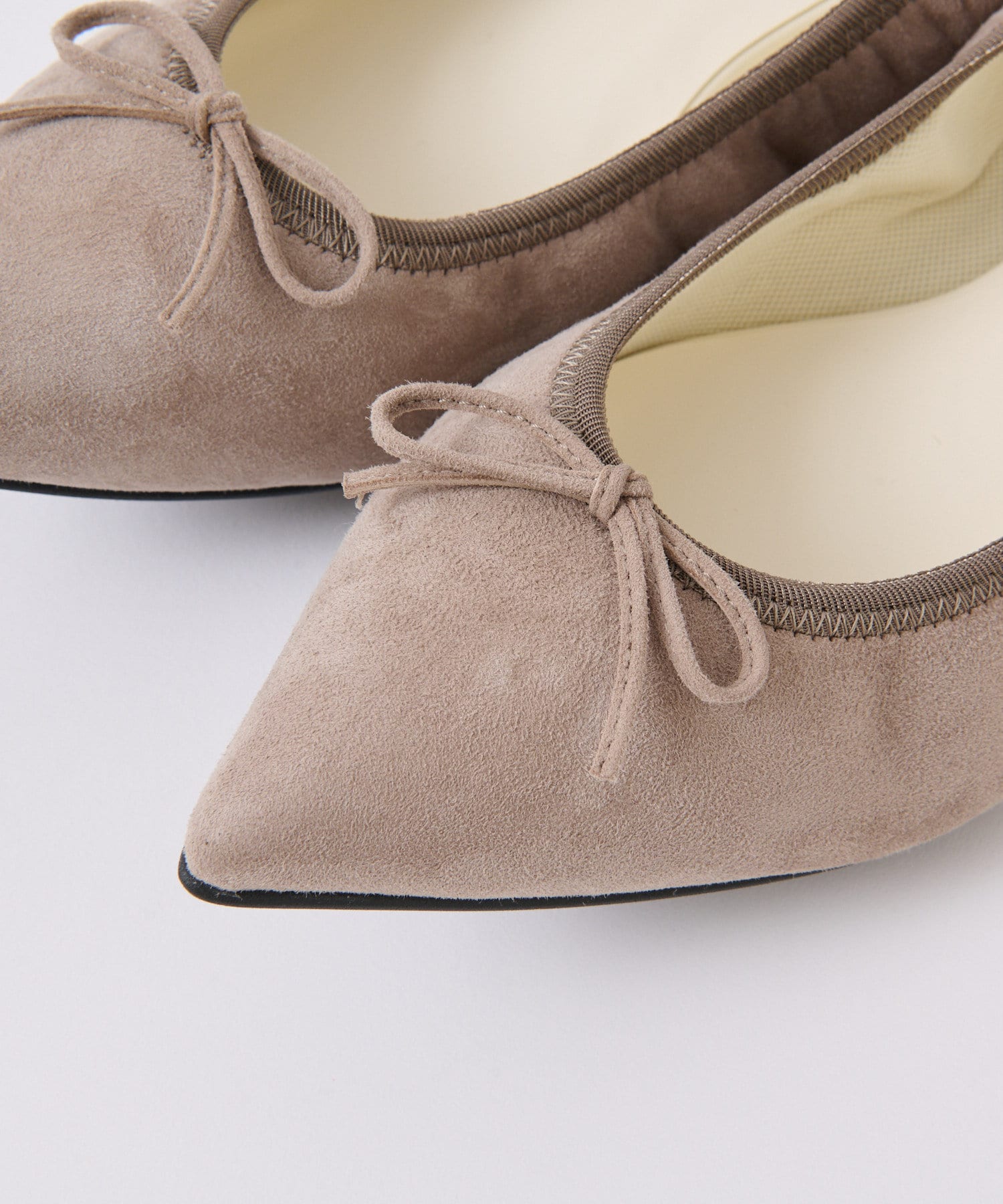 ソフトな履き心地で低めなヒールで疲れ知らずなポインテットバレエシューズ。