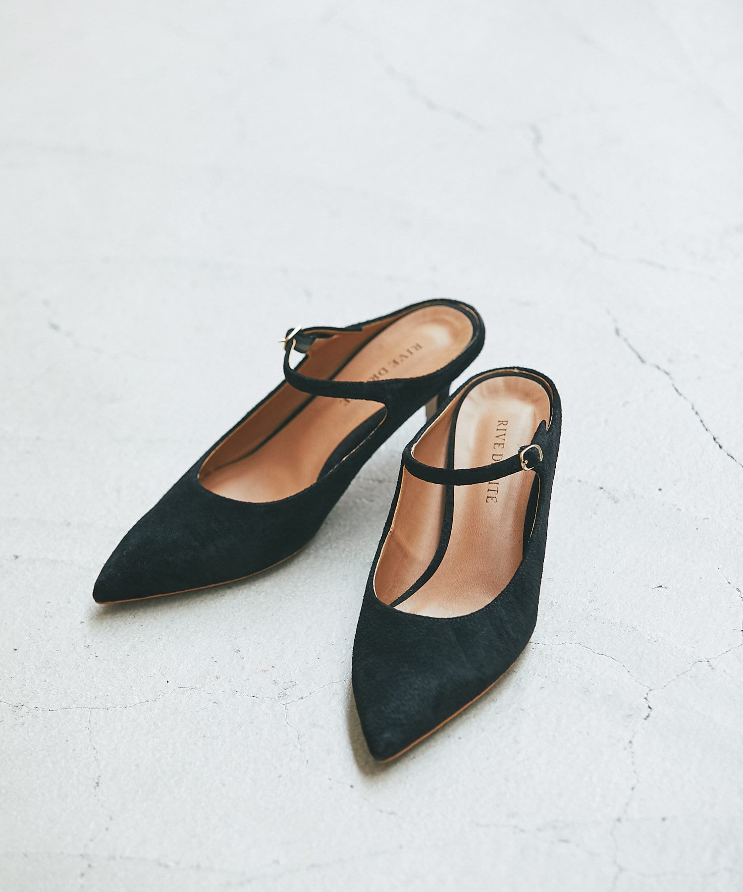 足元をエレガントに見せるポインテッドミュール。