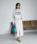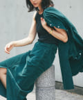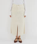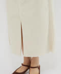 一見、Iラインなシルエット、着ると少しフレア感が出るフェミニンなムードを大切にしたロングスカート。