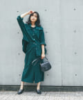 同素材のシャツで合わせてセットアップで合わせてワンピースのようなコーディネートも◎