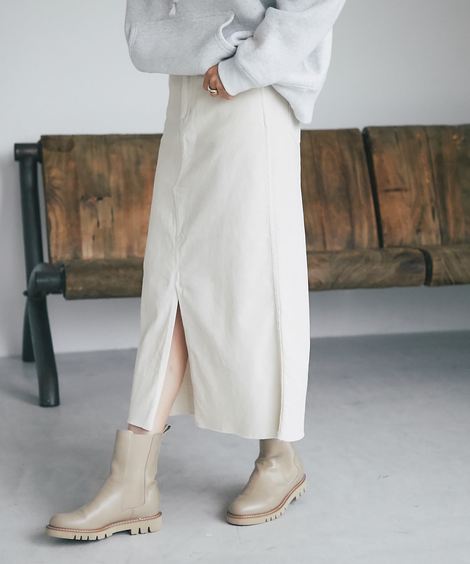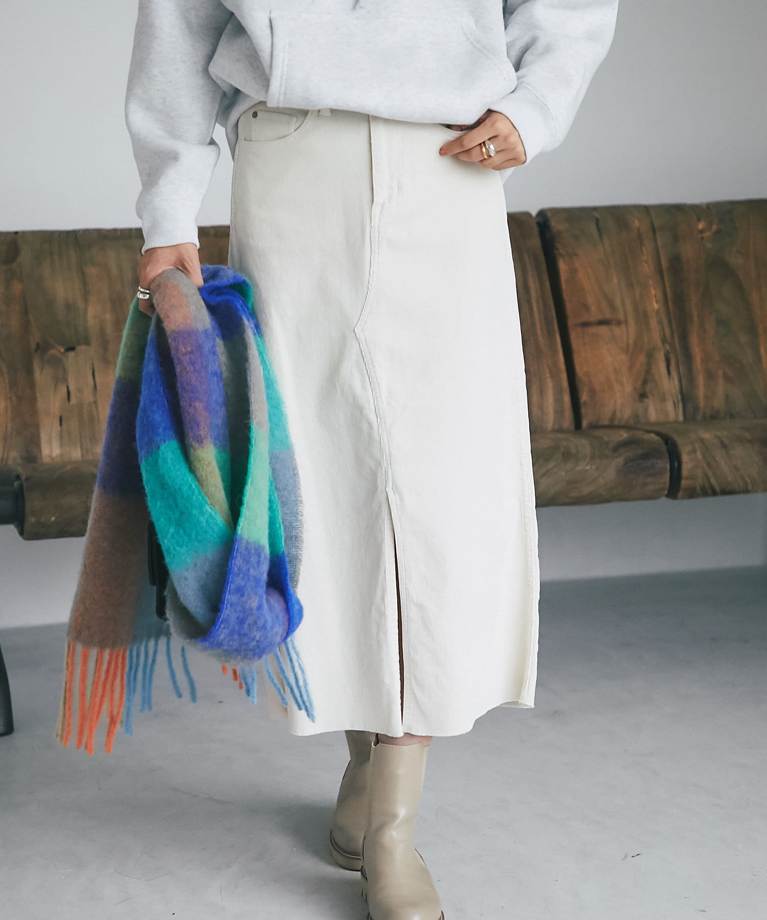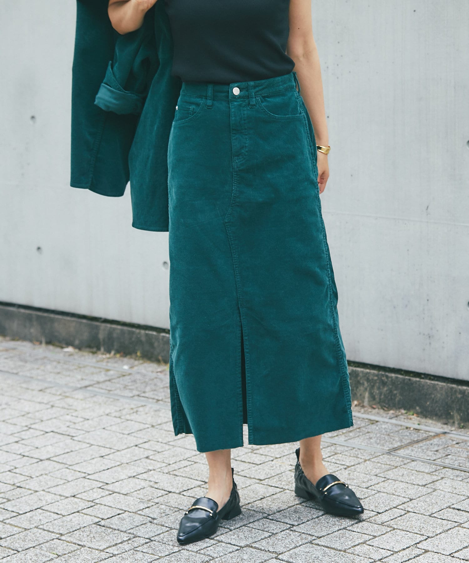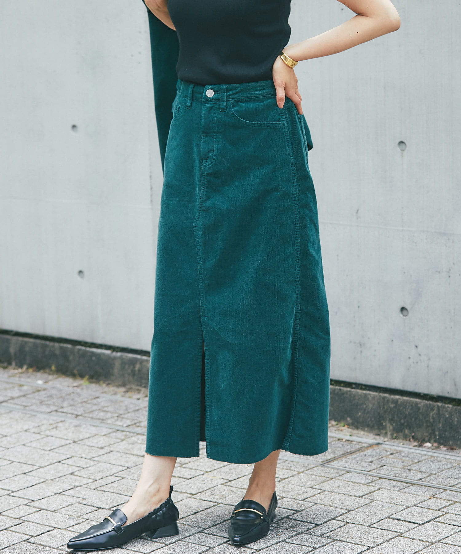 温かみがあるコーデュロイ素材で秋冬のコーディネートにマッチするスカート。