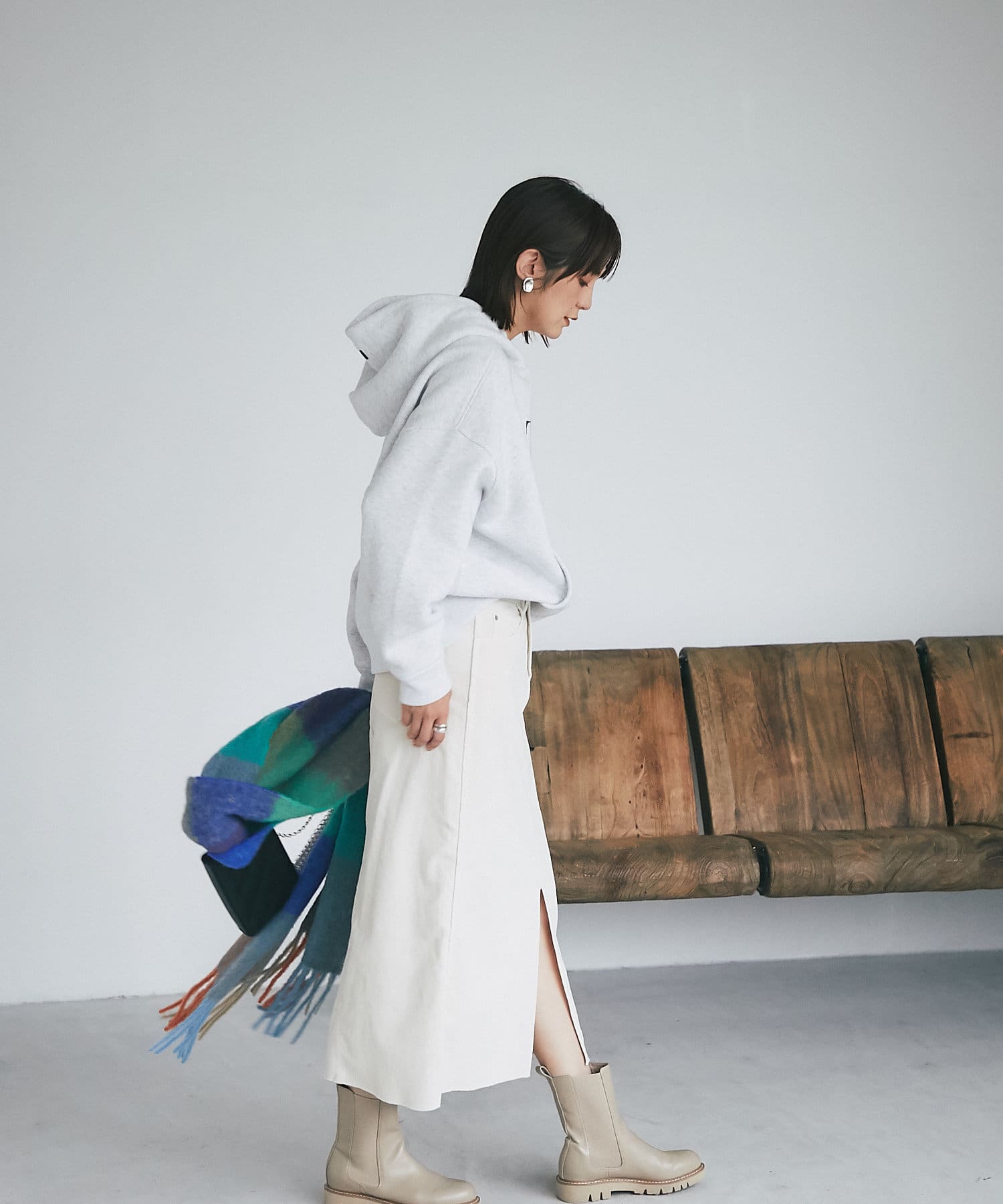 また秋冬にぴったりなオーバーサイズニットやスウェットなどで合わせると素敵に着こなせます。