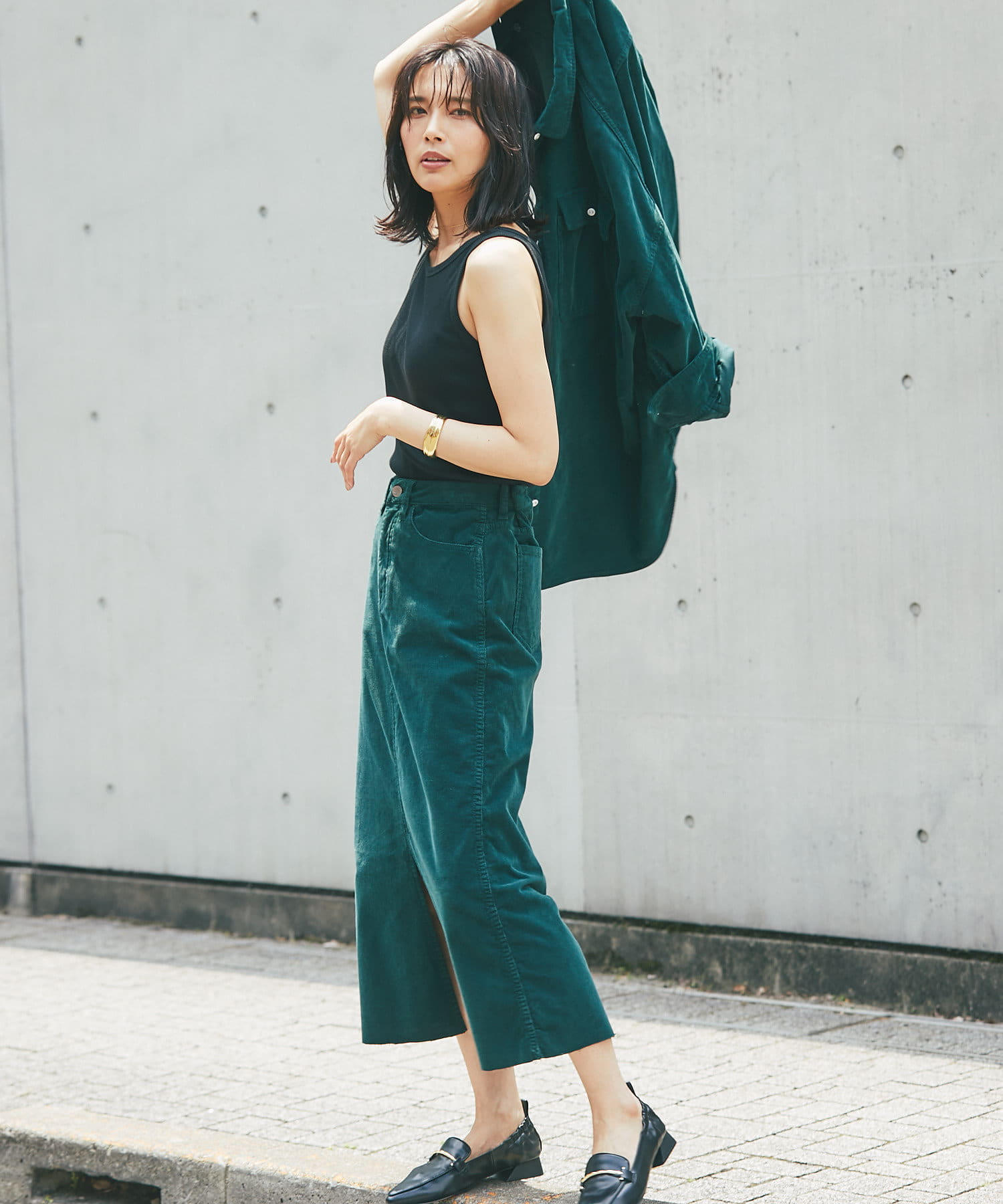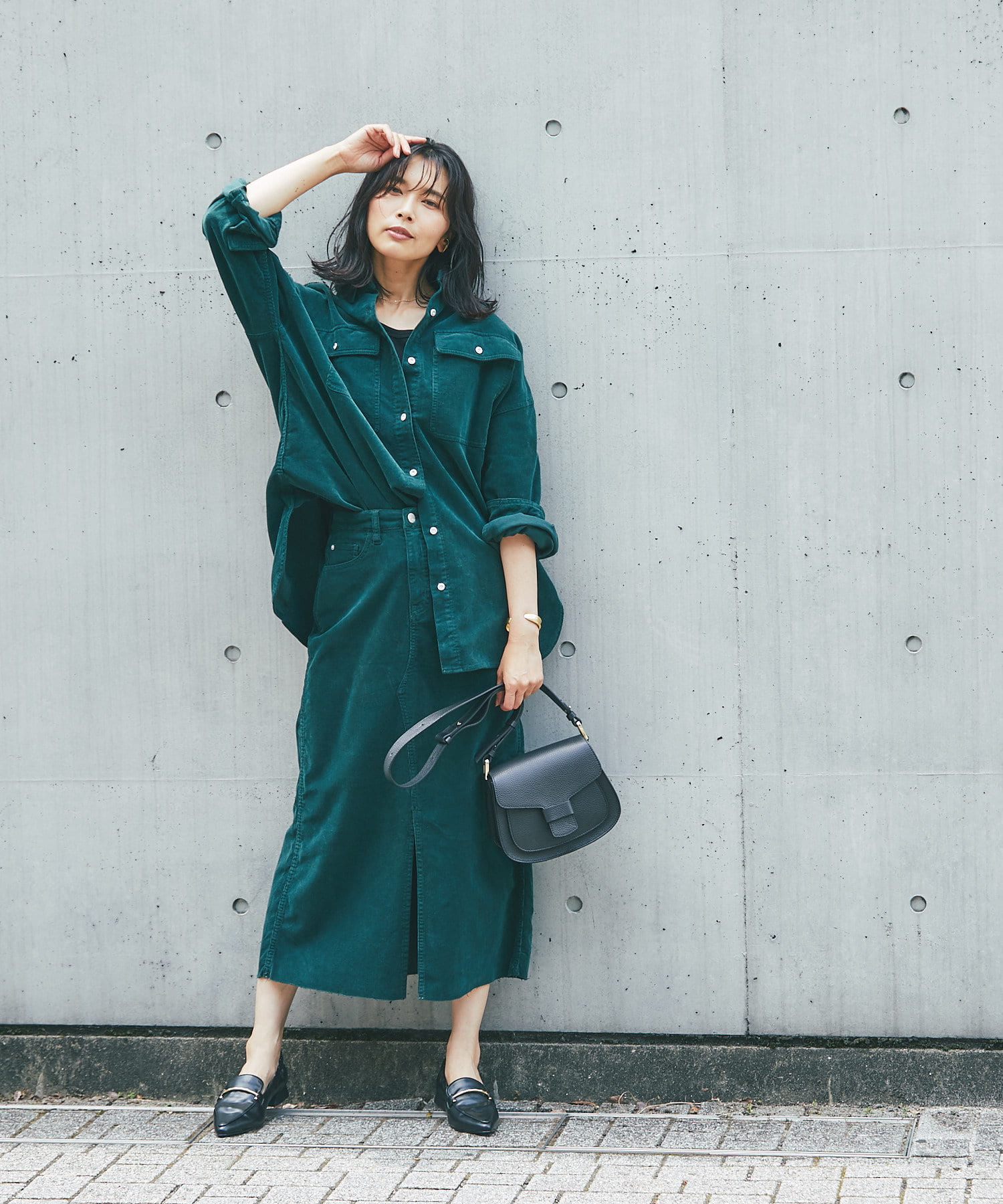 ・女性らしさを損なわず程よくカジュアルなコーデュロイ素材