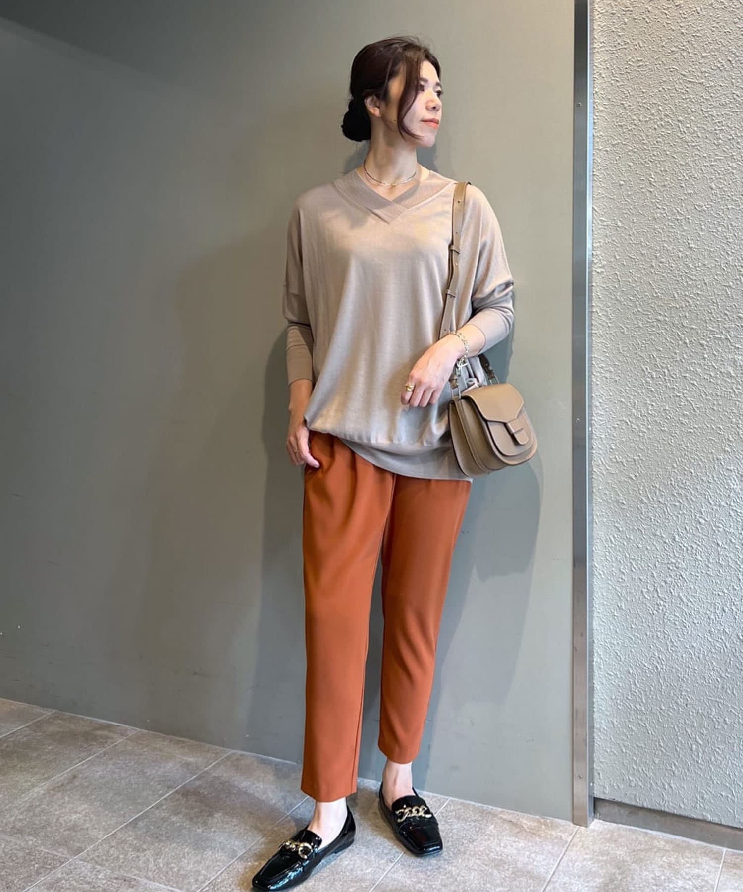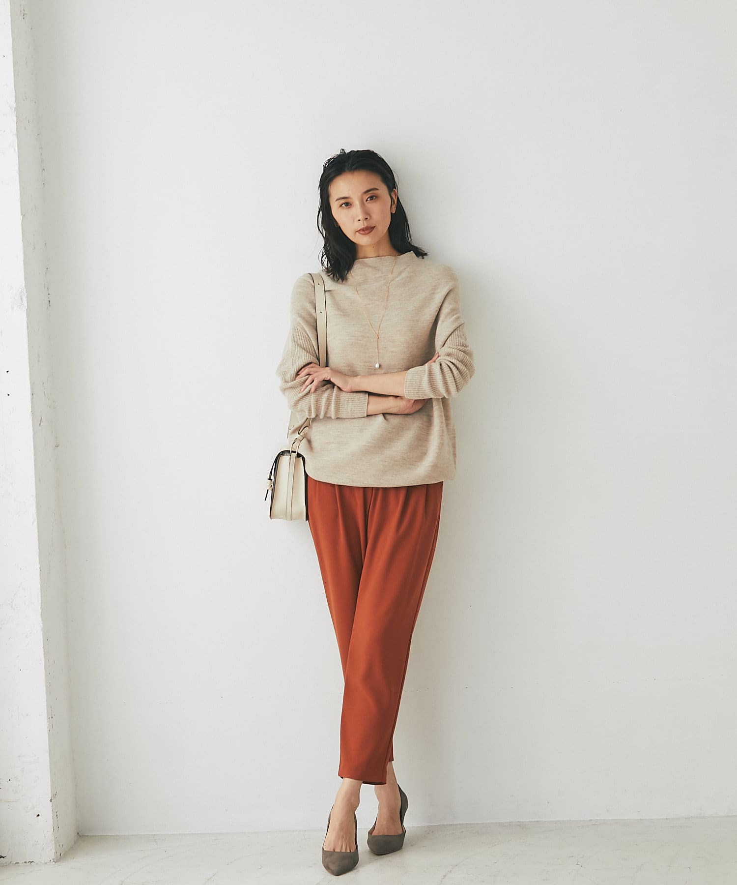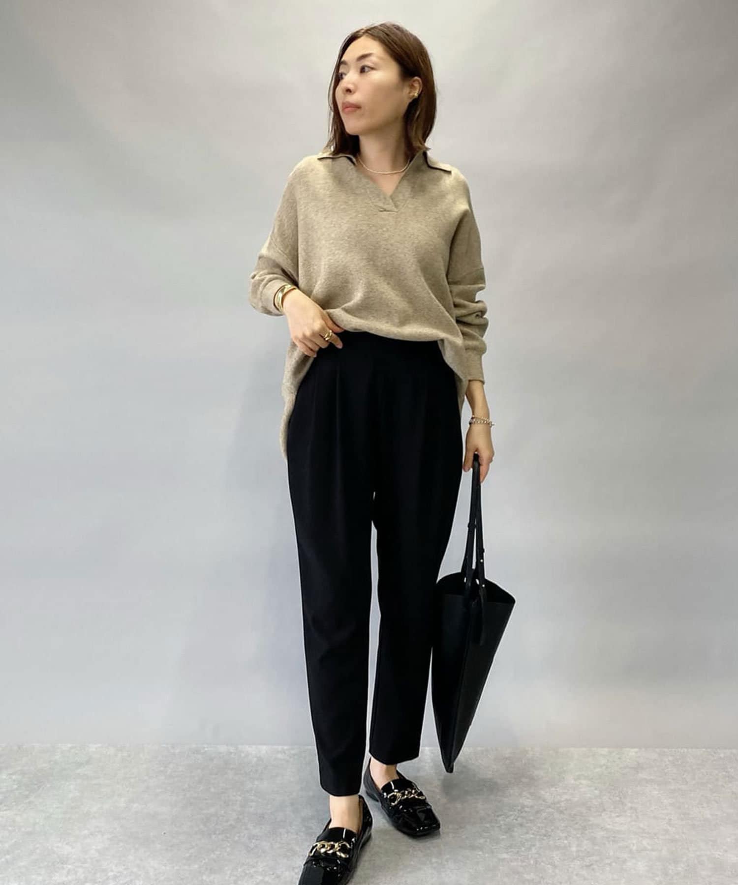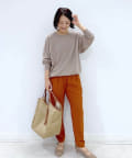 カジュアルスタイルにはざっくりとしたニットやスウェットなどをサッと合わせて、大人のこなれ感を演出。