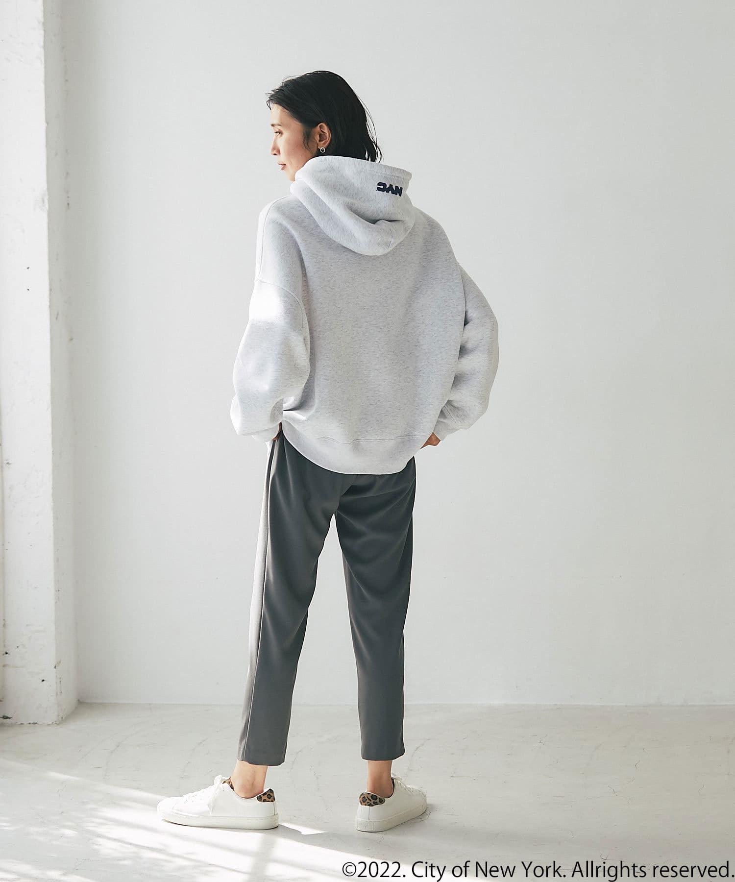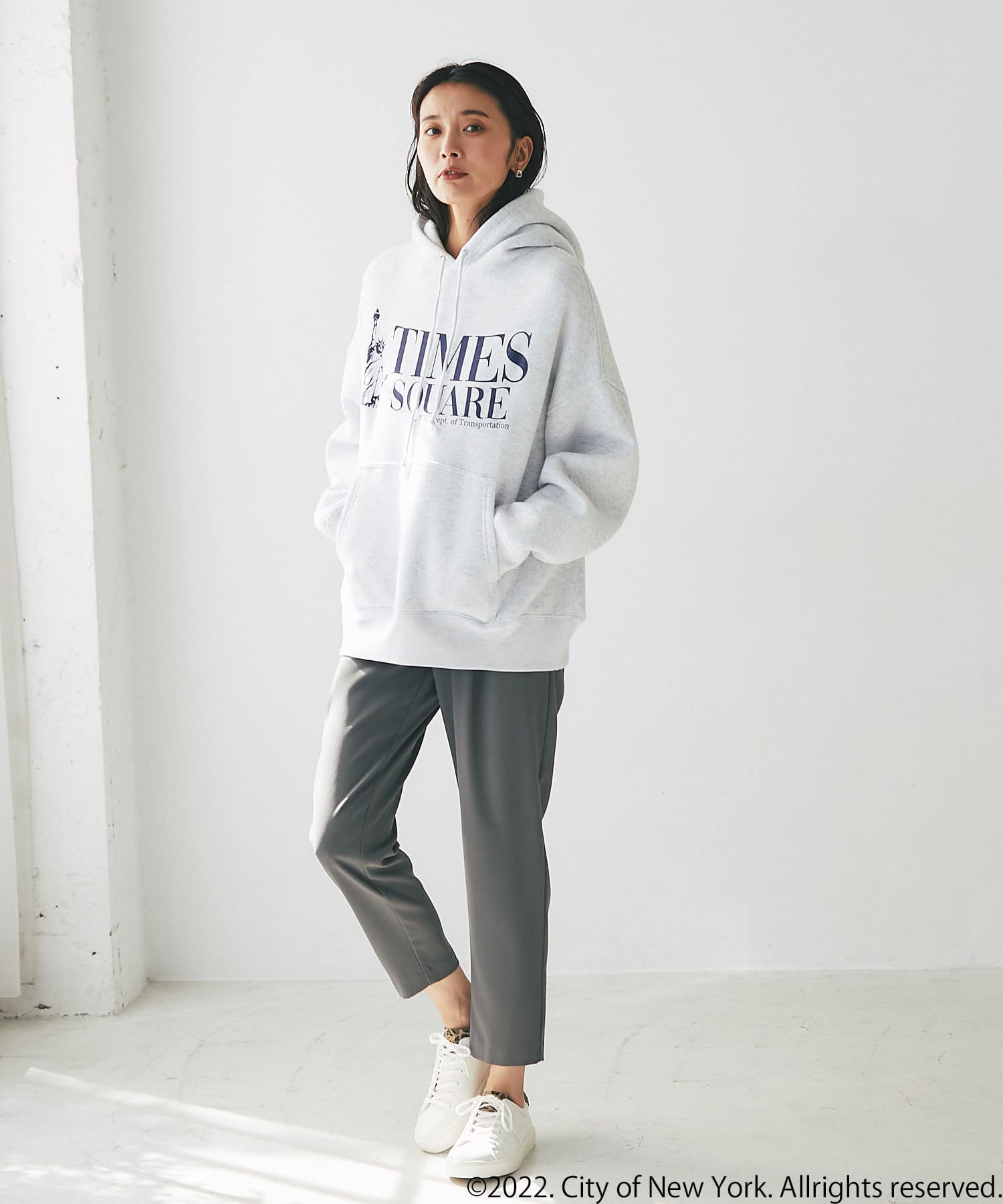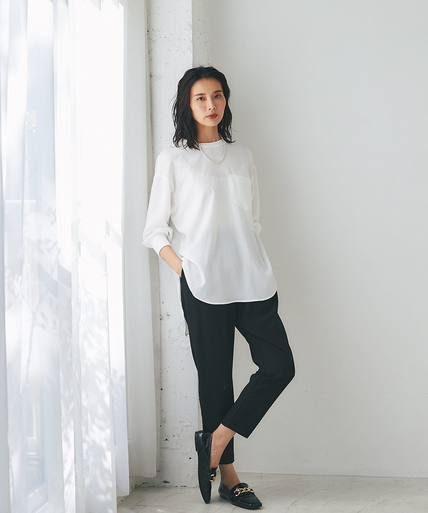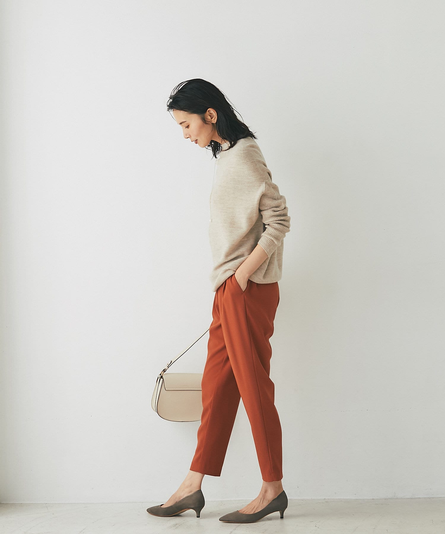 カジュアルスタイルにはざっくりとしたニットやスウェットなどをサッと合わせて、大人のこなれ感を演出。
