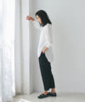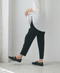 後ろウエストにだけゴムが入っているので前のウエスト辺りはスッキリとしており、透けも気にせず履いていただけます。