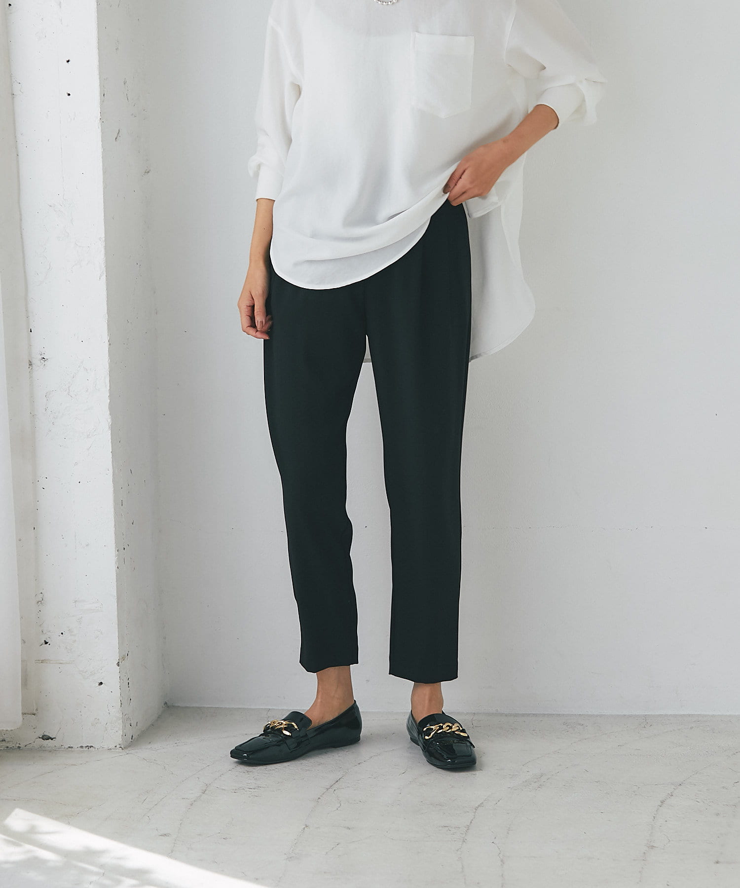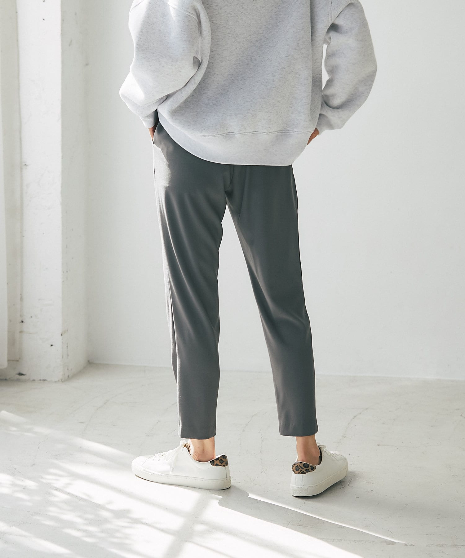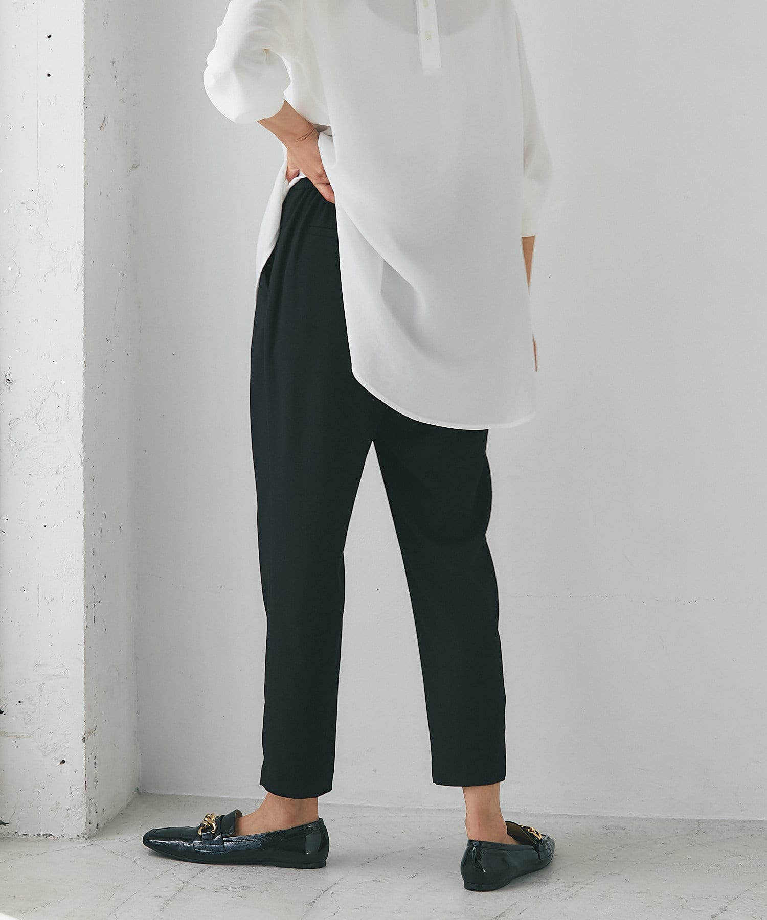 RIVE DROITEでは定番の美脚効果抜群シルエットは2タックのドロストジョッパーで、ストレスなく着用できヒップ周りにゆとりがあります。