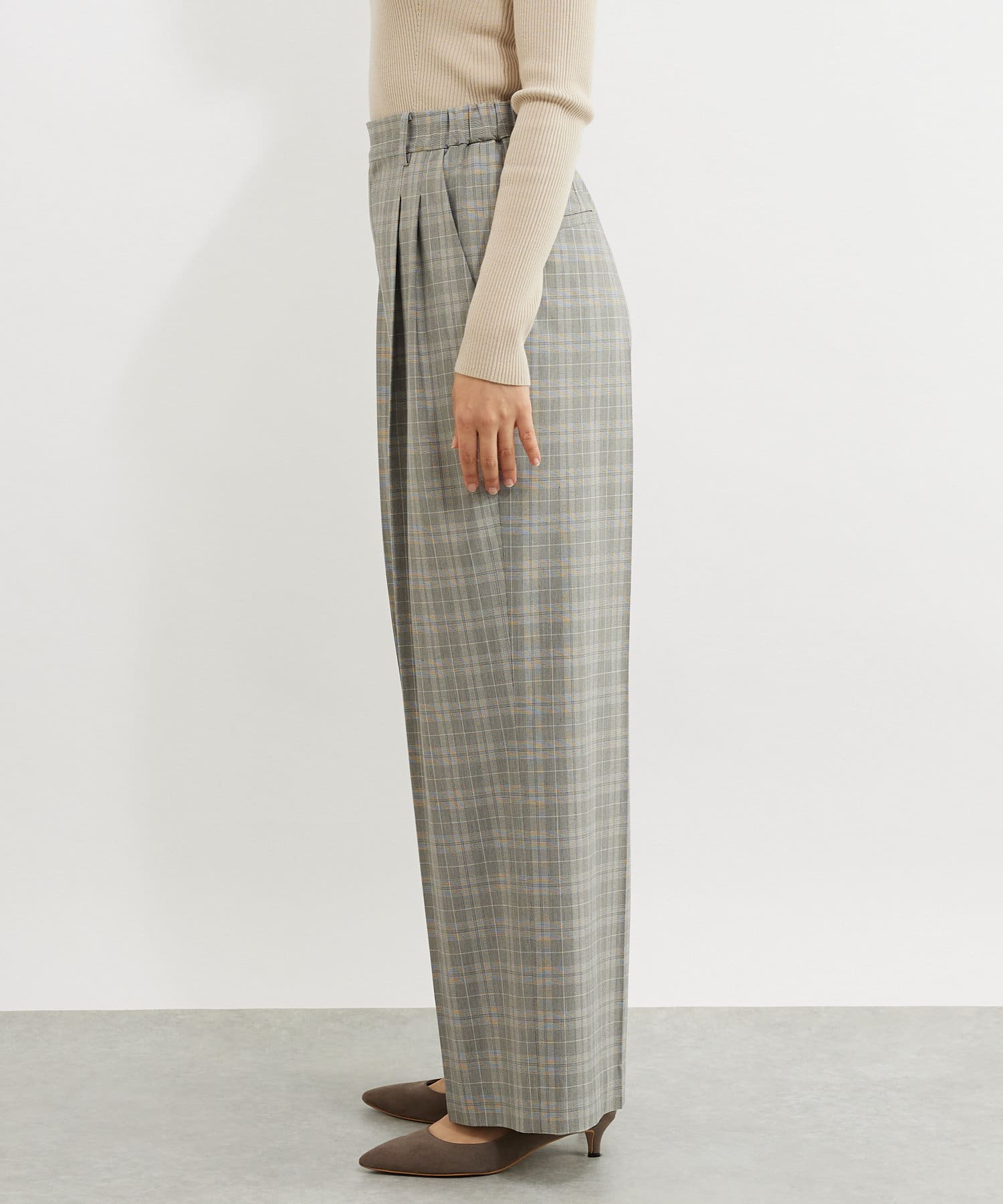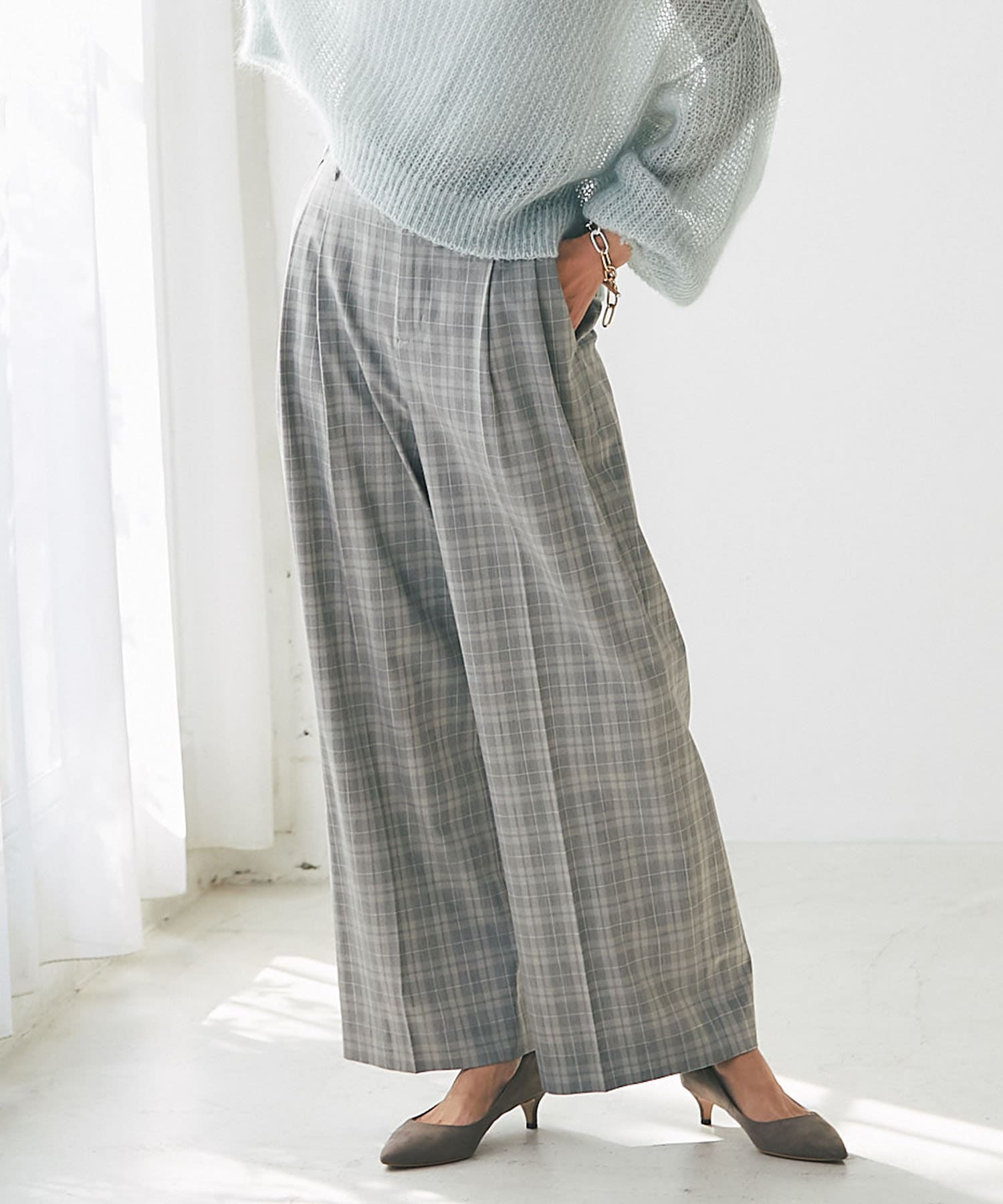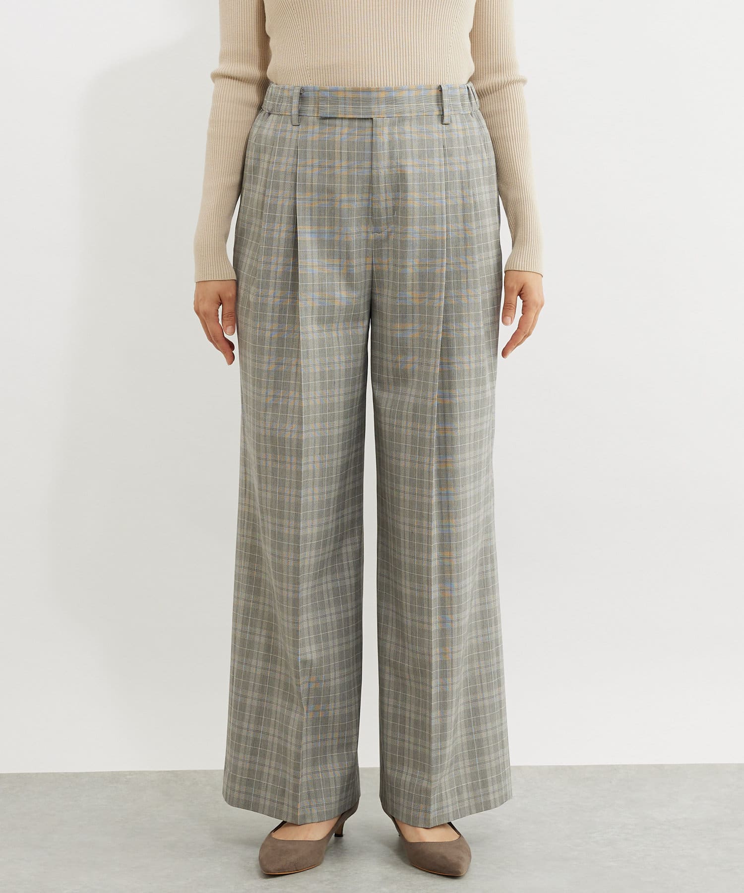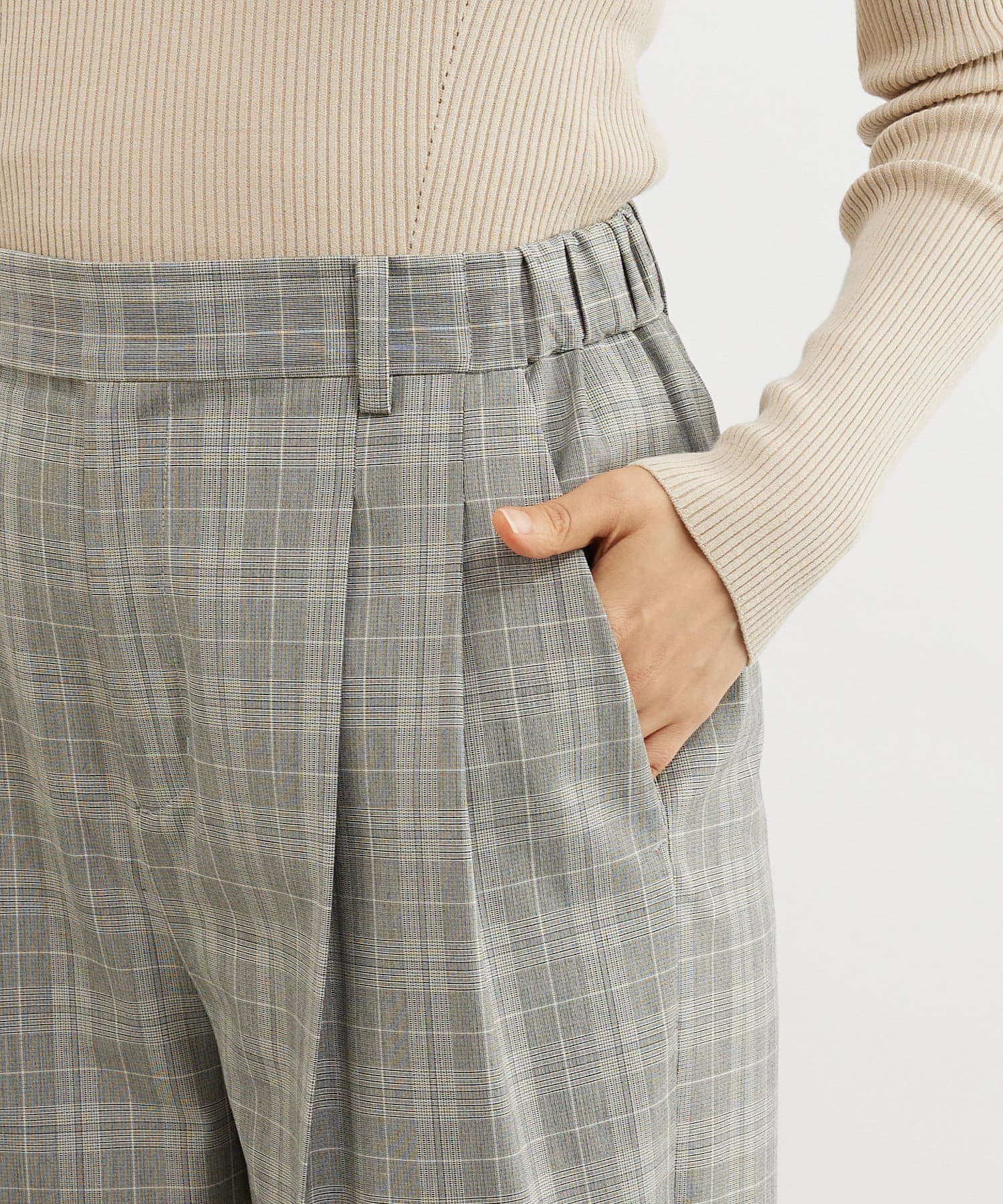 【小山田 早織さん着用】チェックタックワイドパンツ