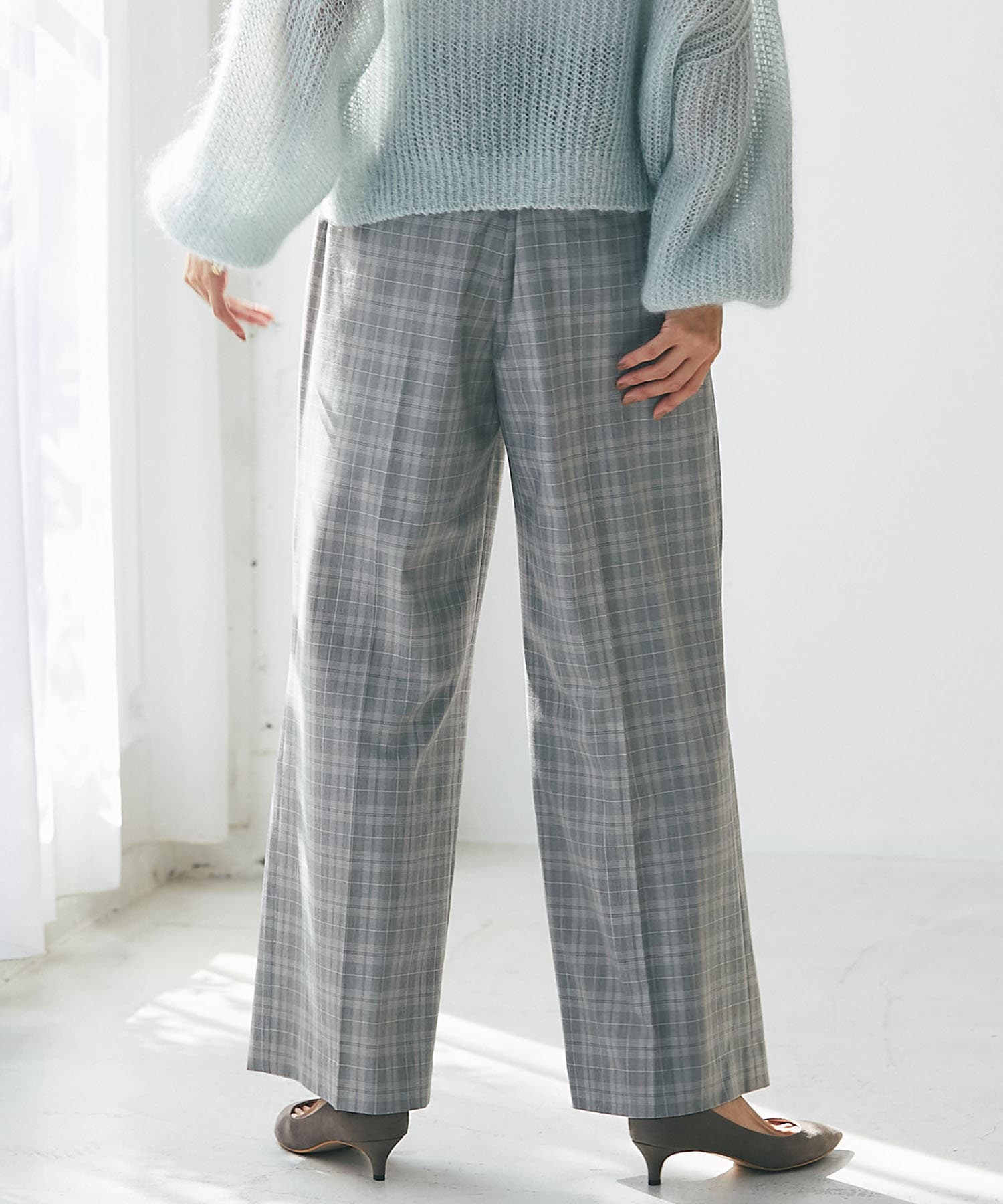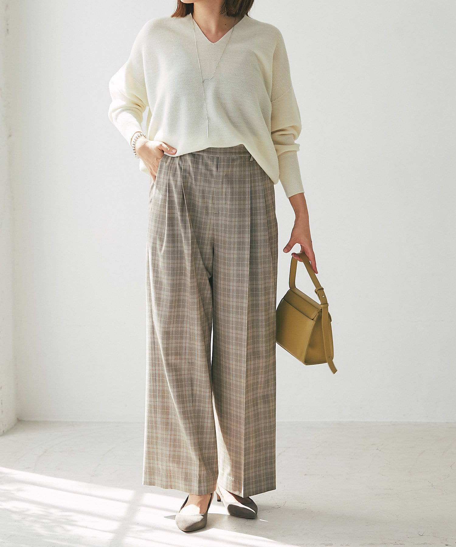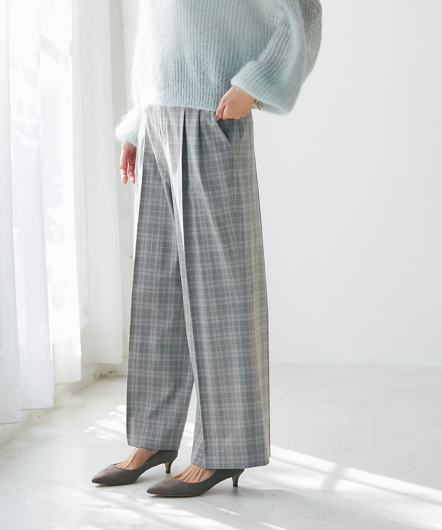 【小山田 早織さん着用】チェックタックワイドパンツ