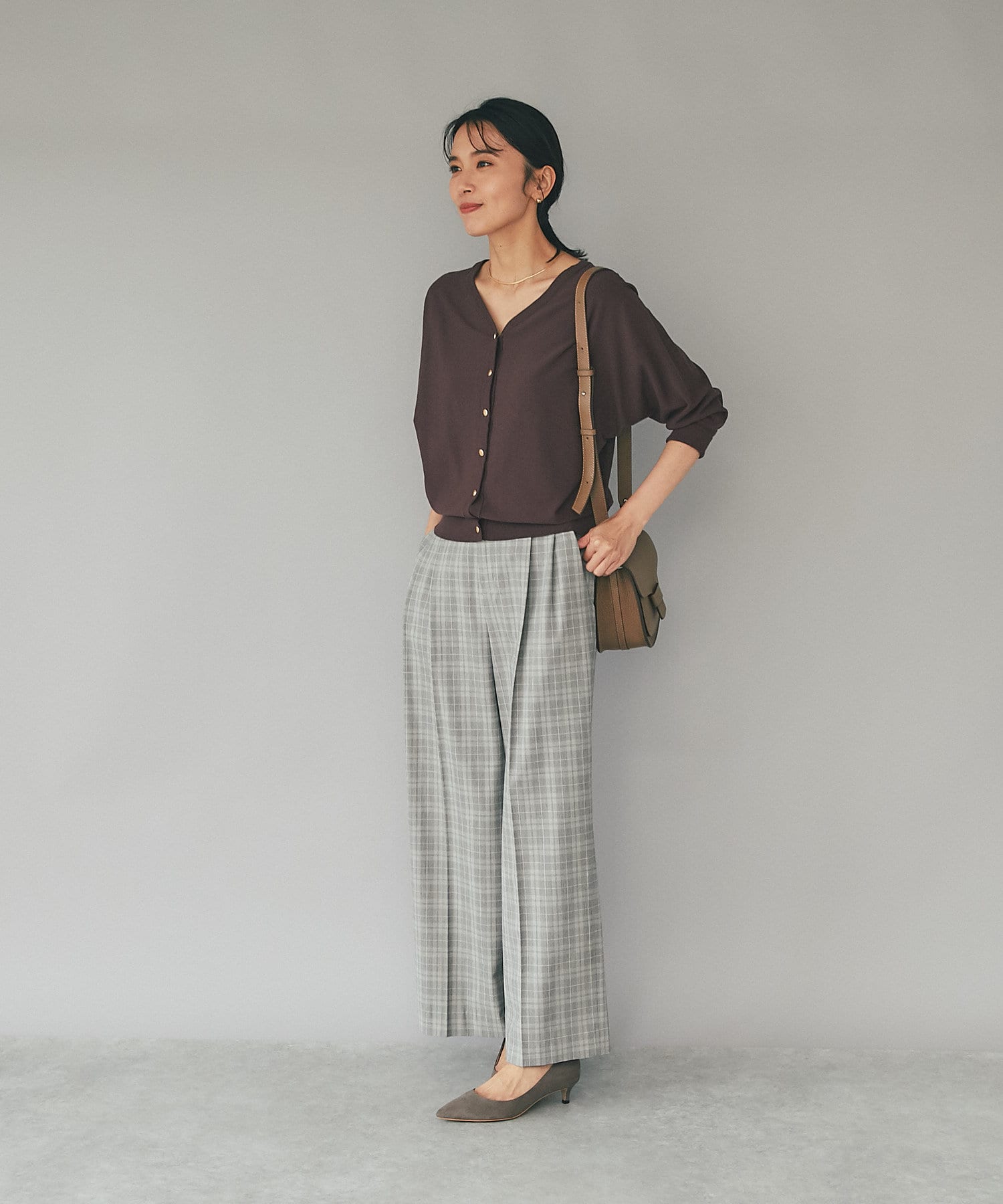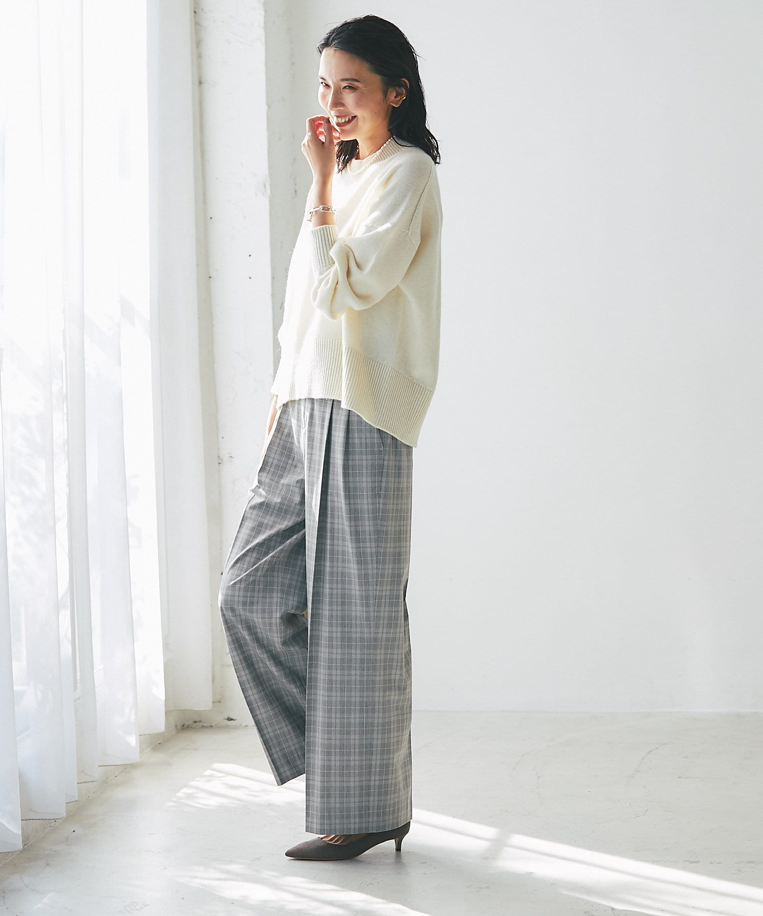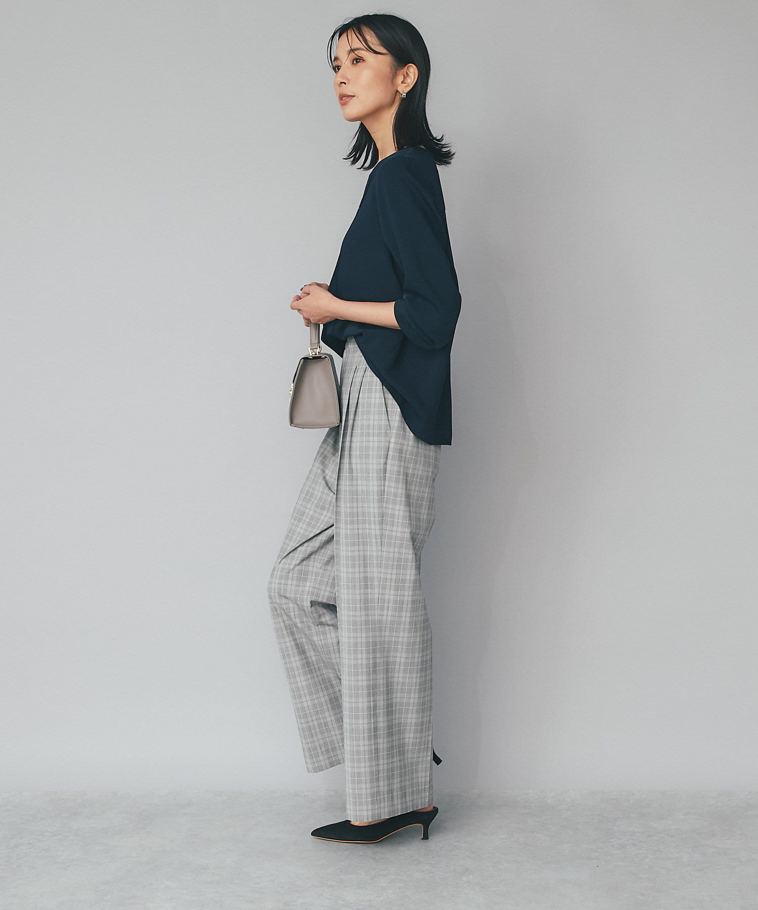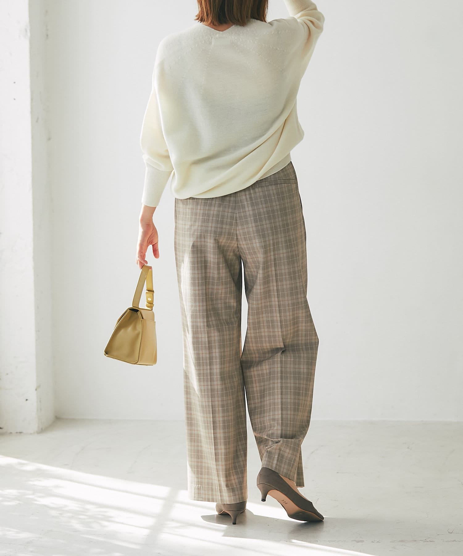 【小山田 早織さん着用】チェックタックワイドパンツ