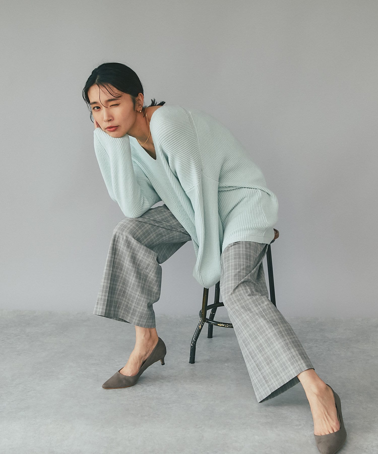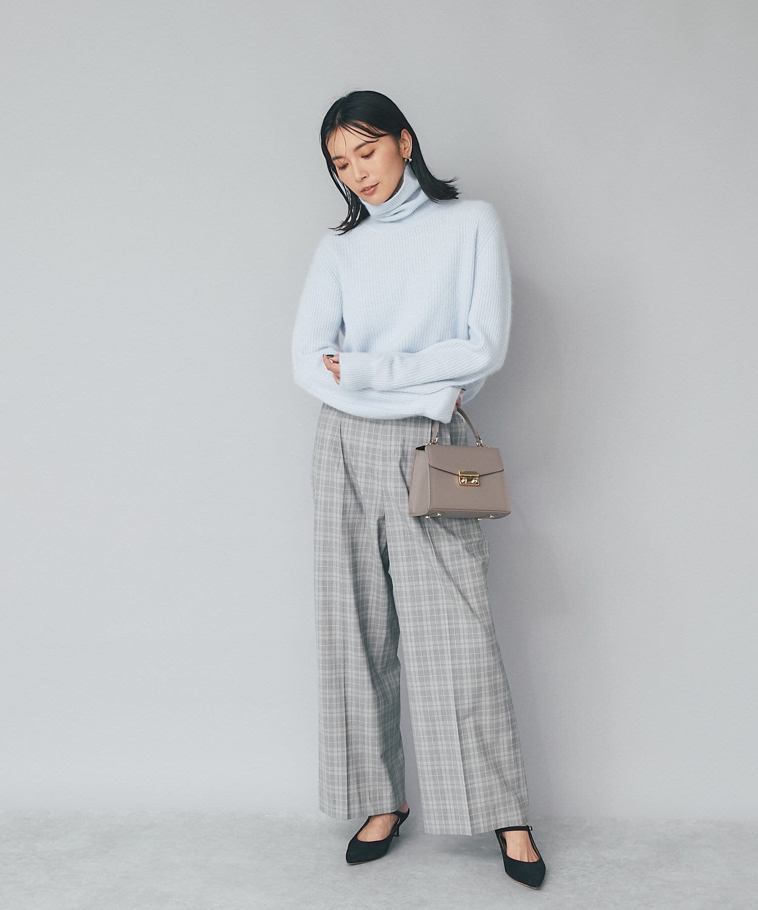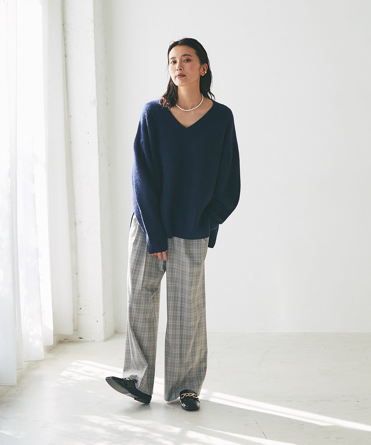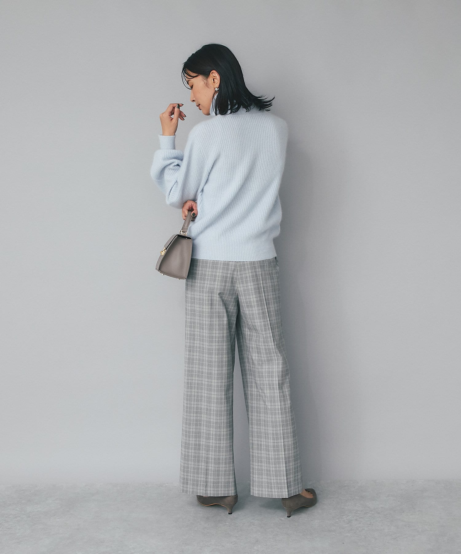 また初冬には、ふんわりとしたニットや今季らしいオーバーニットで合わせ、セミワイドのシルエットでメリハリを付けたコーディネートにして頂くと素敵に着用して頂けます。
