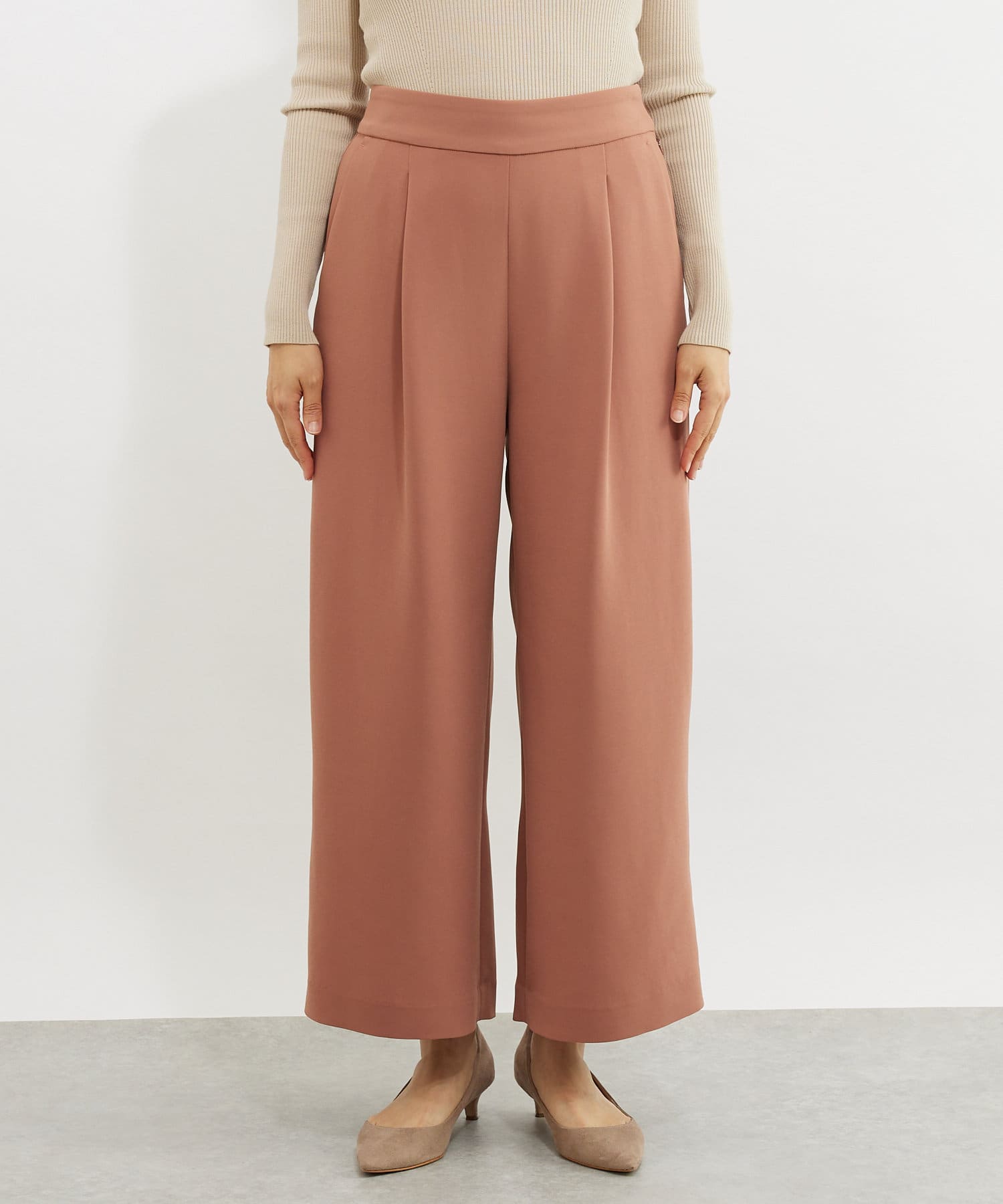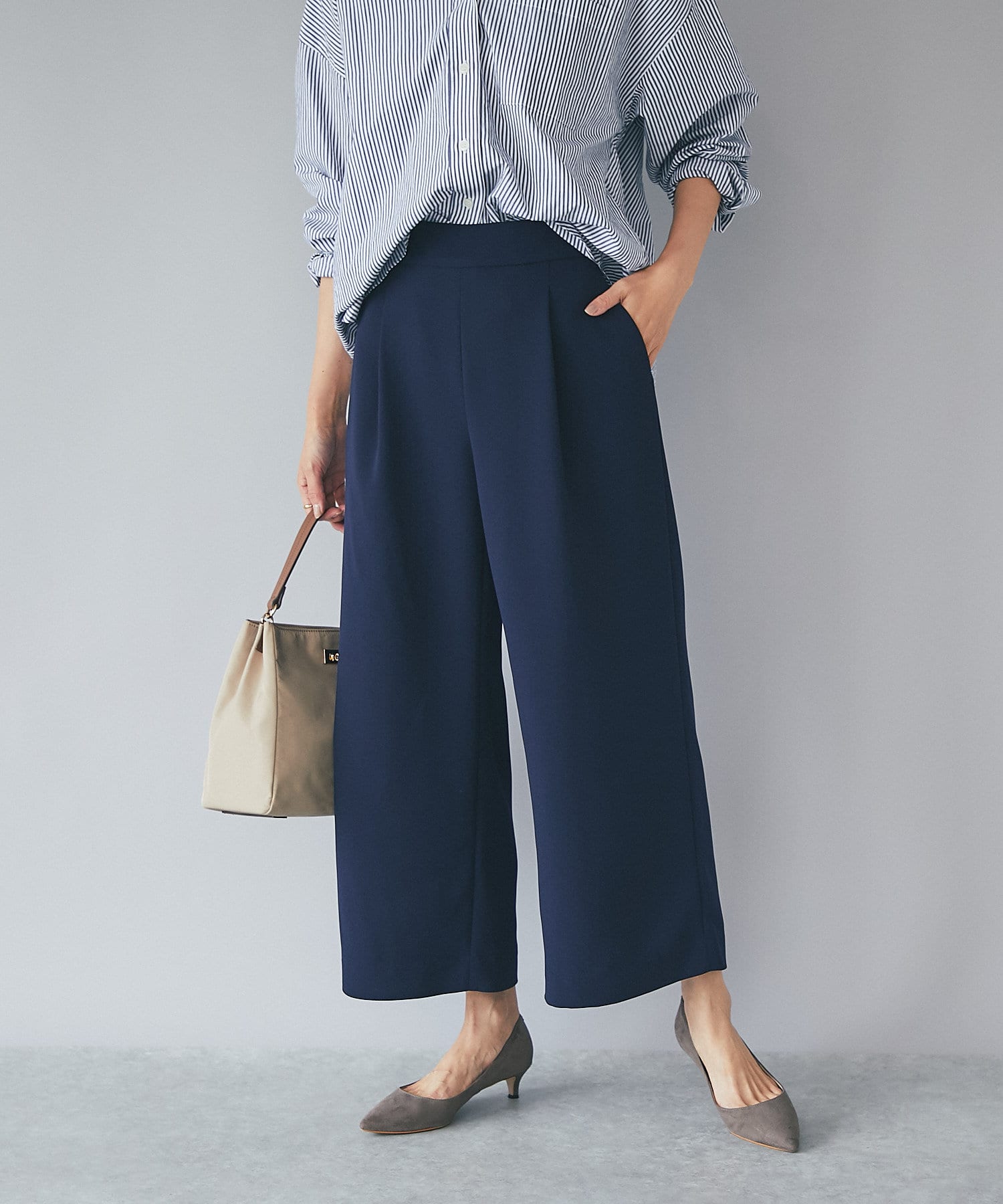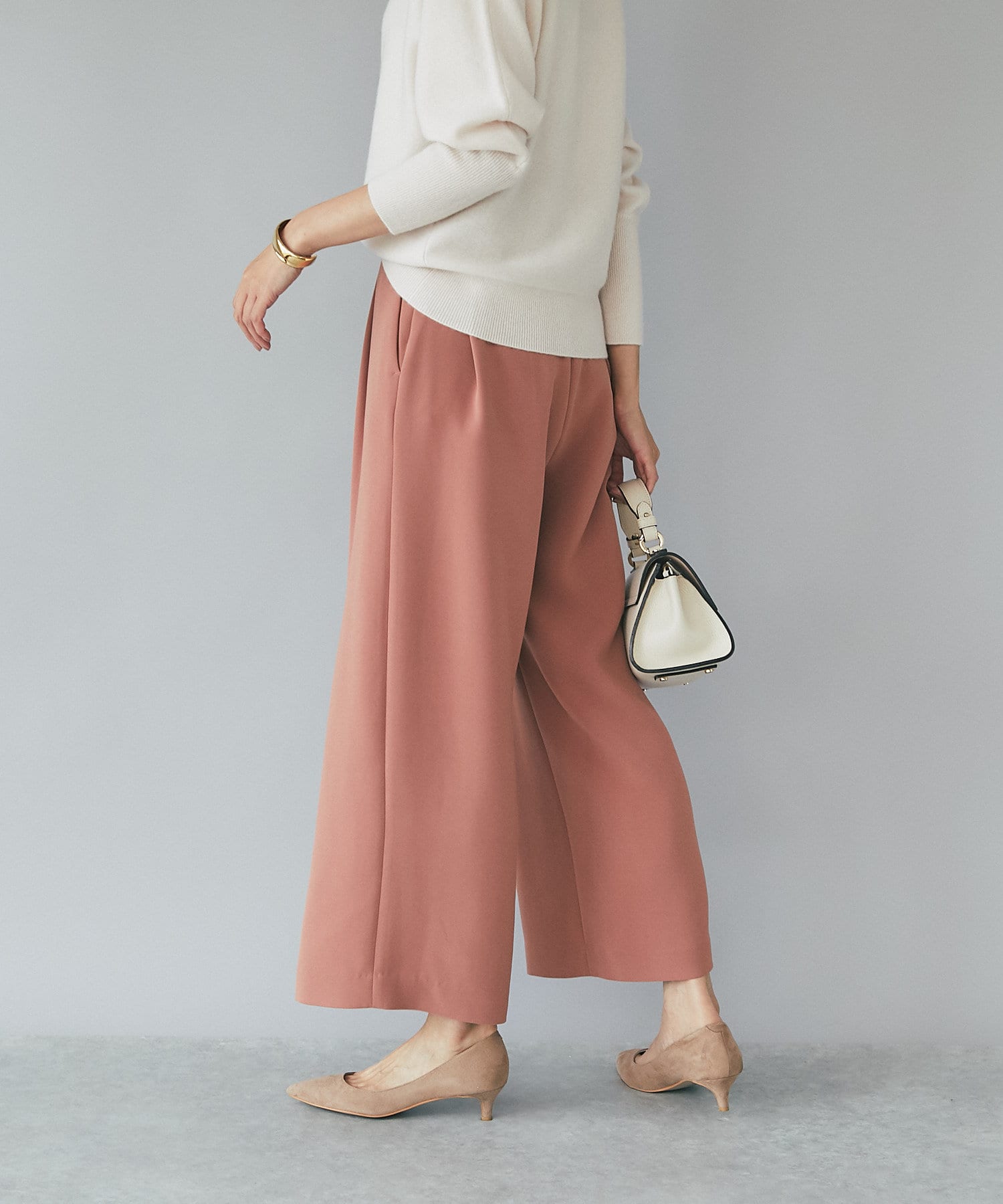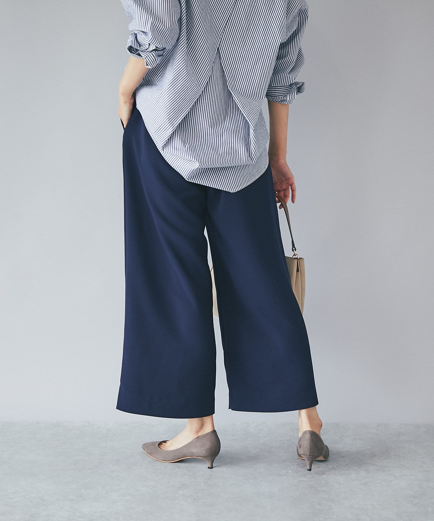 スッキリとした足首が見える丈感でキレイ見えするクロップドワイドパンツ。