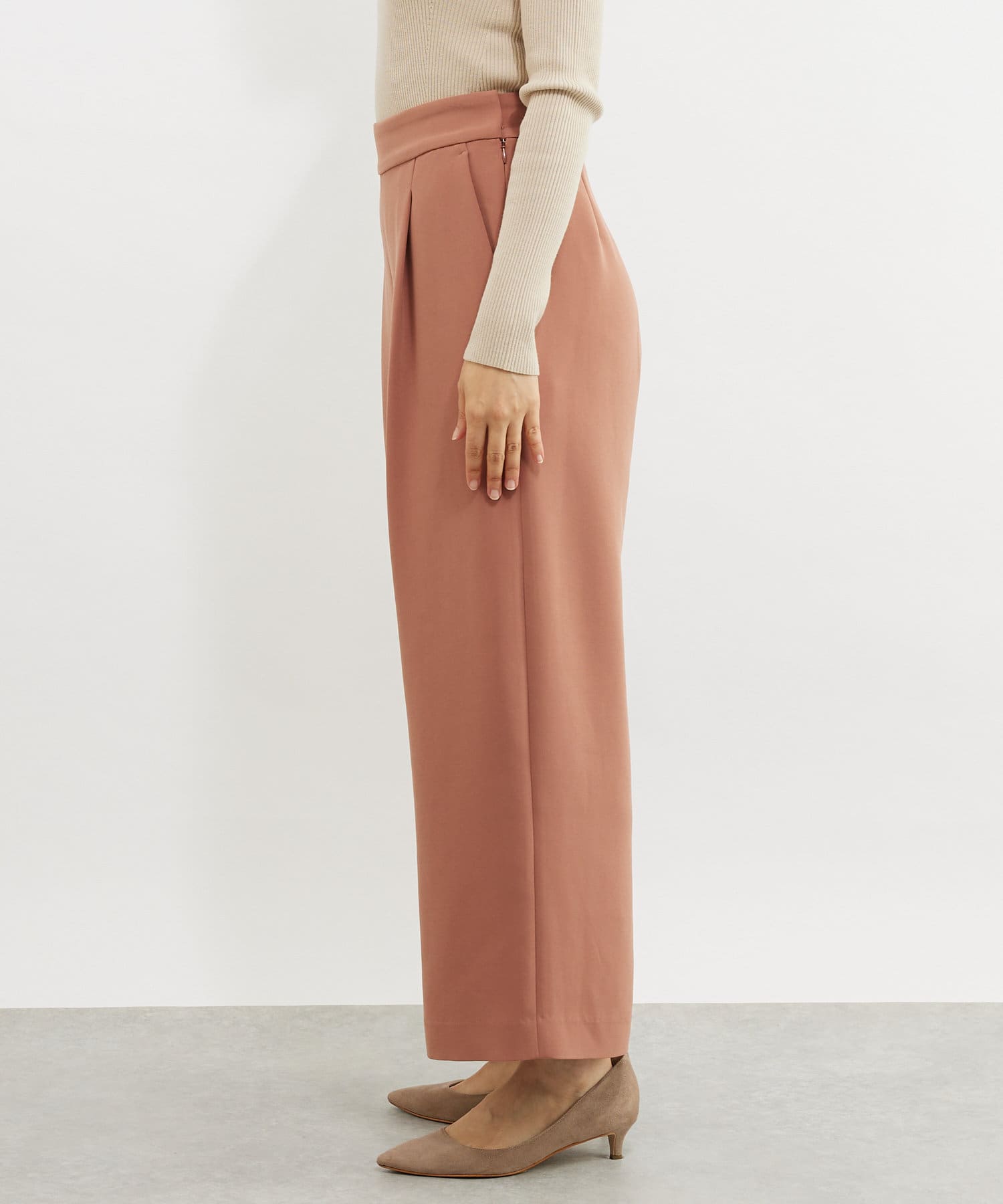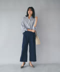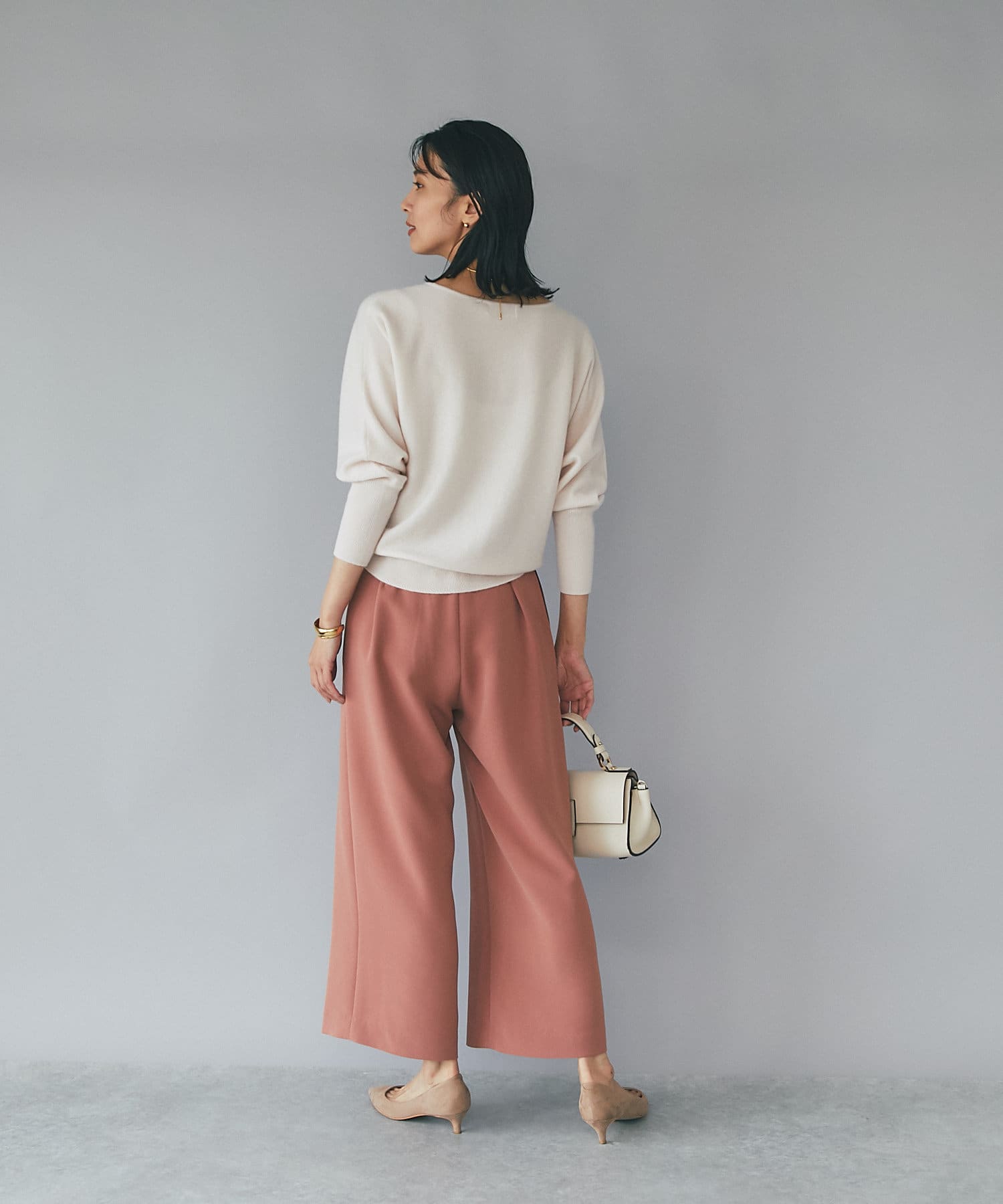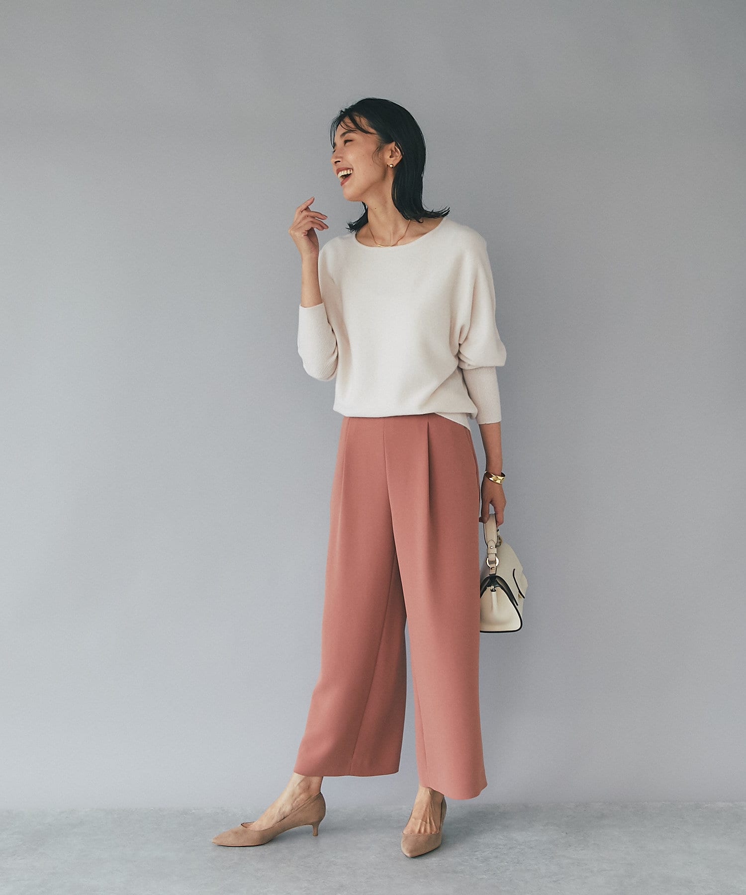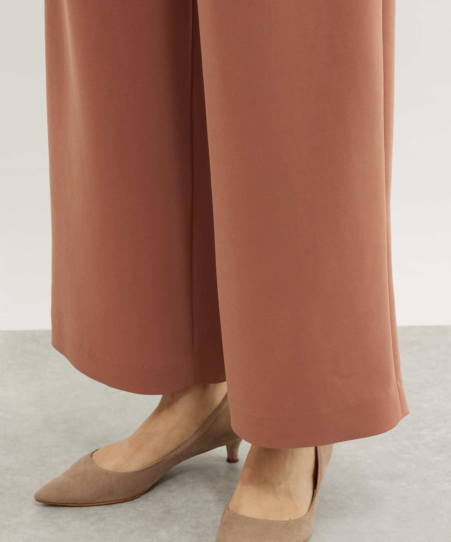 スッキリとした足首が見える丈感でキレイ見えするクロップドワイドパンツ。