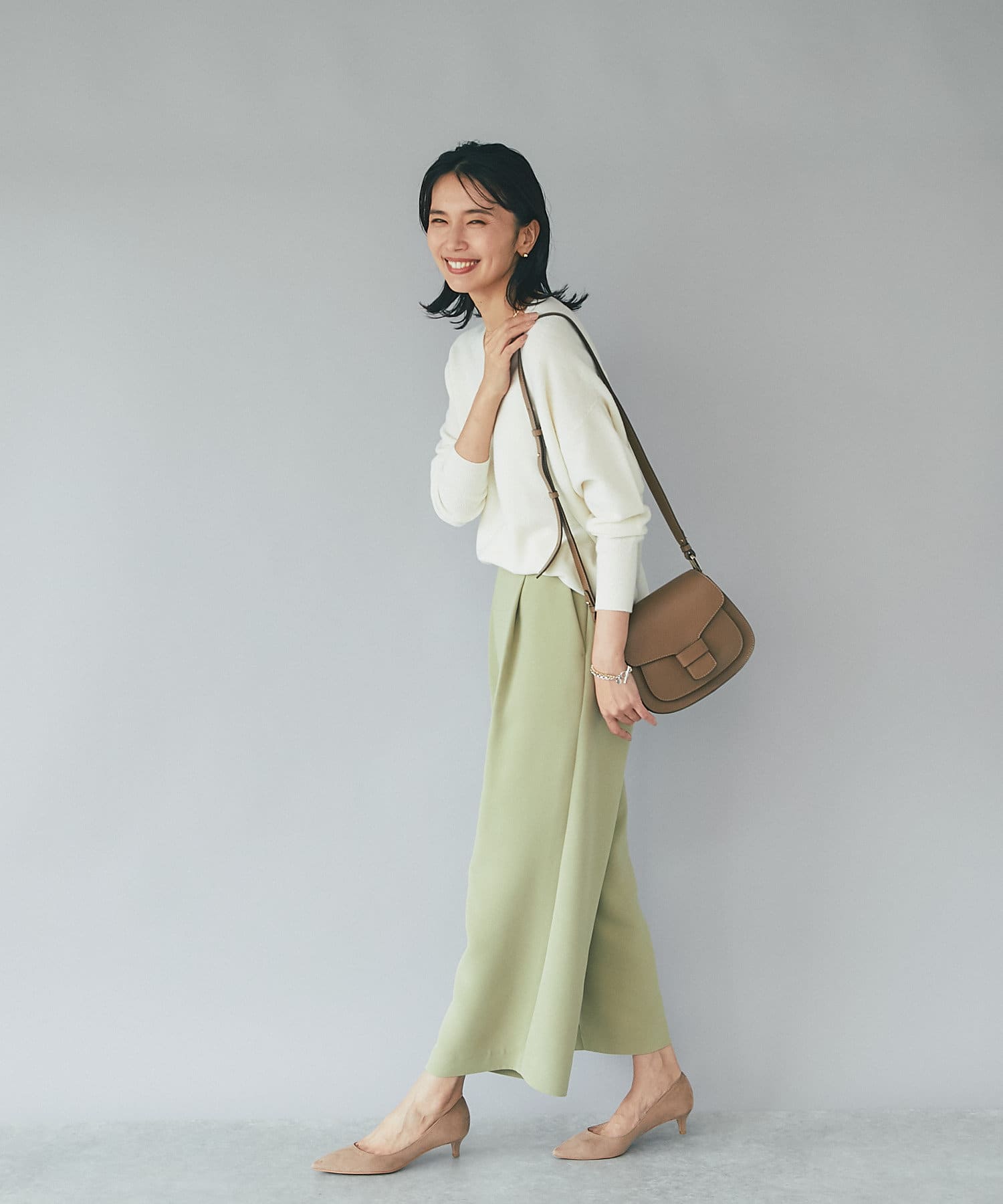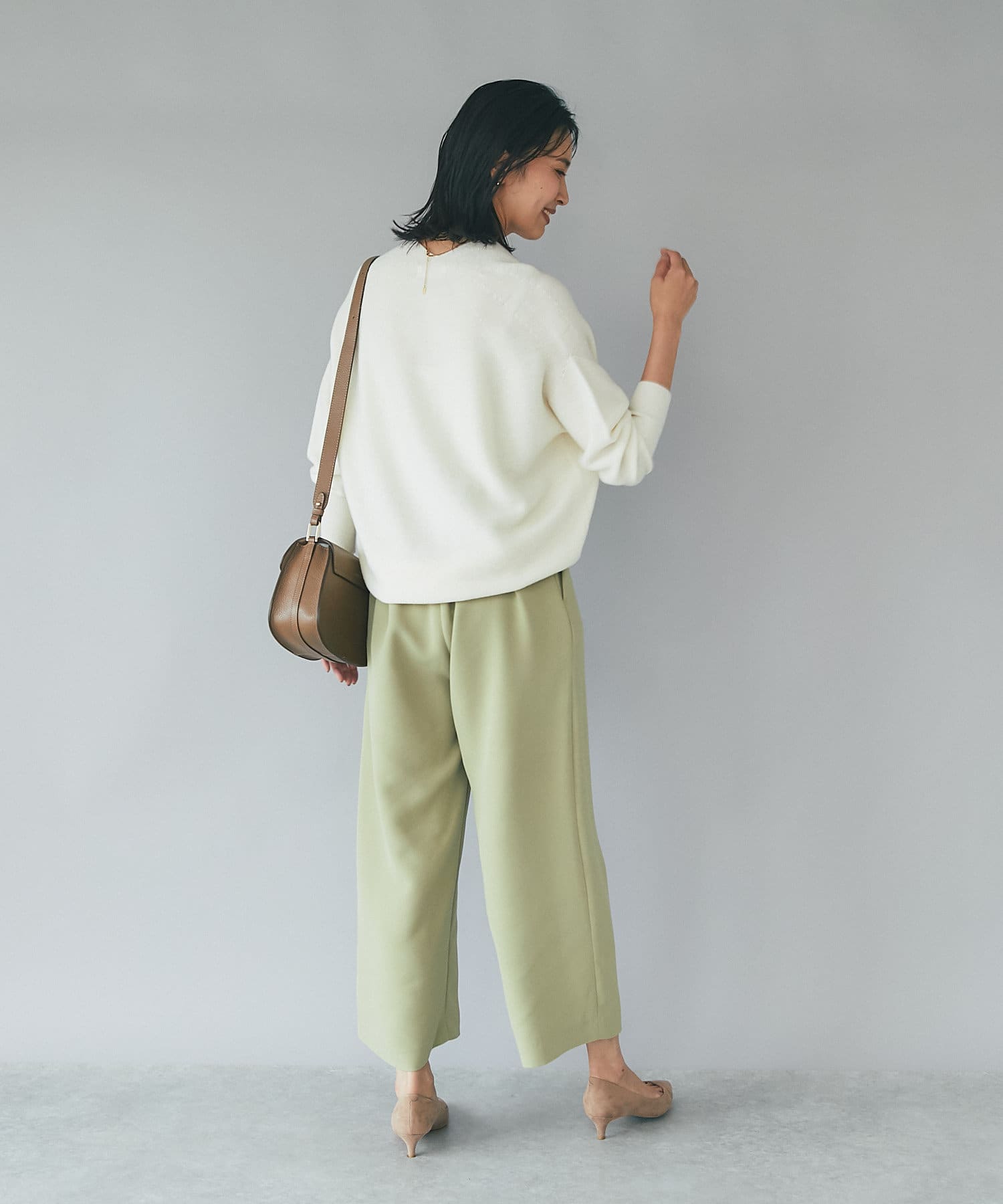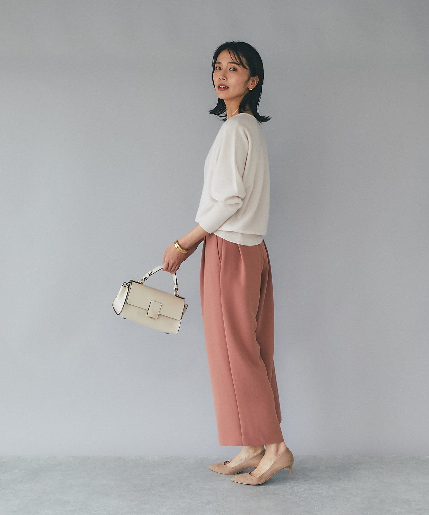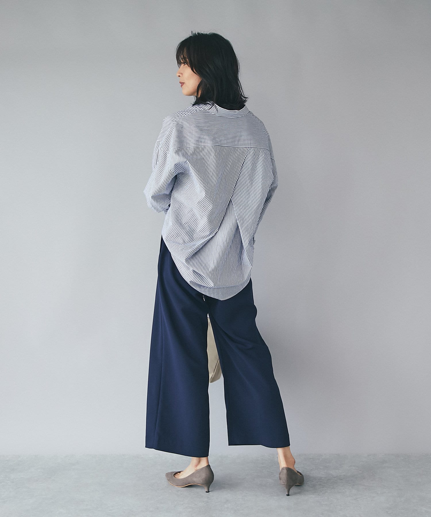 スッキリとした足首が見える丈感でキレイ見えするクロップドワイドパンツ。
