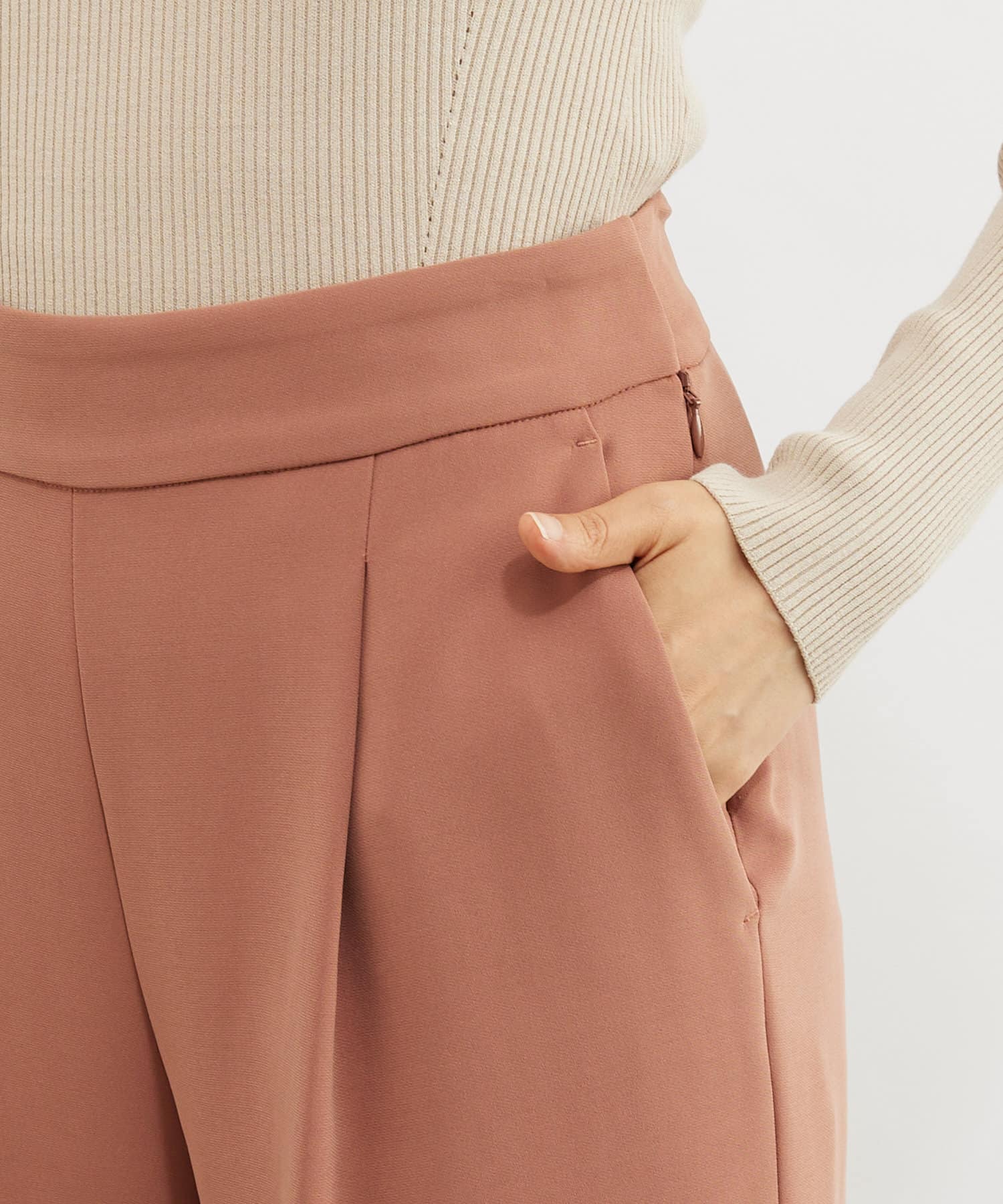 ダブルクロス素材を使用しており、シワになりづらく品のある印象で履きこなせます。
