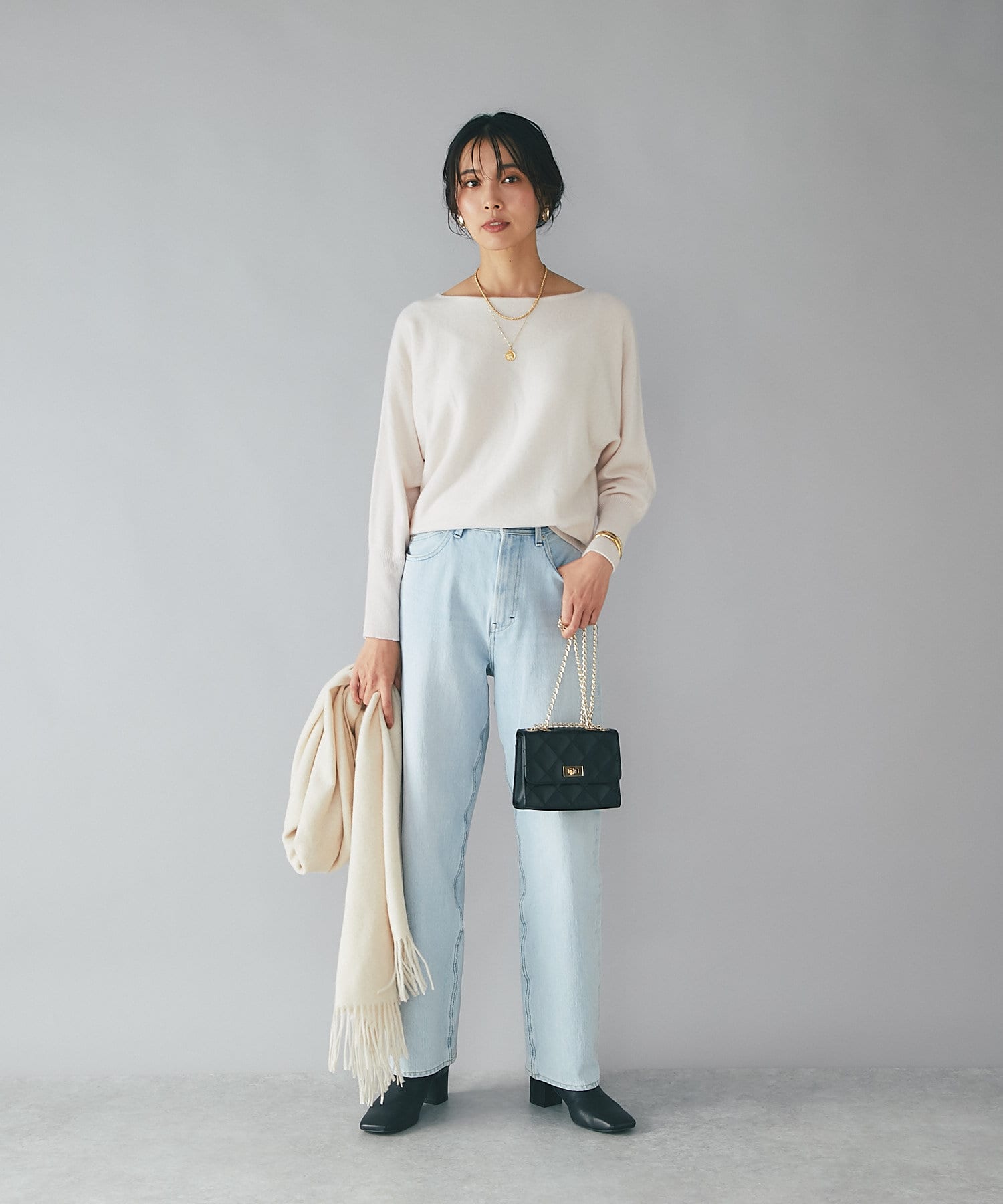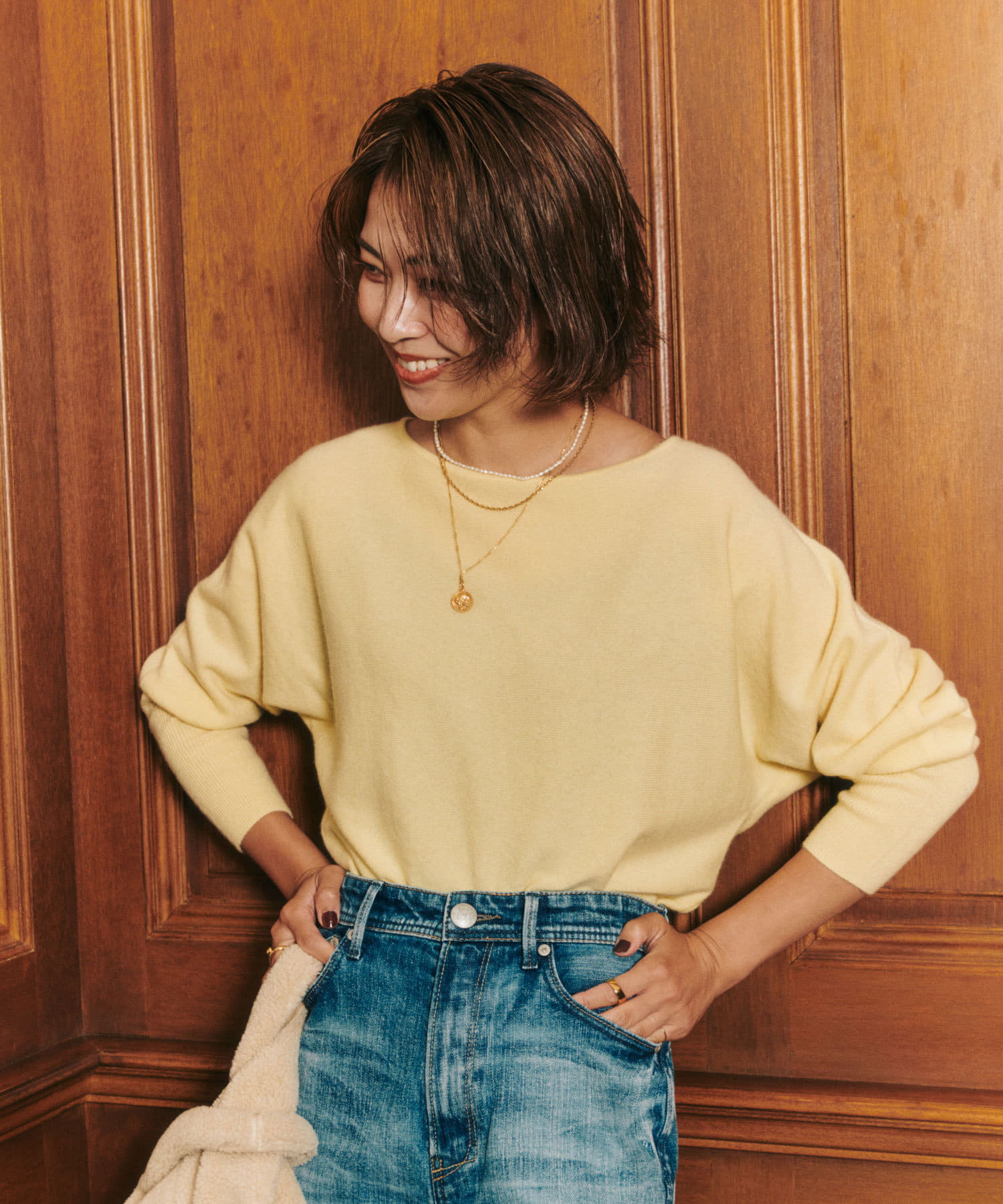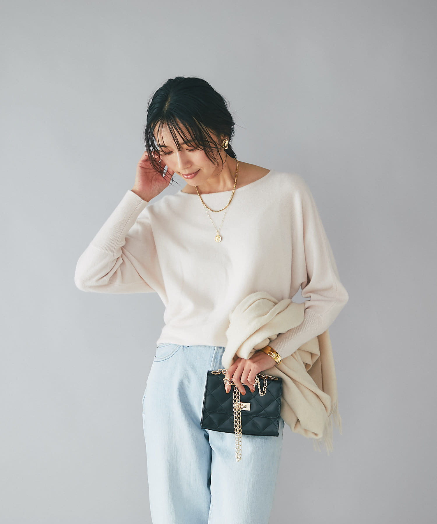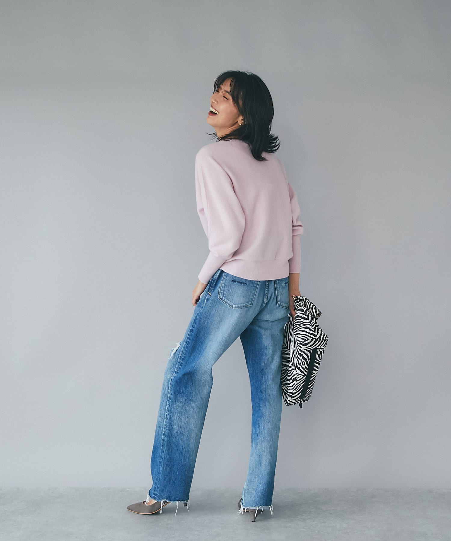 さらりとデニムでカジュアルに合わせても、上質なカシミヤで洗練された印象になります。
