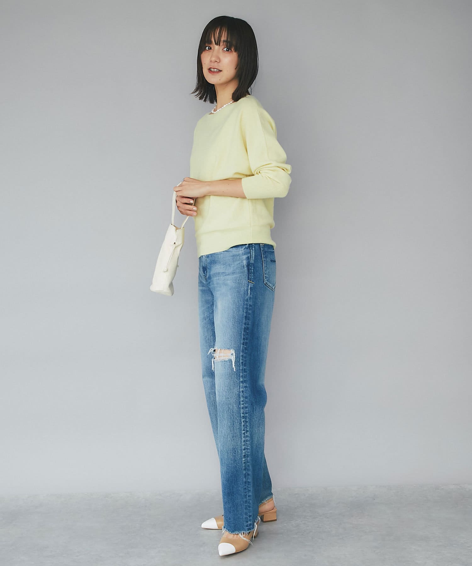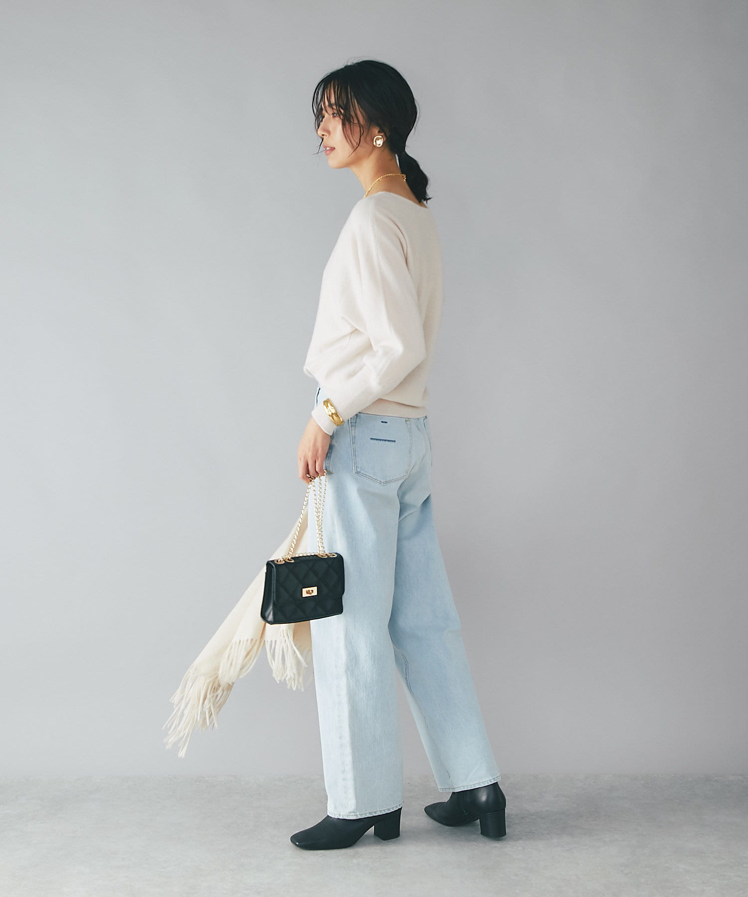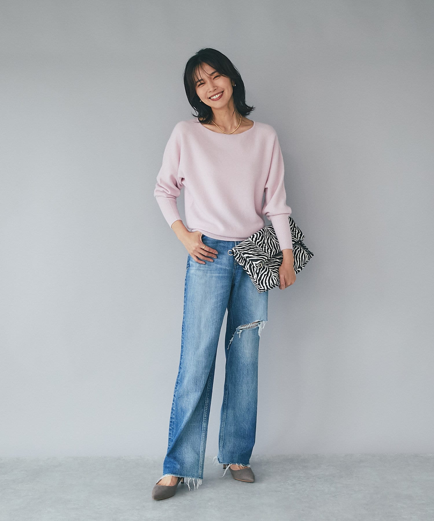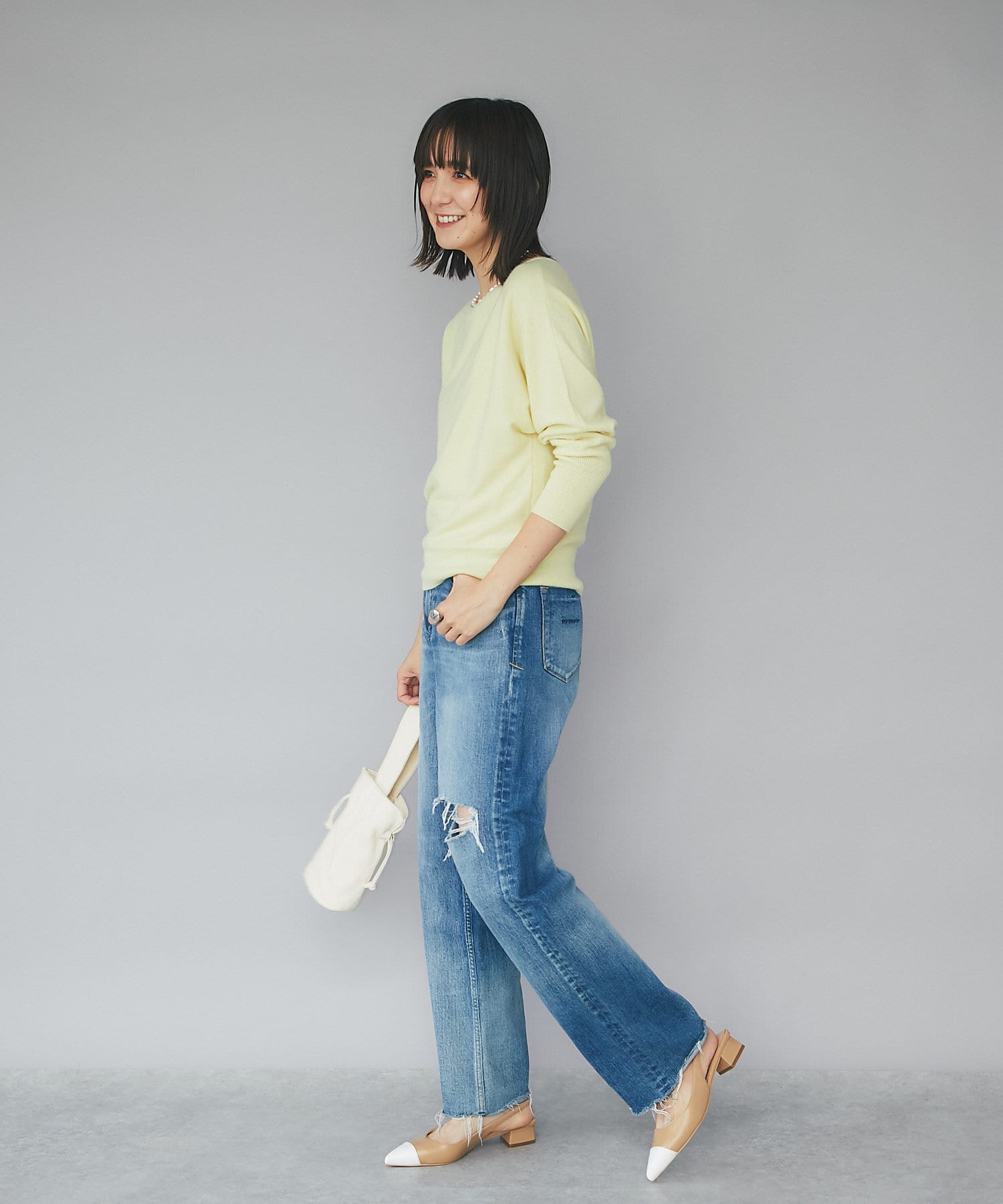 さらりとデニムでカジュアルに合わせても、上質なカシミヤで洗練された印象になります。