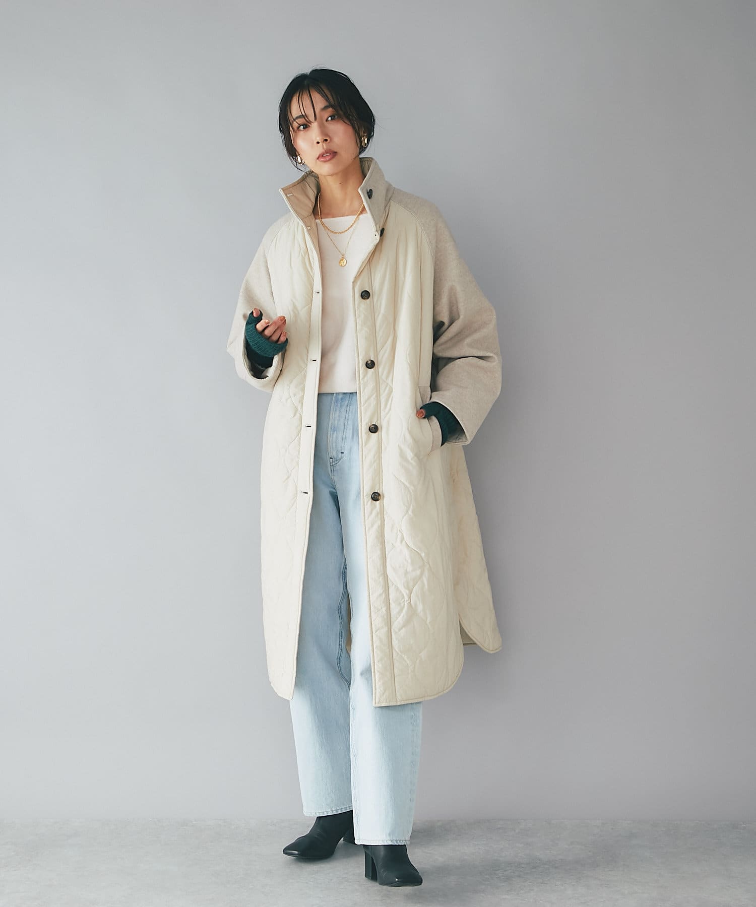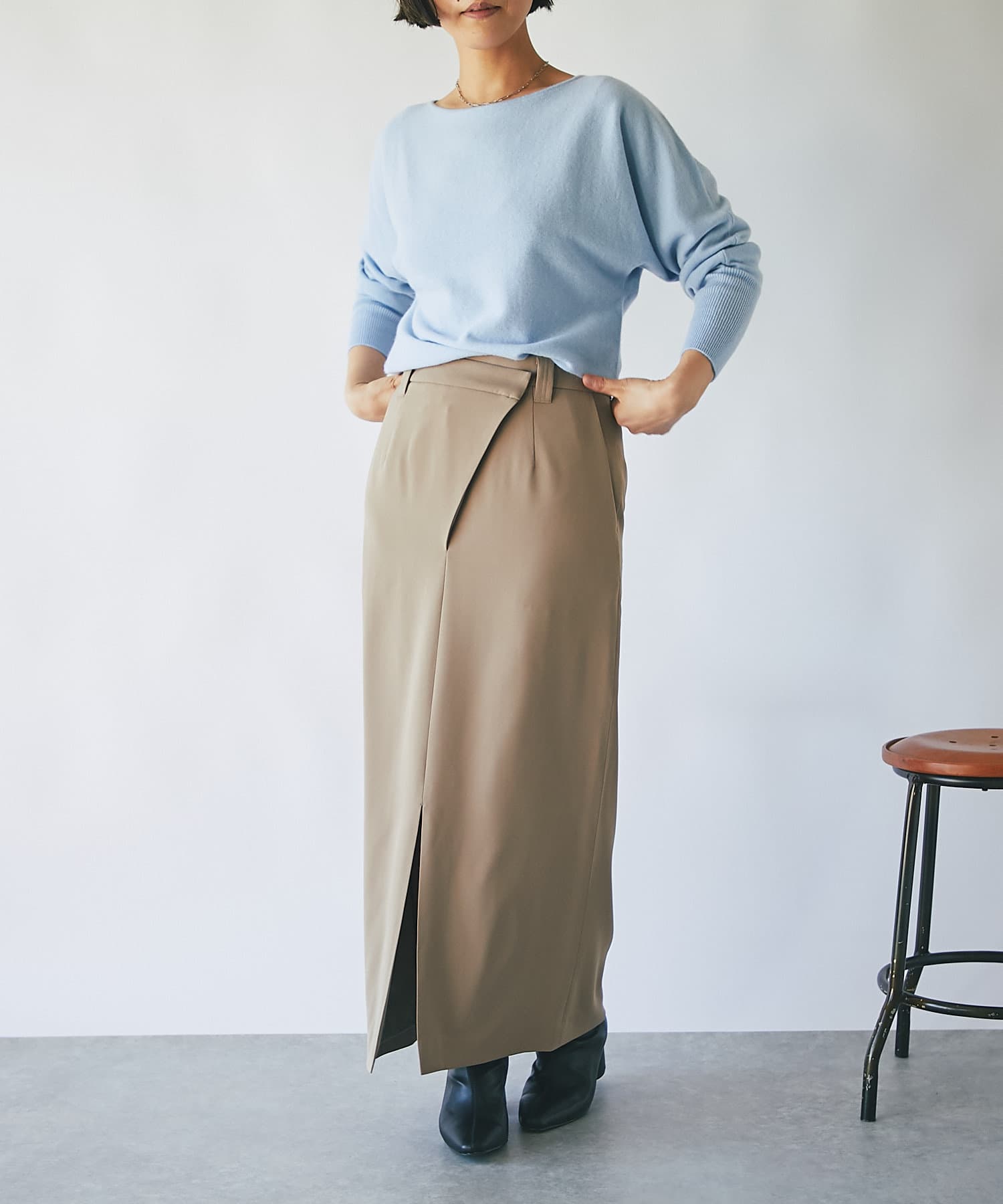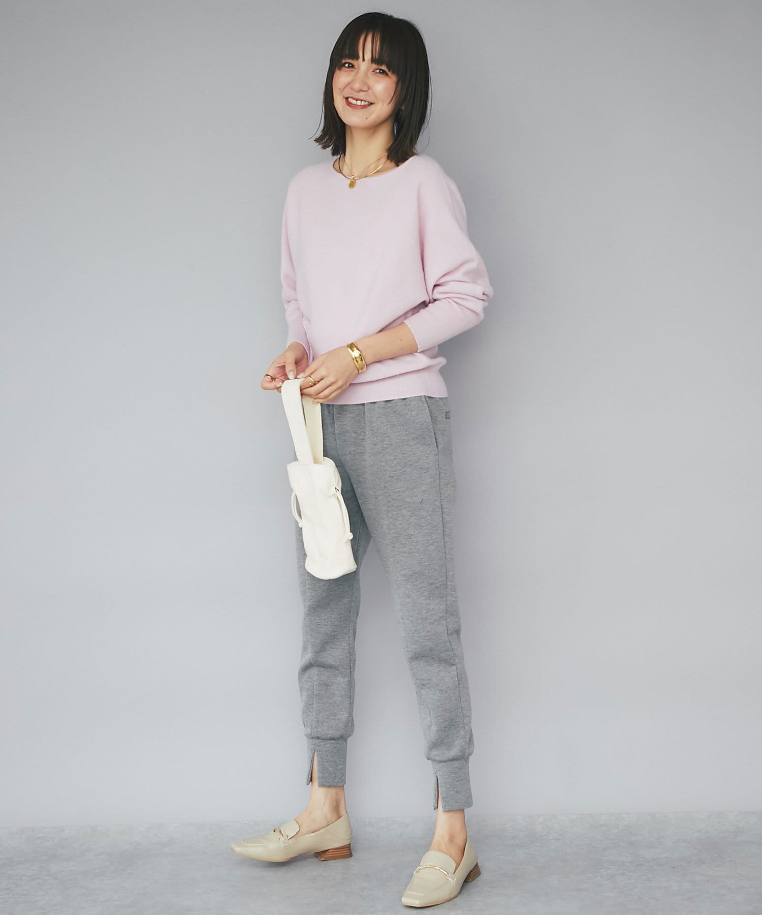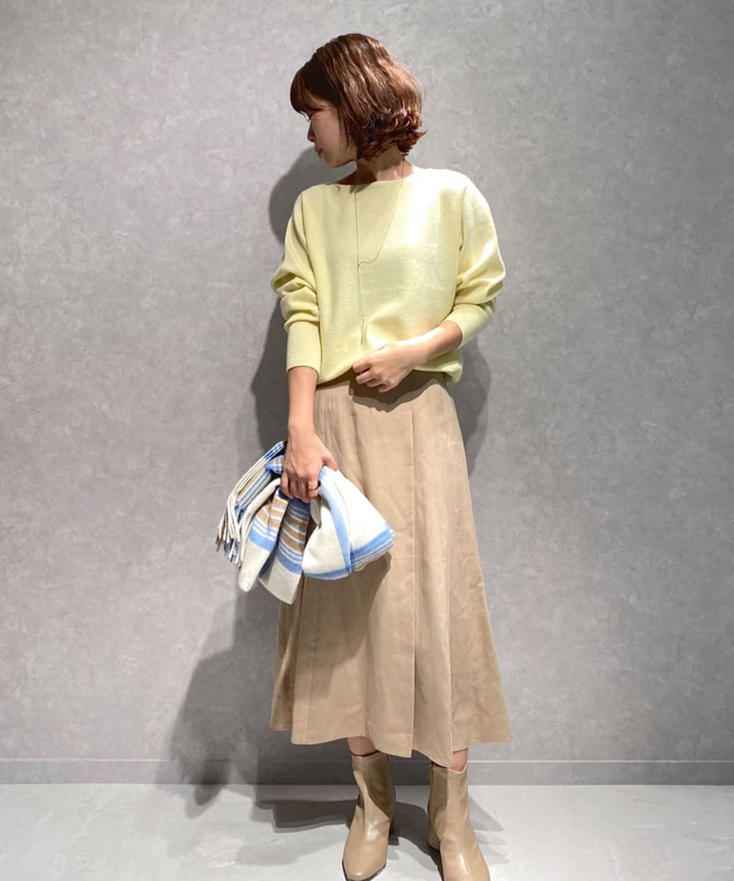 また、上品な風合いはキレイめなアイテムとの相性もよく、タイトスカート、テーパードパンツなどのすっきりとしたシルエットのアイテムで合わせるとより、品のある印象になります。