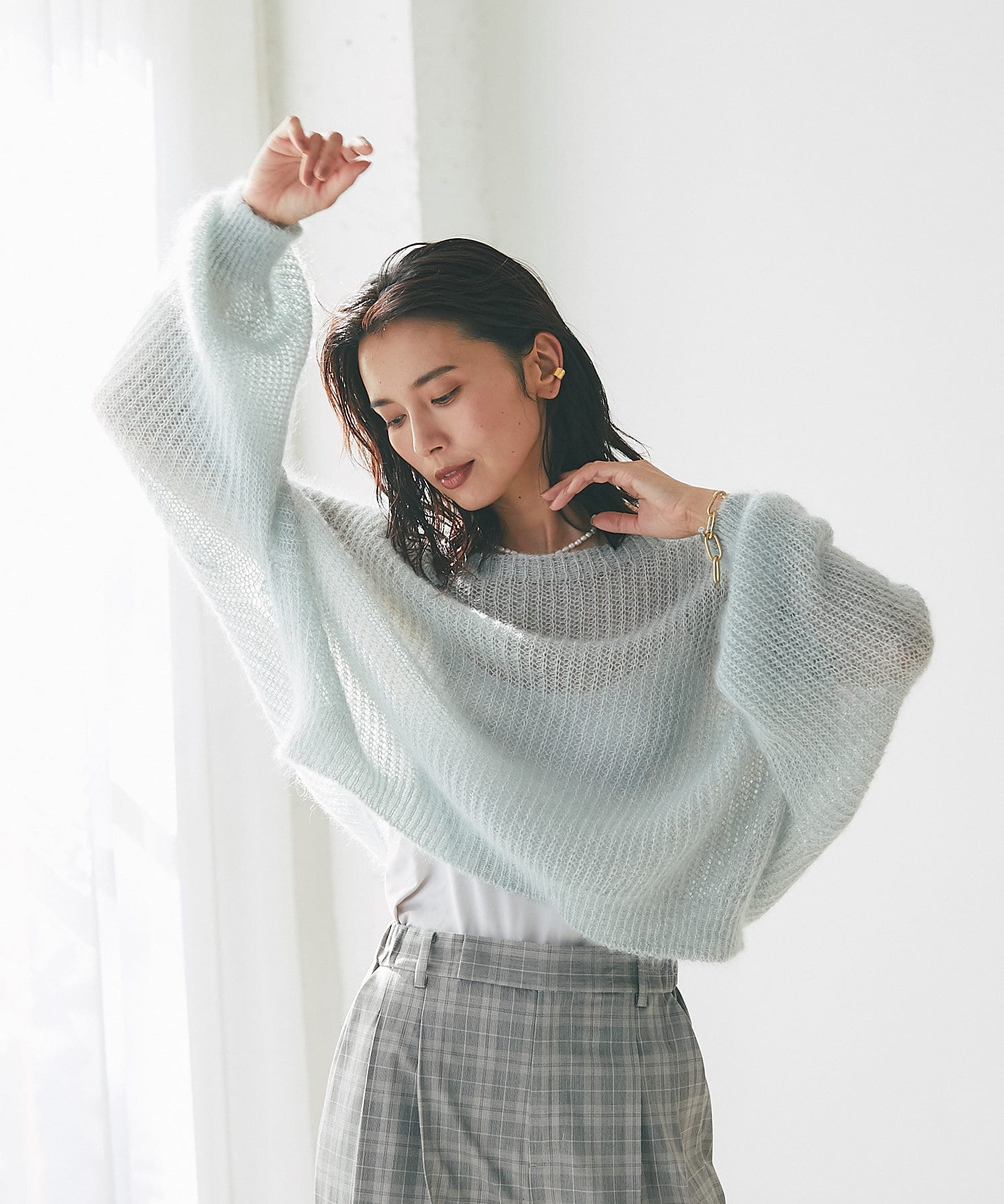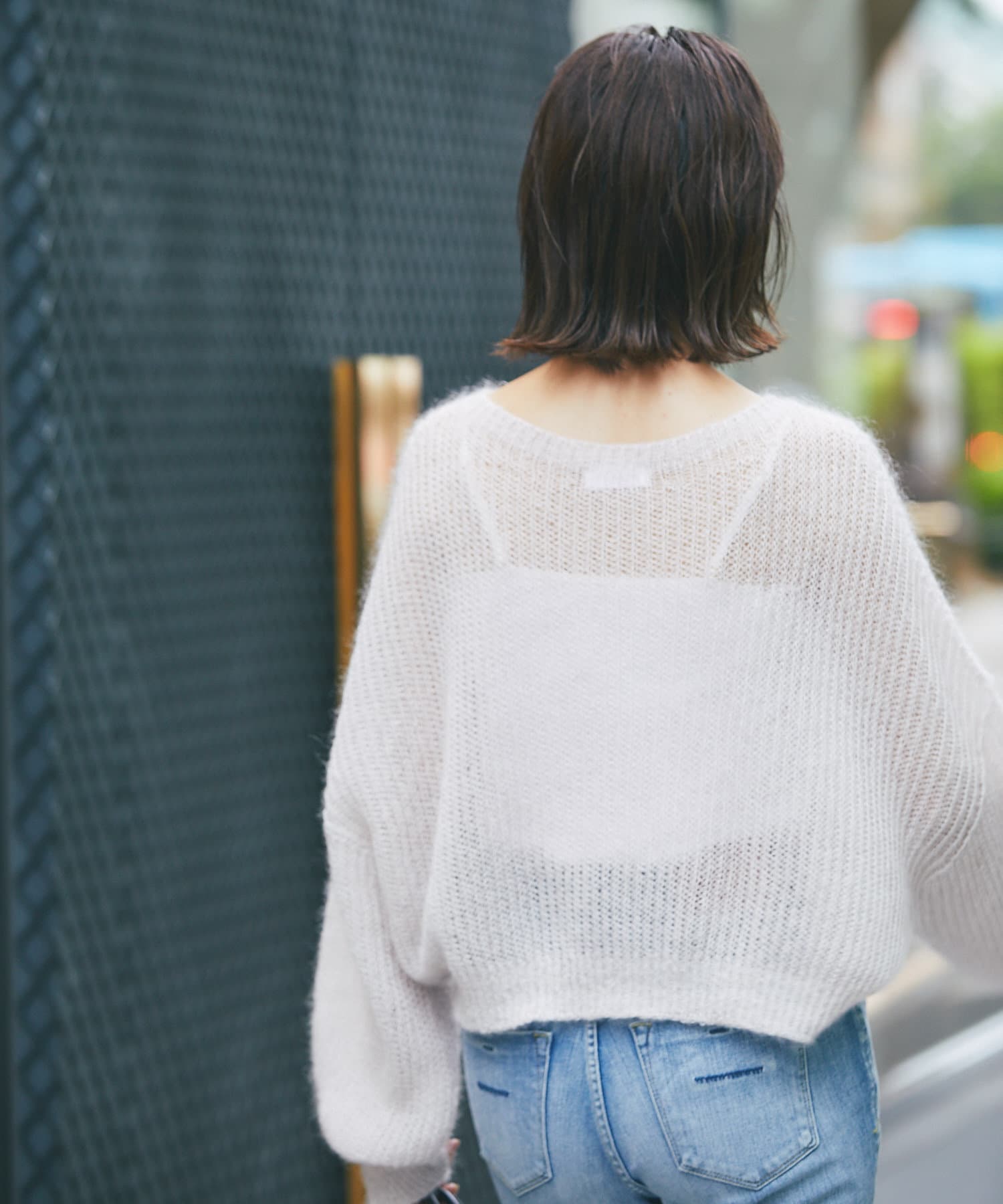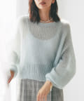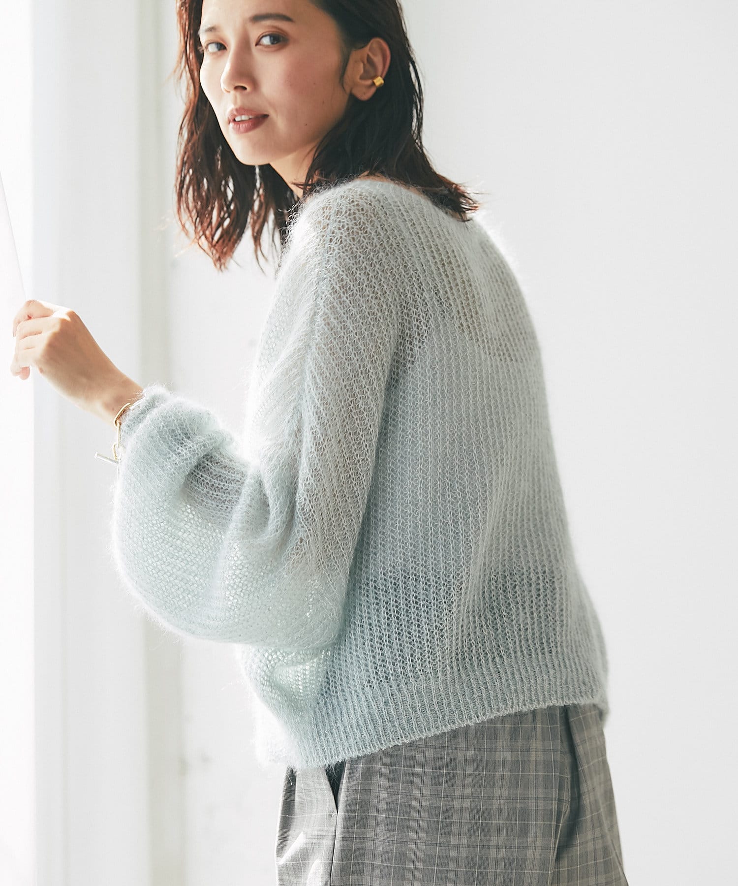 【程よい透け感とクロップド丈が魅力】ペーパーモヘアシアークロップニット
