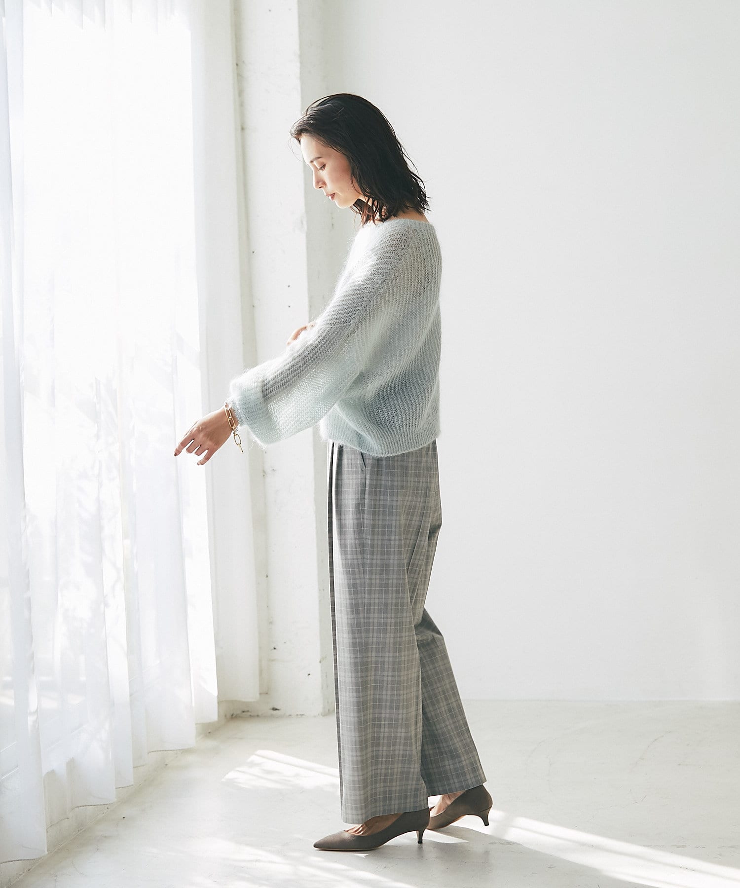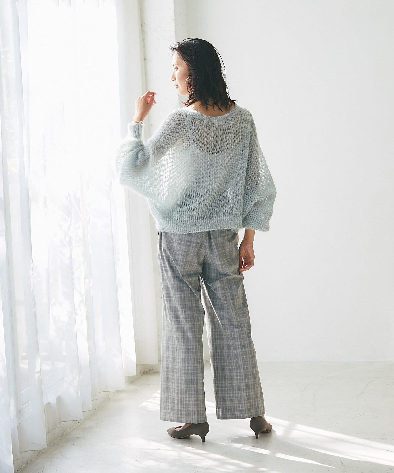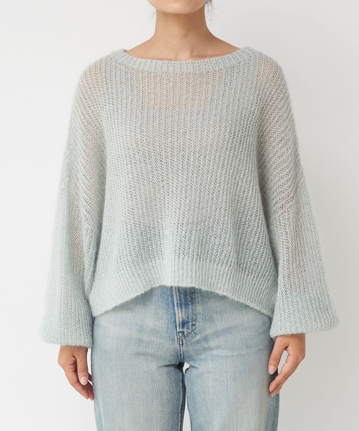 【程よい透け感とクロップド丈が魅力】ペーパーモヘアシアークロップニット
