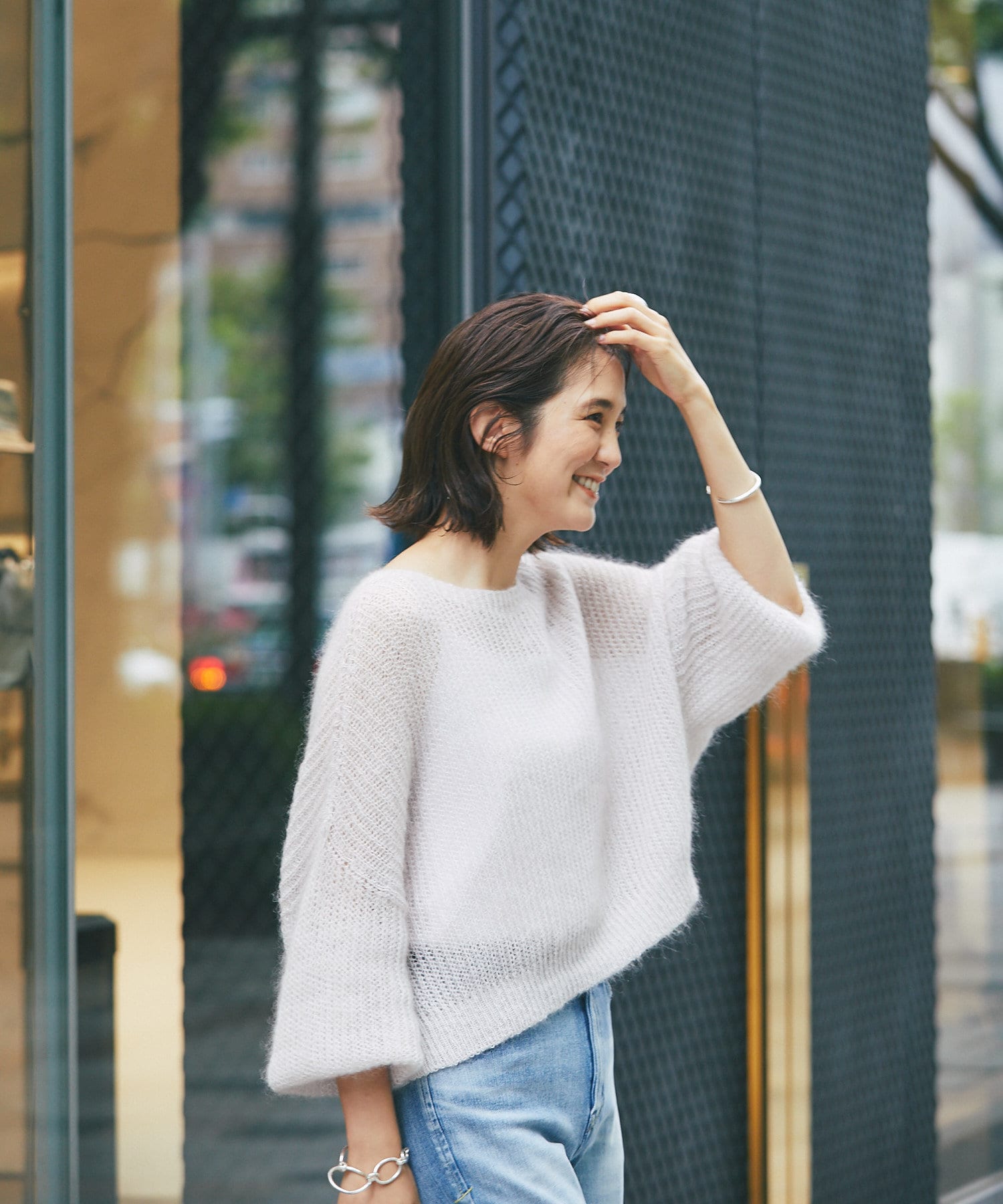 フワッとしたモヘアの魅力とシアー感を一度に楽しめる甘さの匙加減が絶妙な1着。