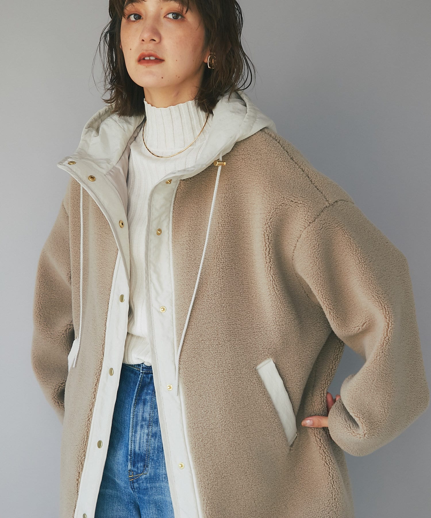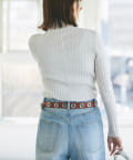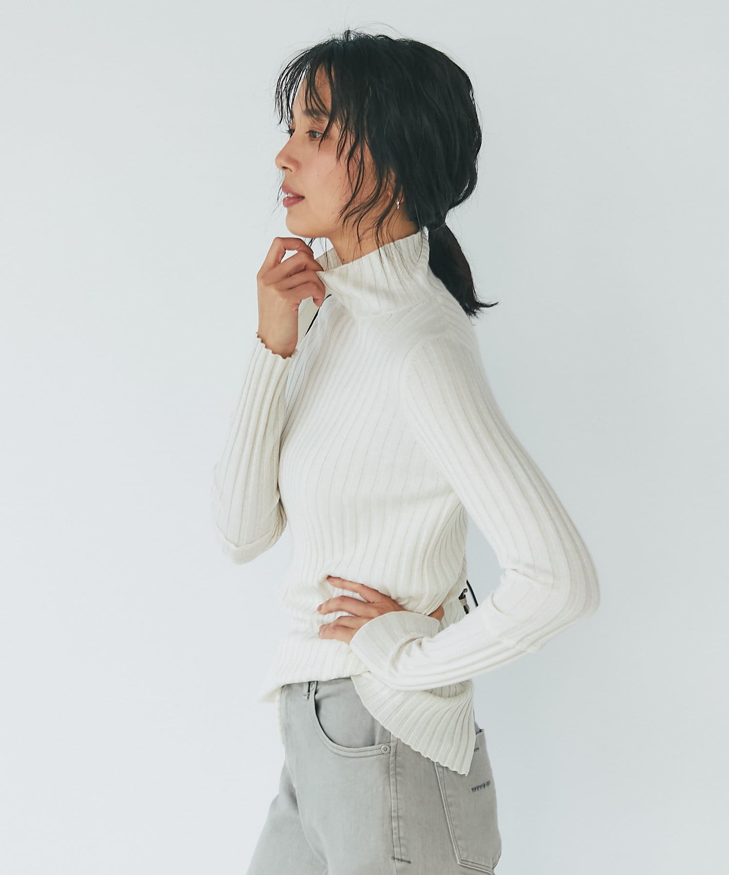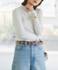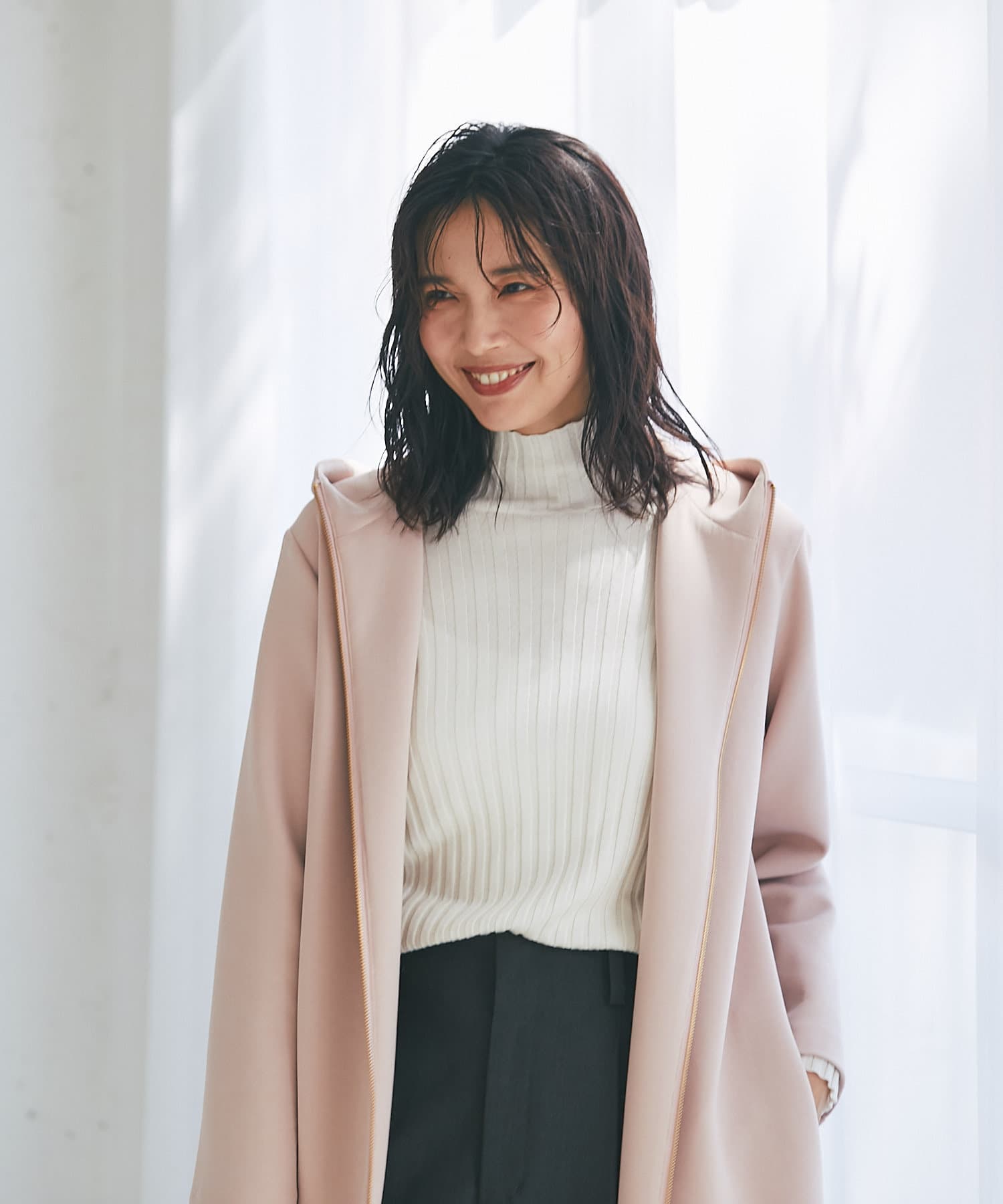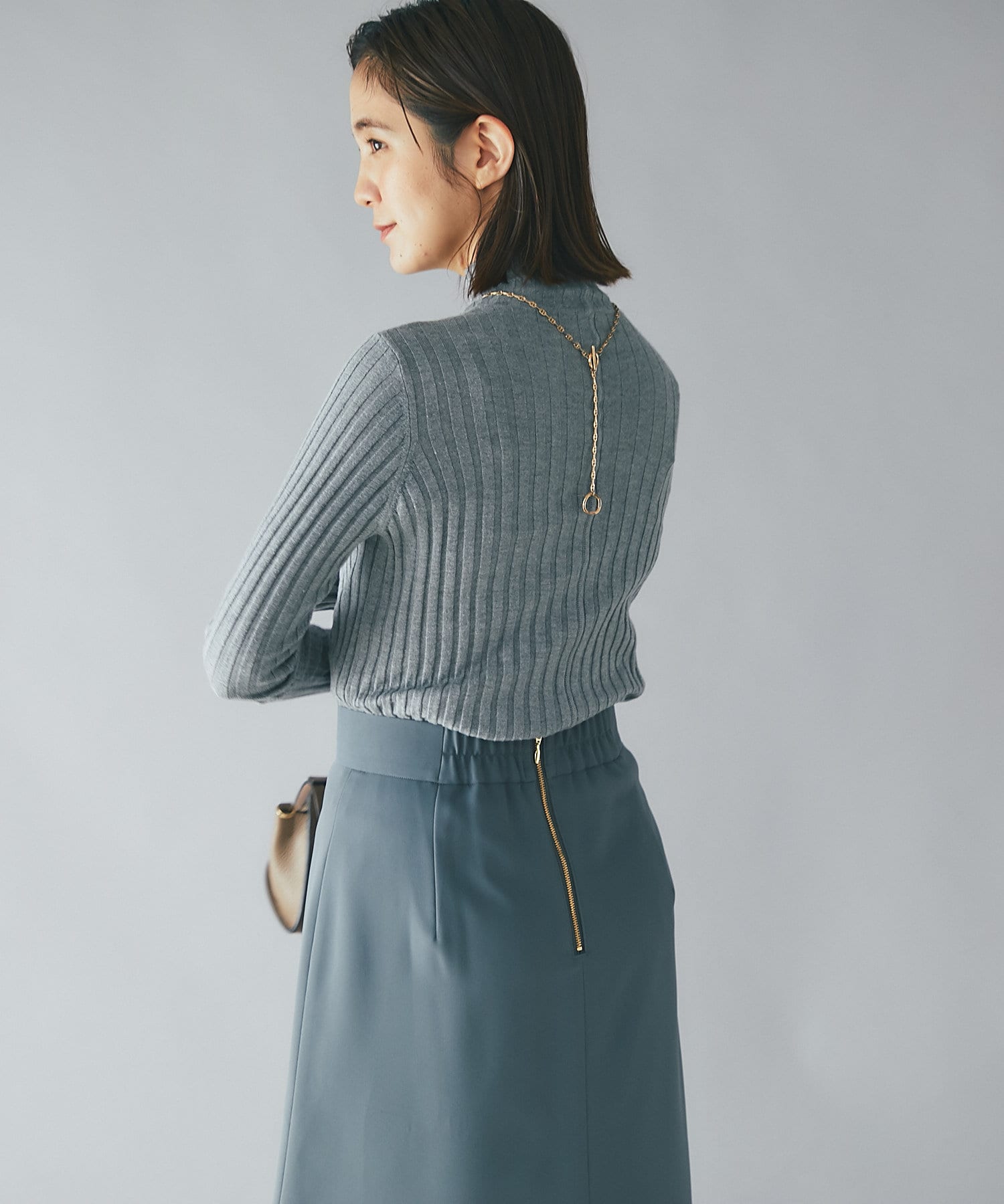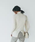 袖口などのシームデザインもポイント、袖口や裾は編み地を変えず、すっきりとした繊細な印象に。上品なニットなので、ON/OFFともに素敵に着用いただけます。