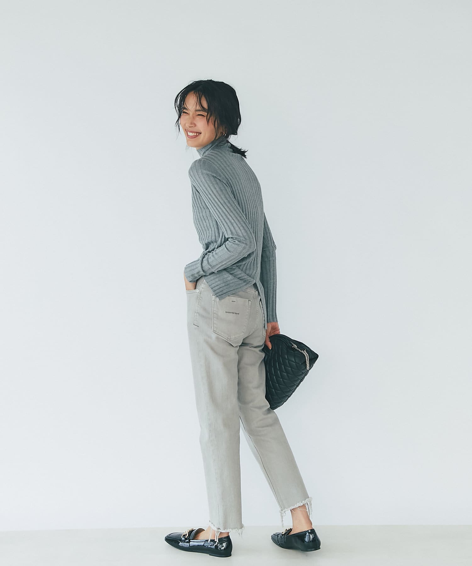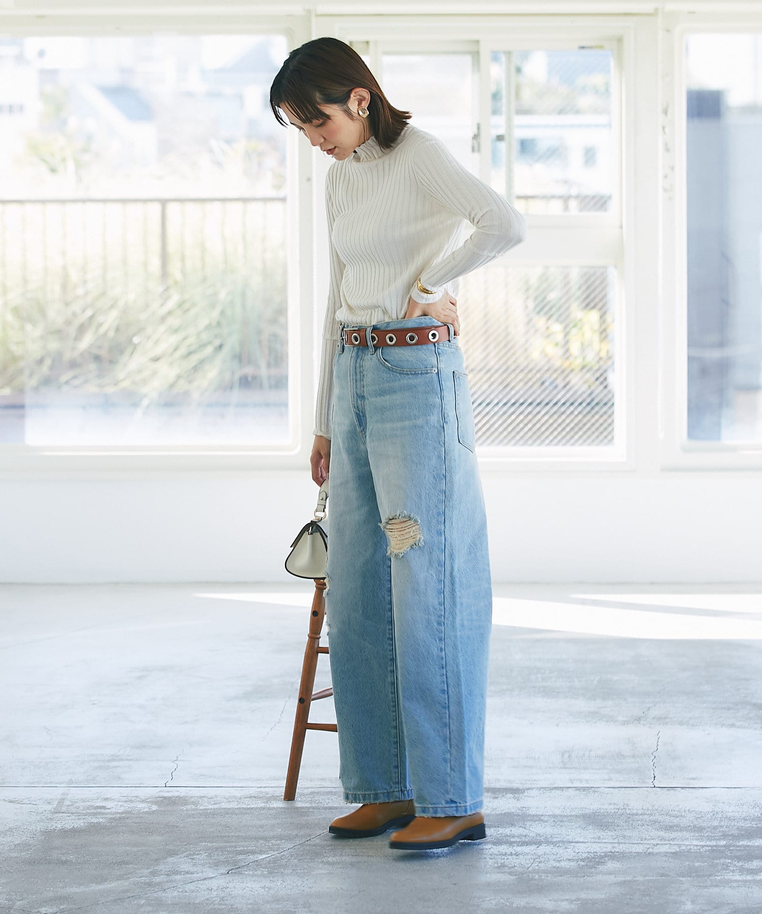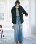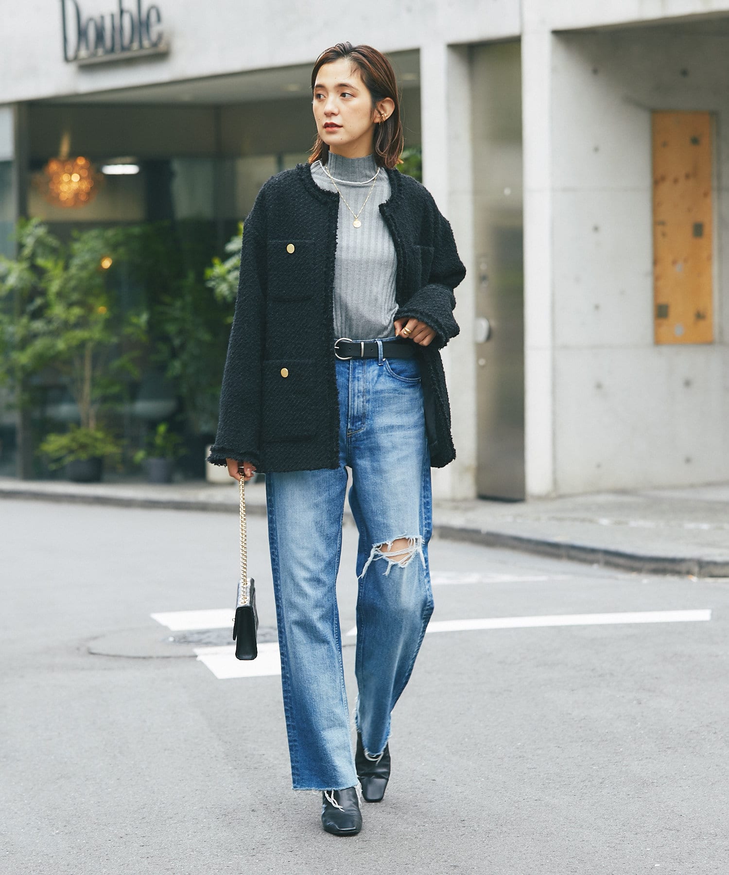 デニムにパンプスやブーツを合わせて大人カジュアルな着こなしがオススメ。