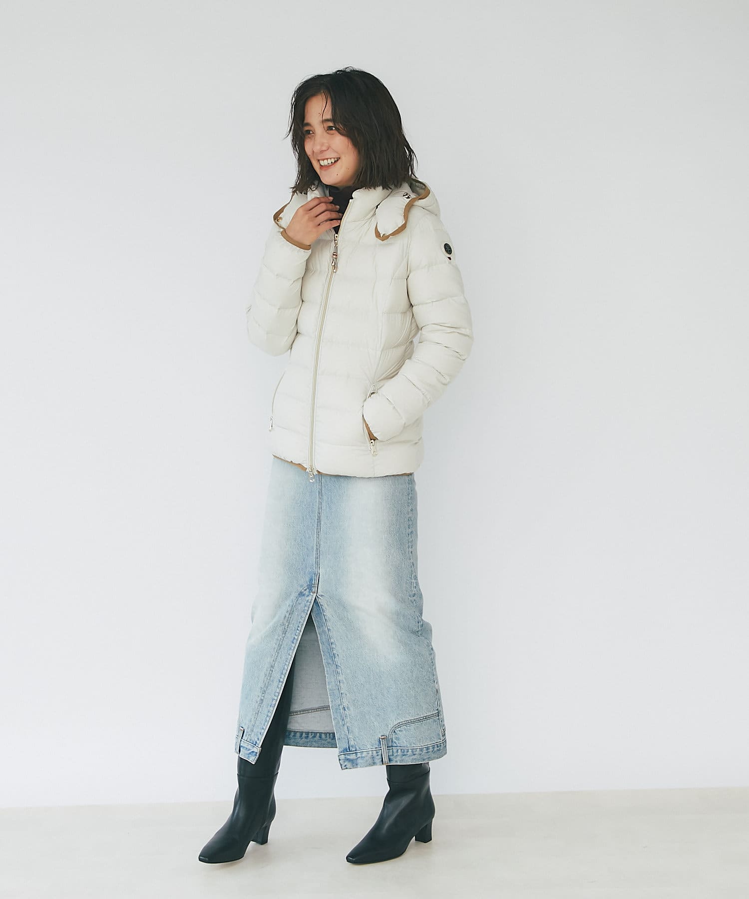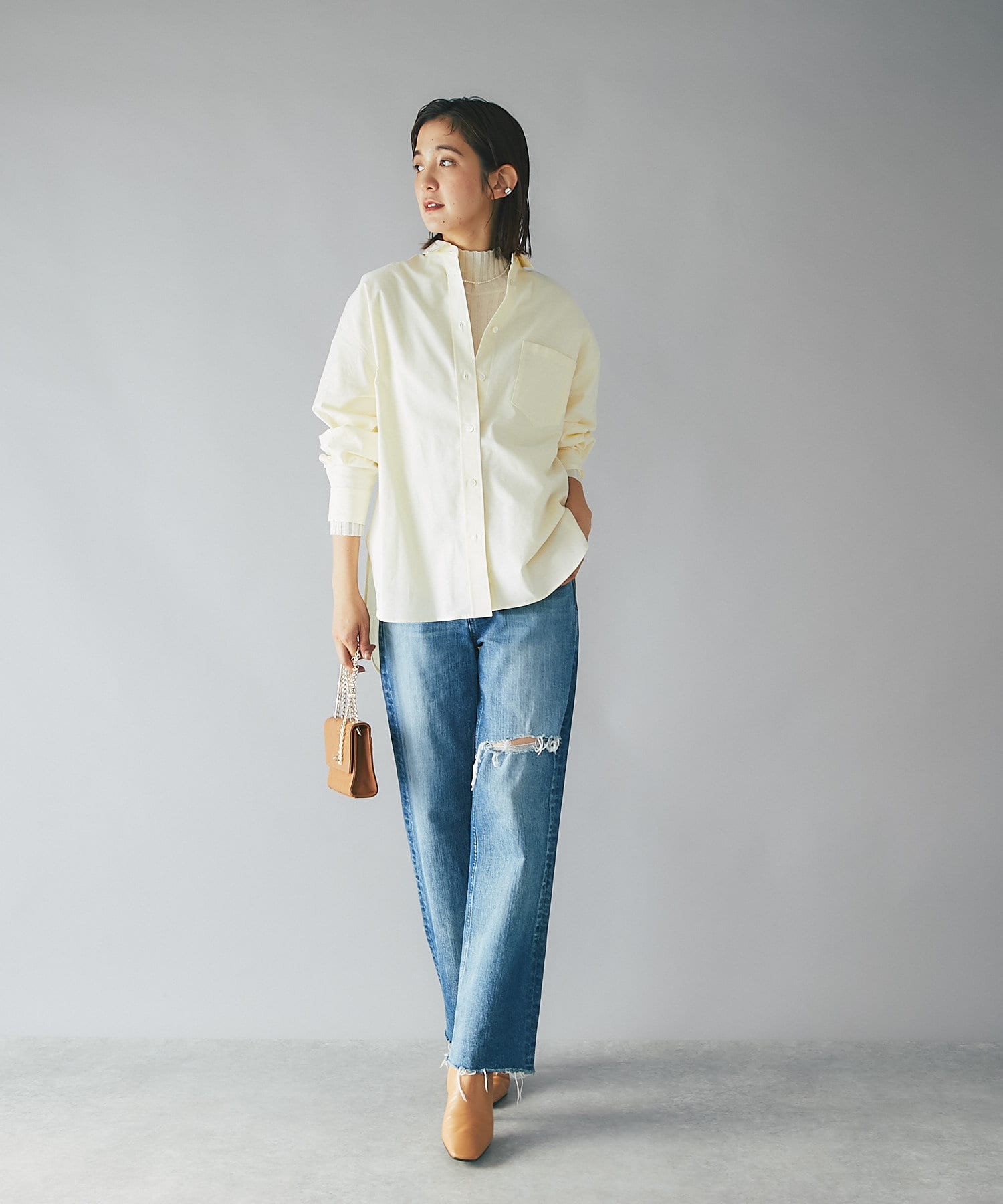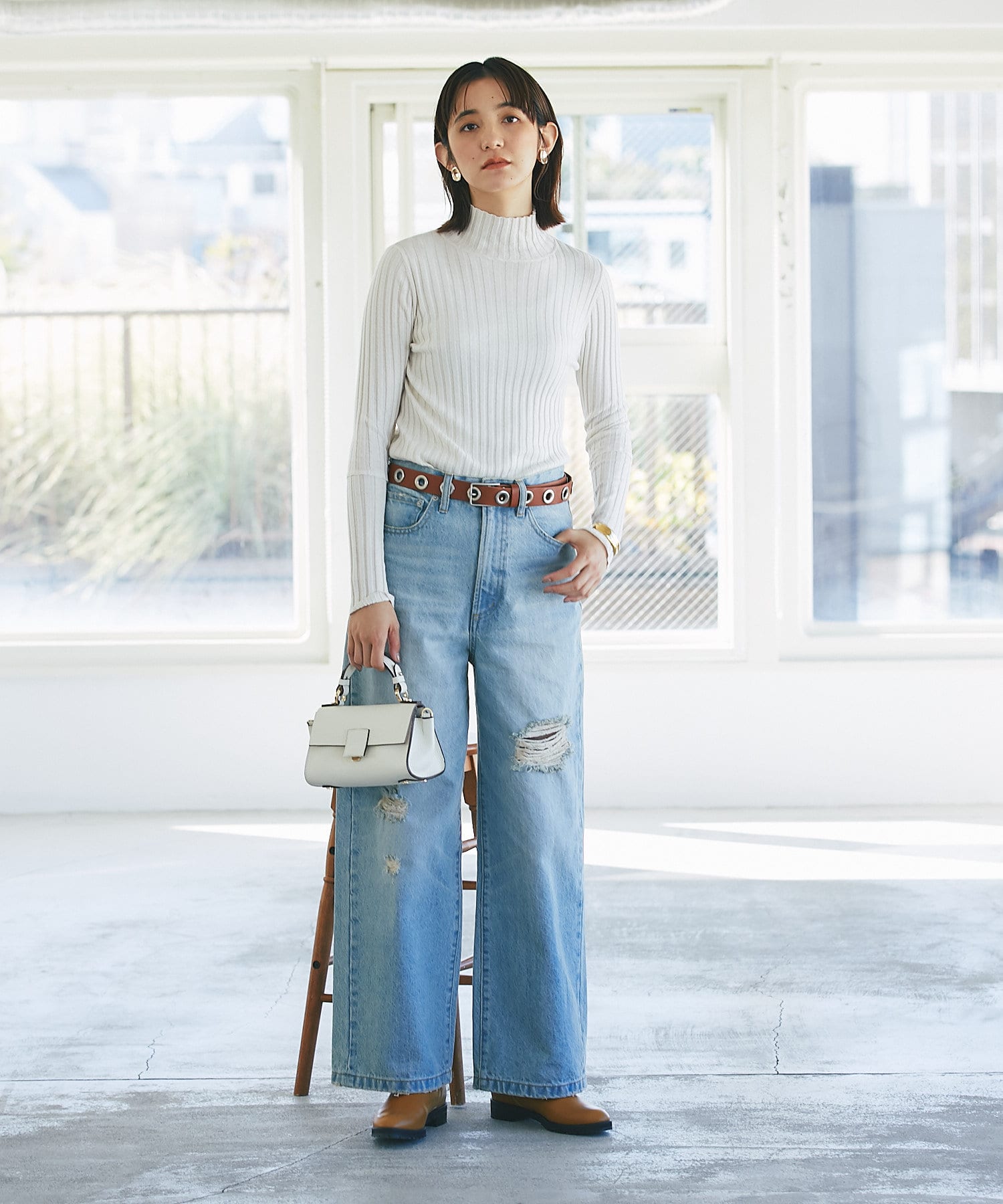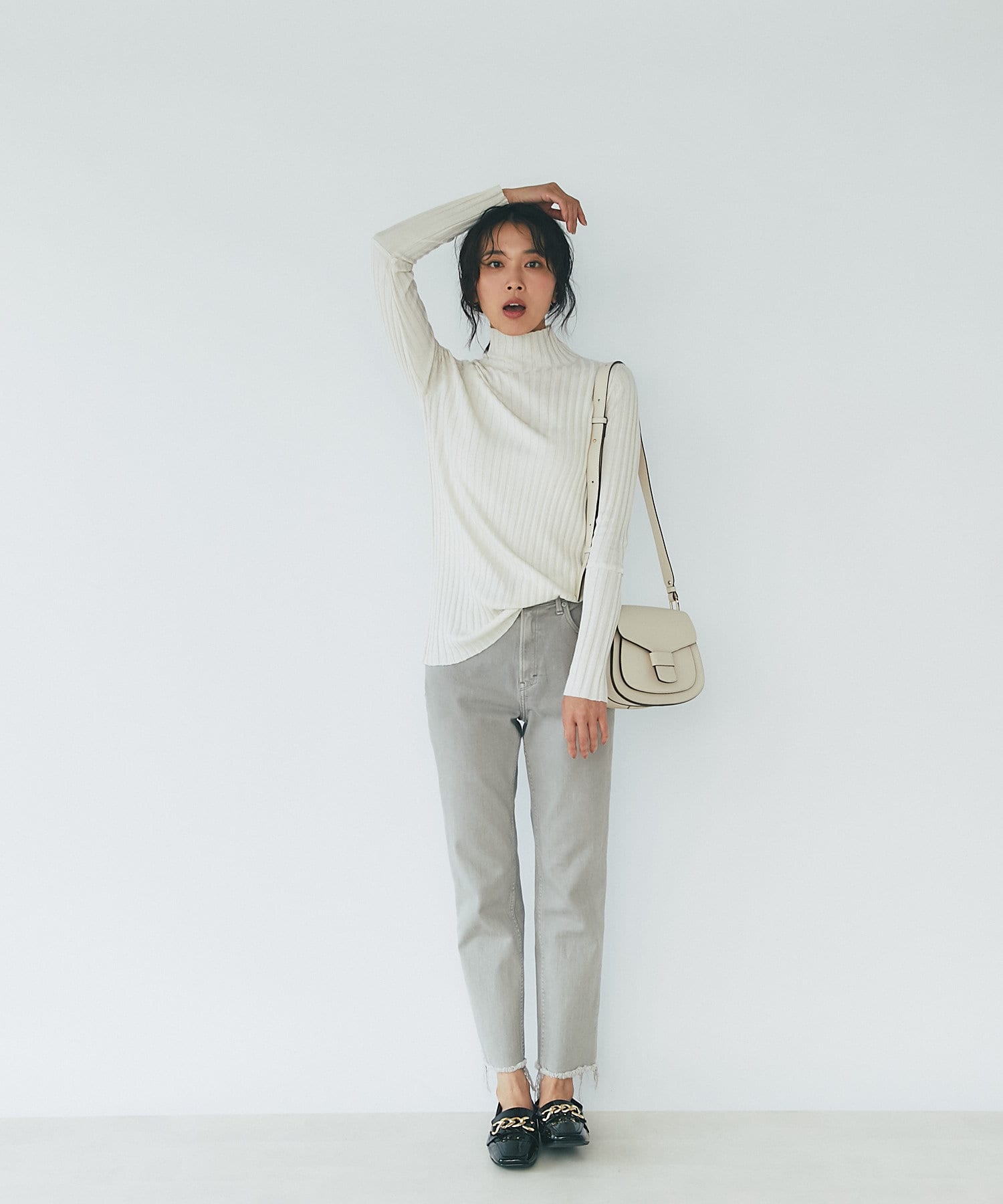 デニムにパンプスやブーツを合わせて大人カジュアルな着こなしがオススメ。