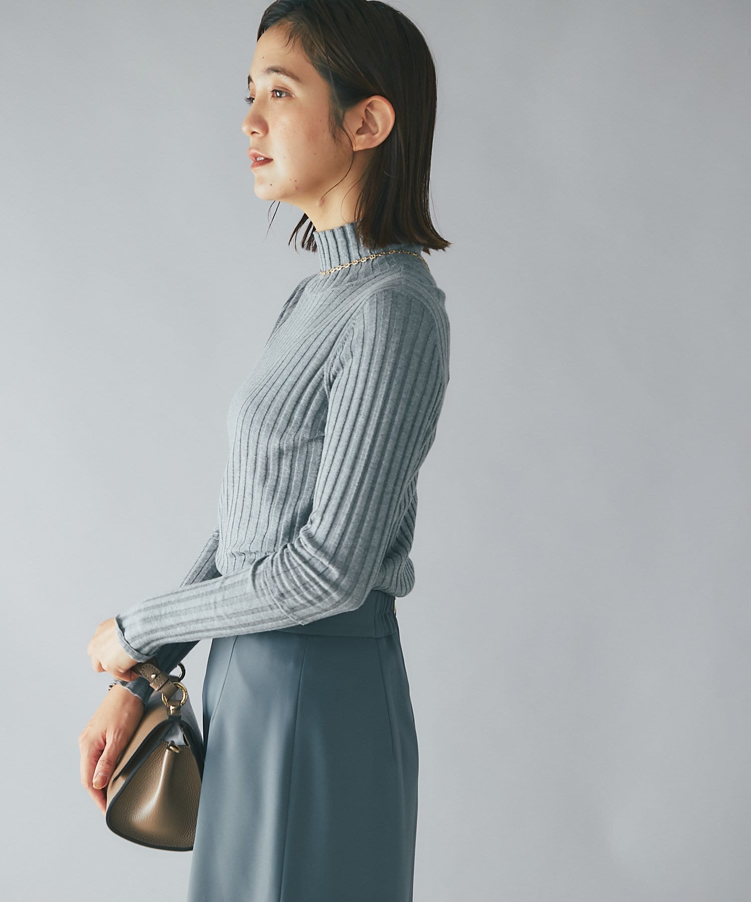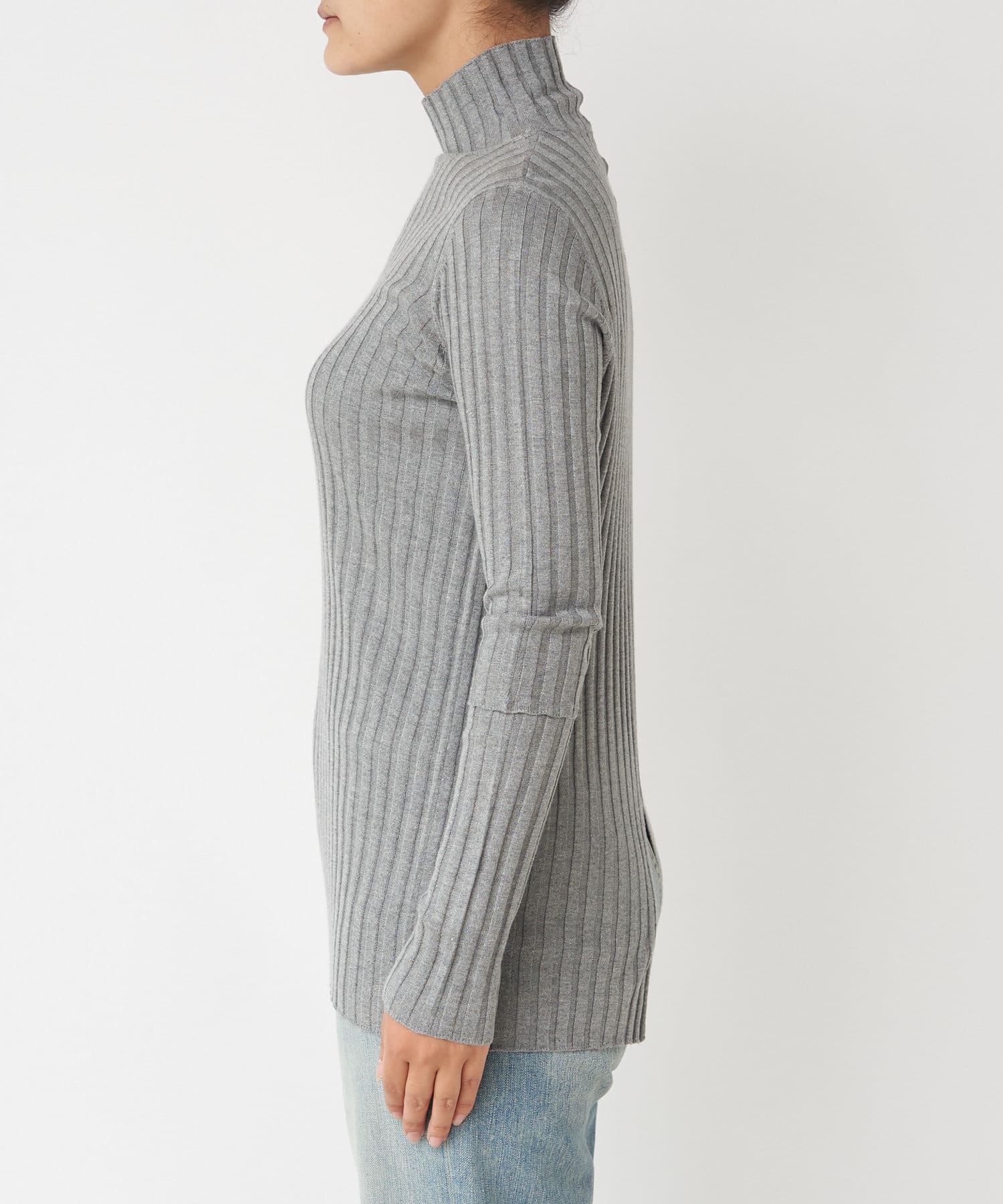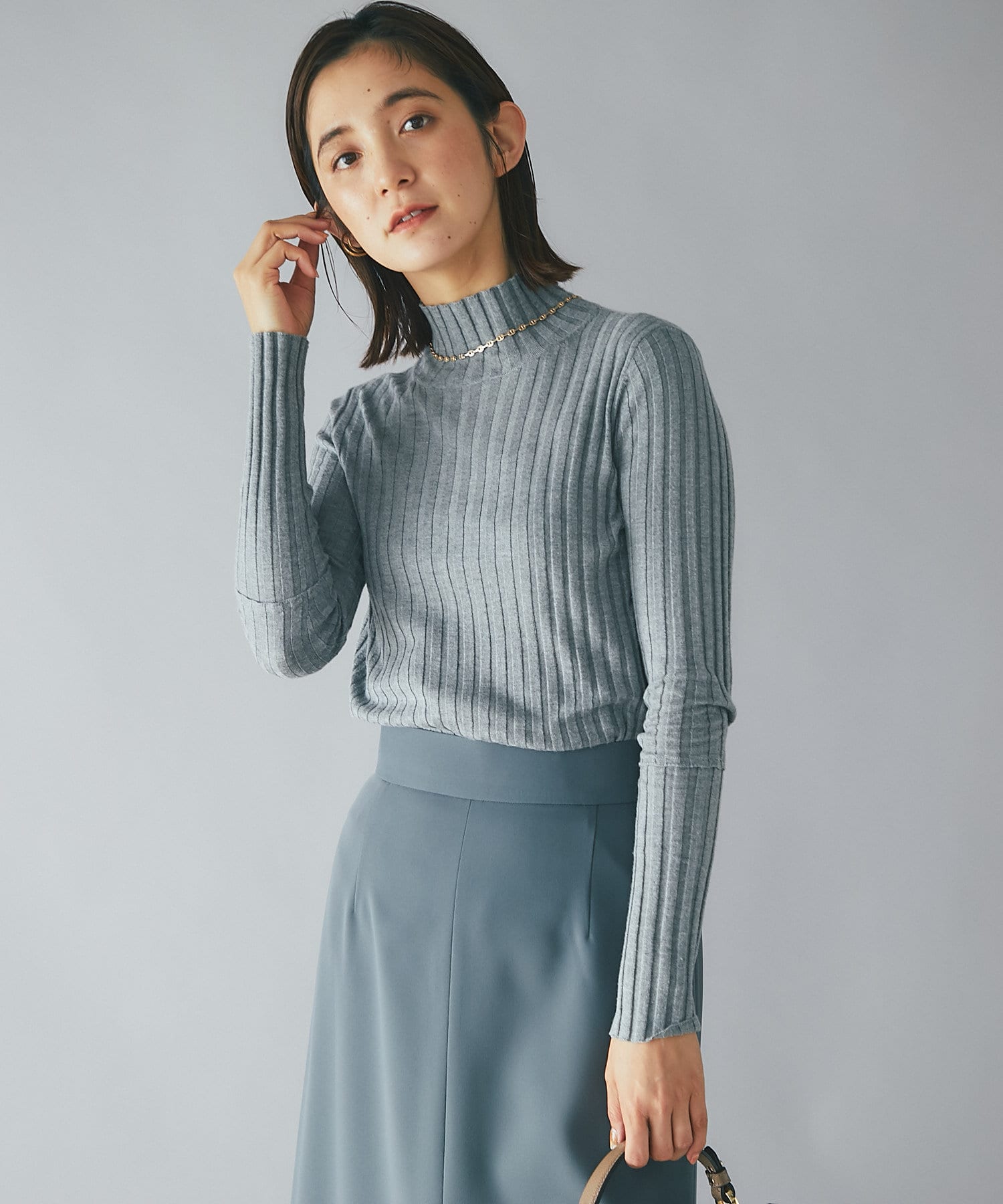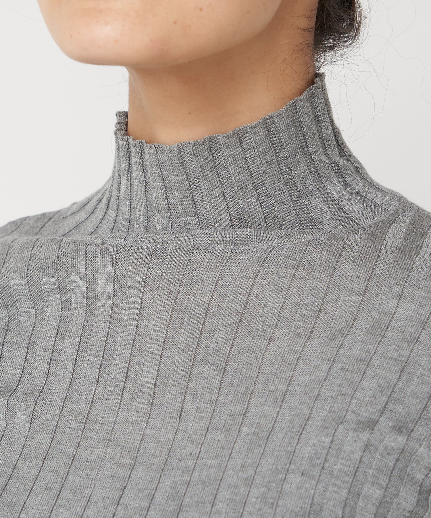 カシミヤの適度な暖かみとシルクの清涼感のある上質なリブニット
