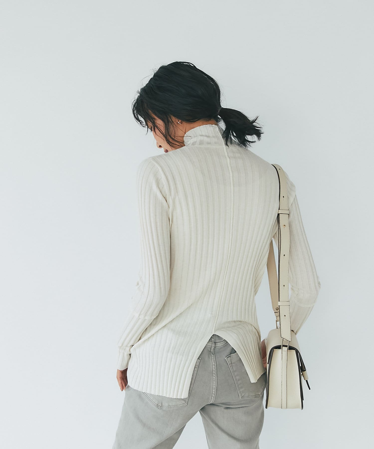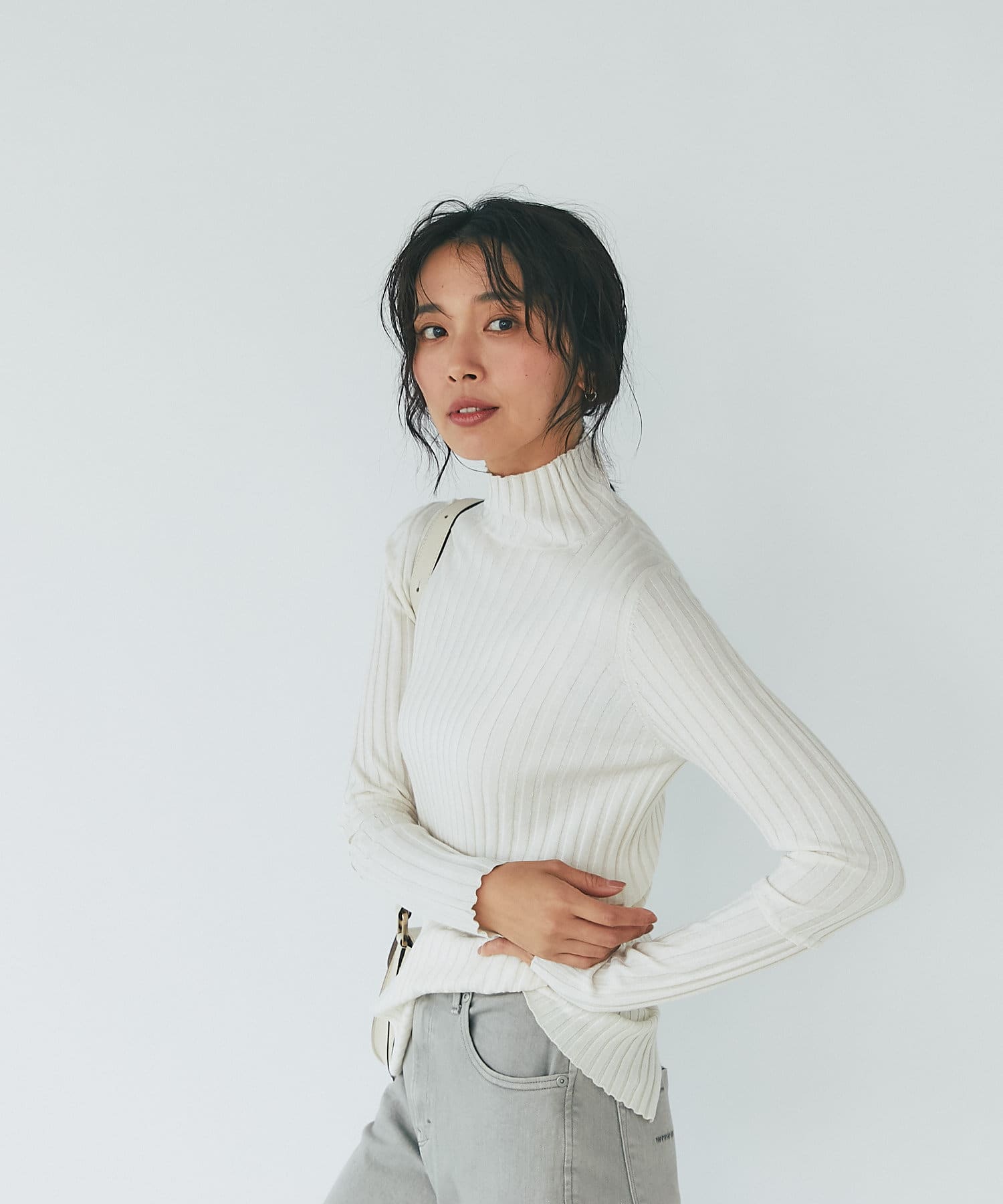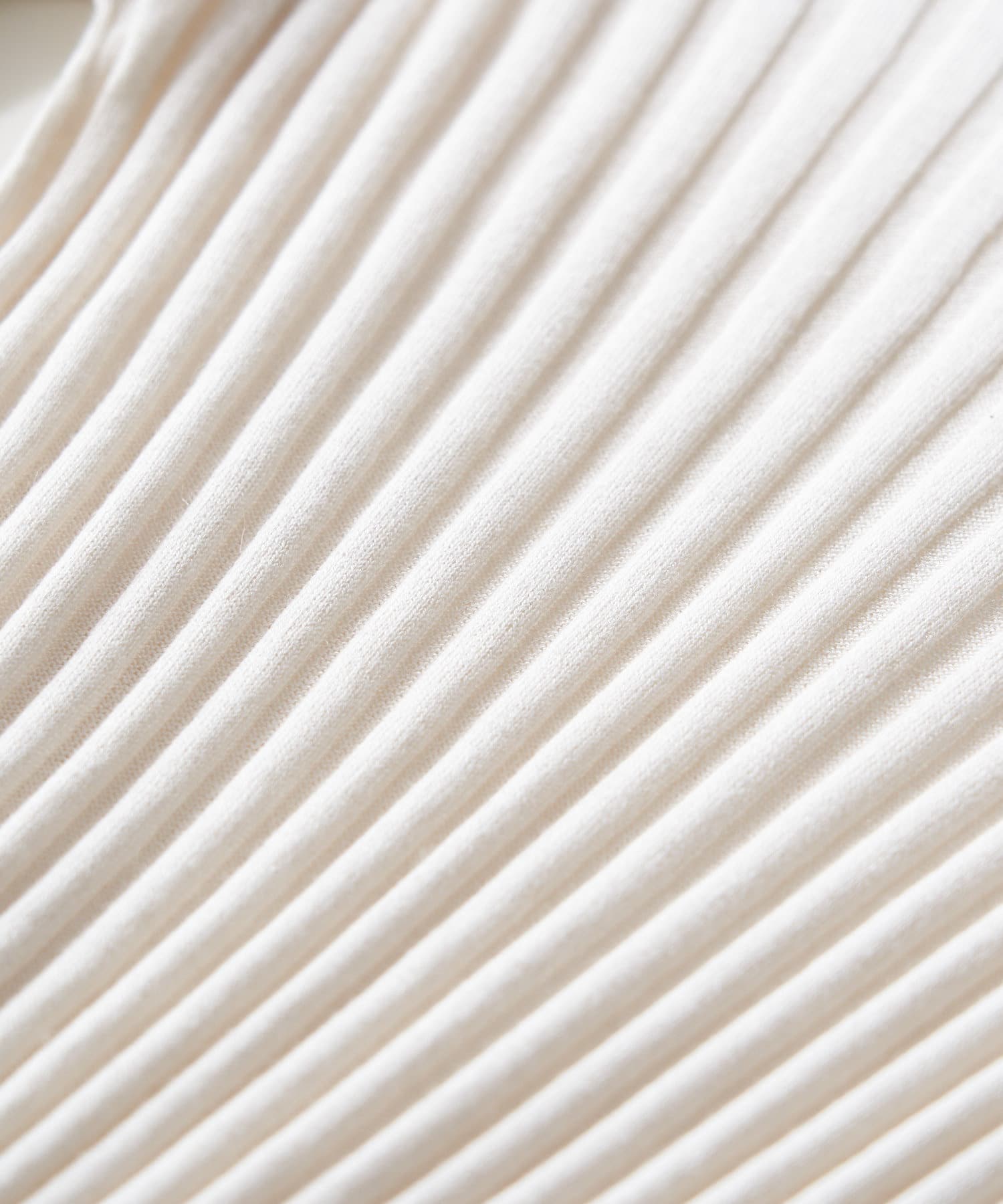 カシミヤの適度な暖かみとシルクの清涼感のある上質なリブニット