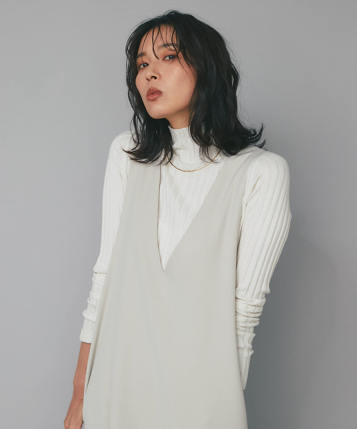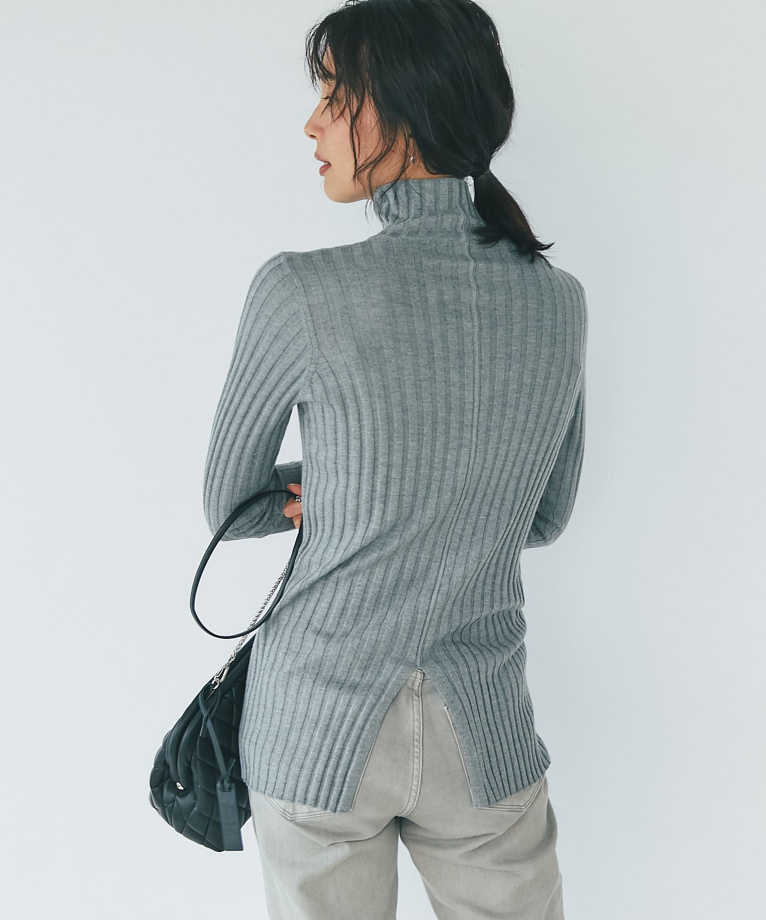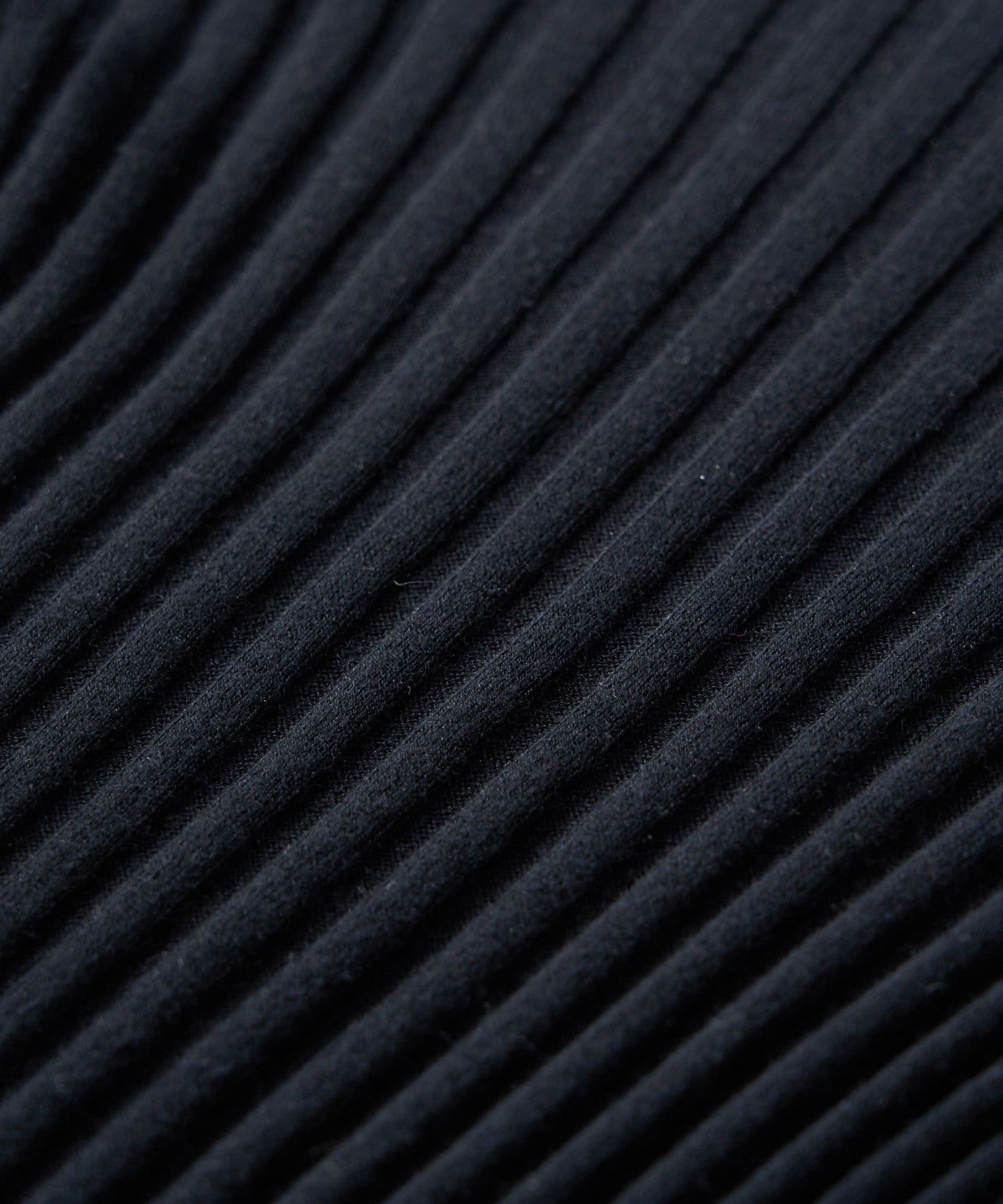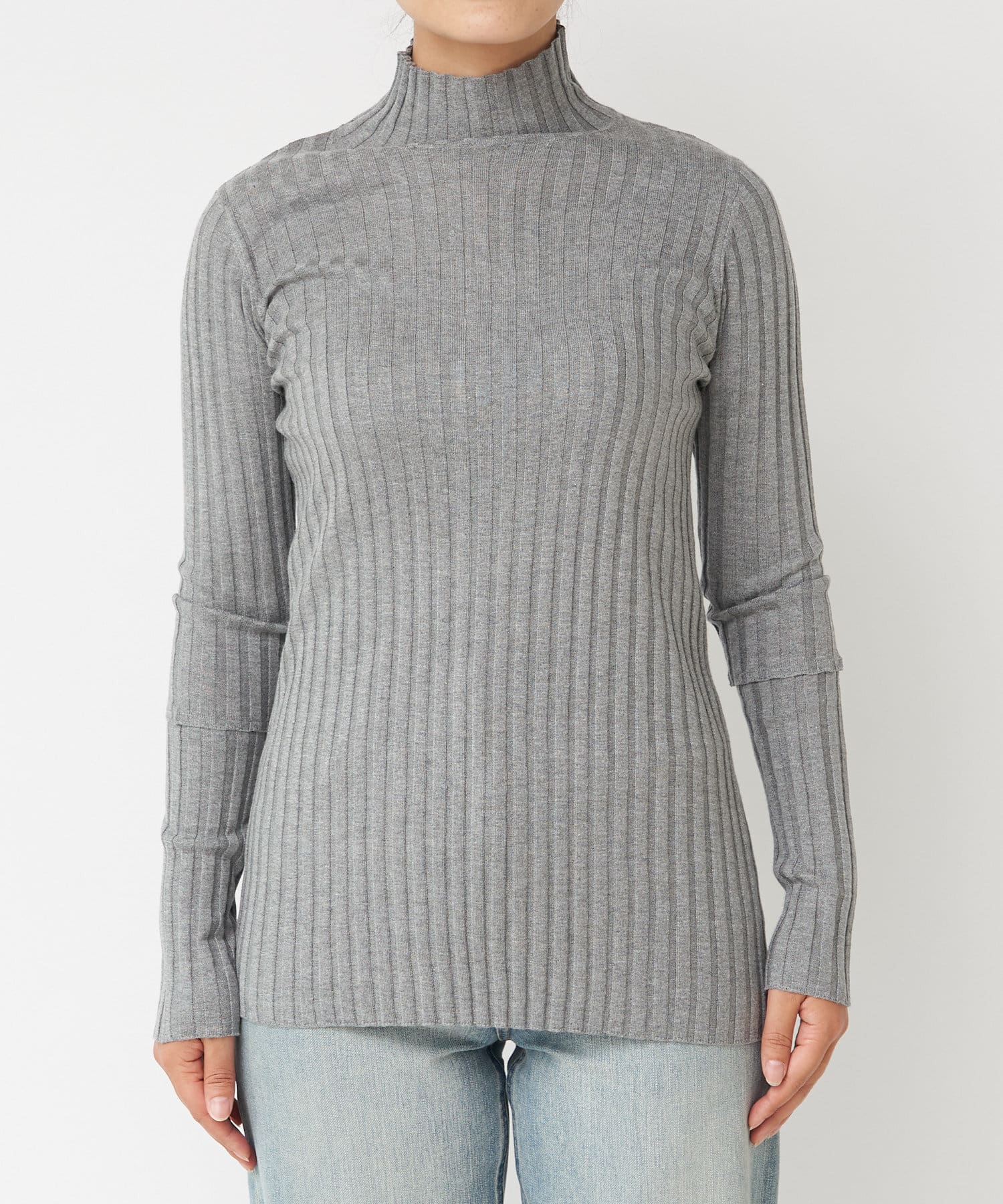 カシミヤの適度な暖かみとシルクの清涼感のある上質なリブニット