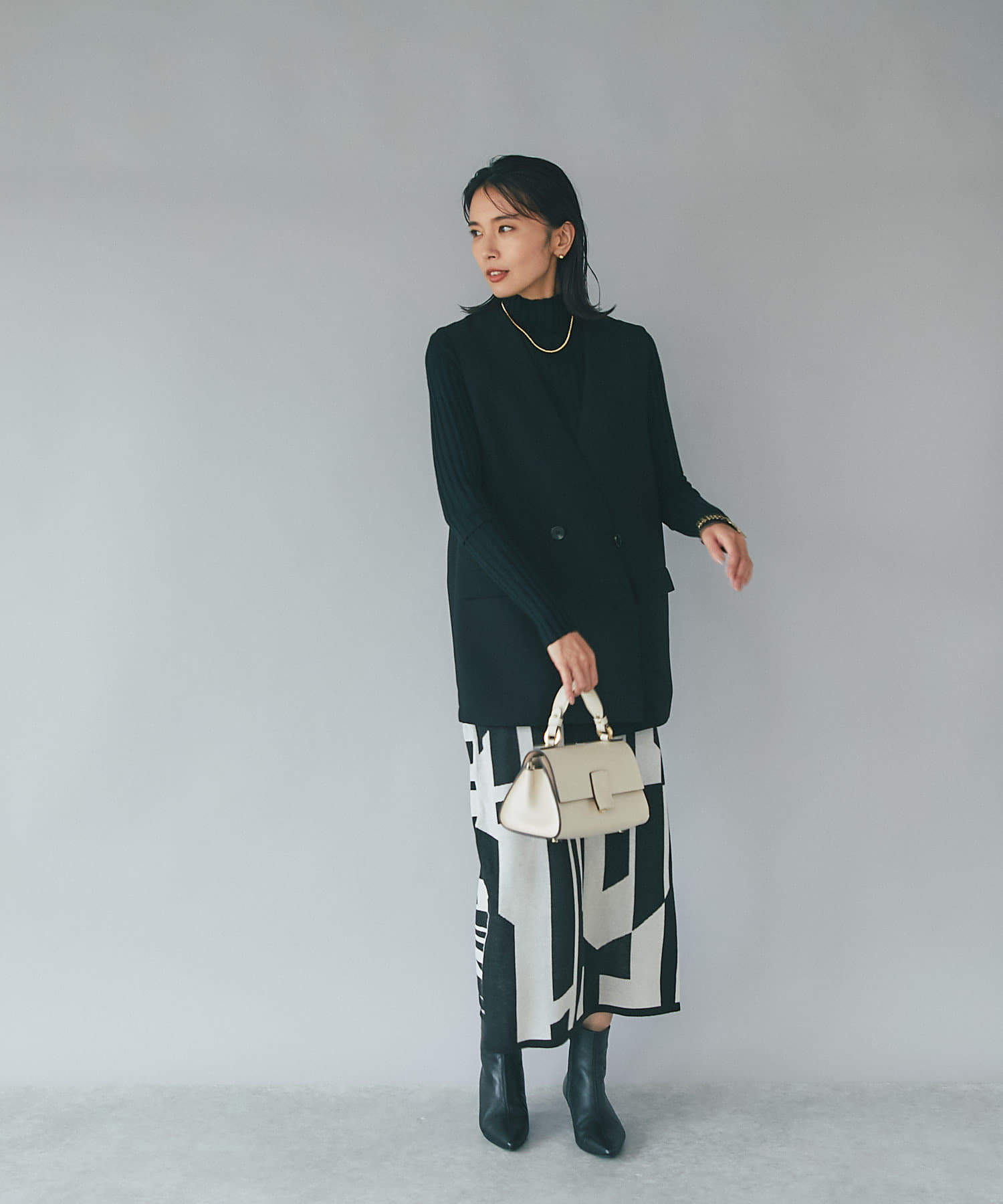 タイトやフレアスカートと合わせて上品に女性らしく合わせるのも素敵です。