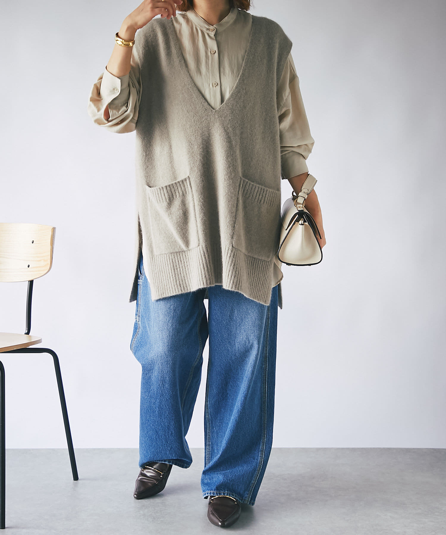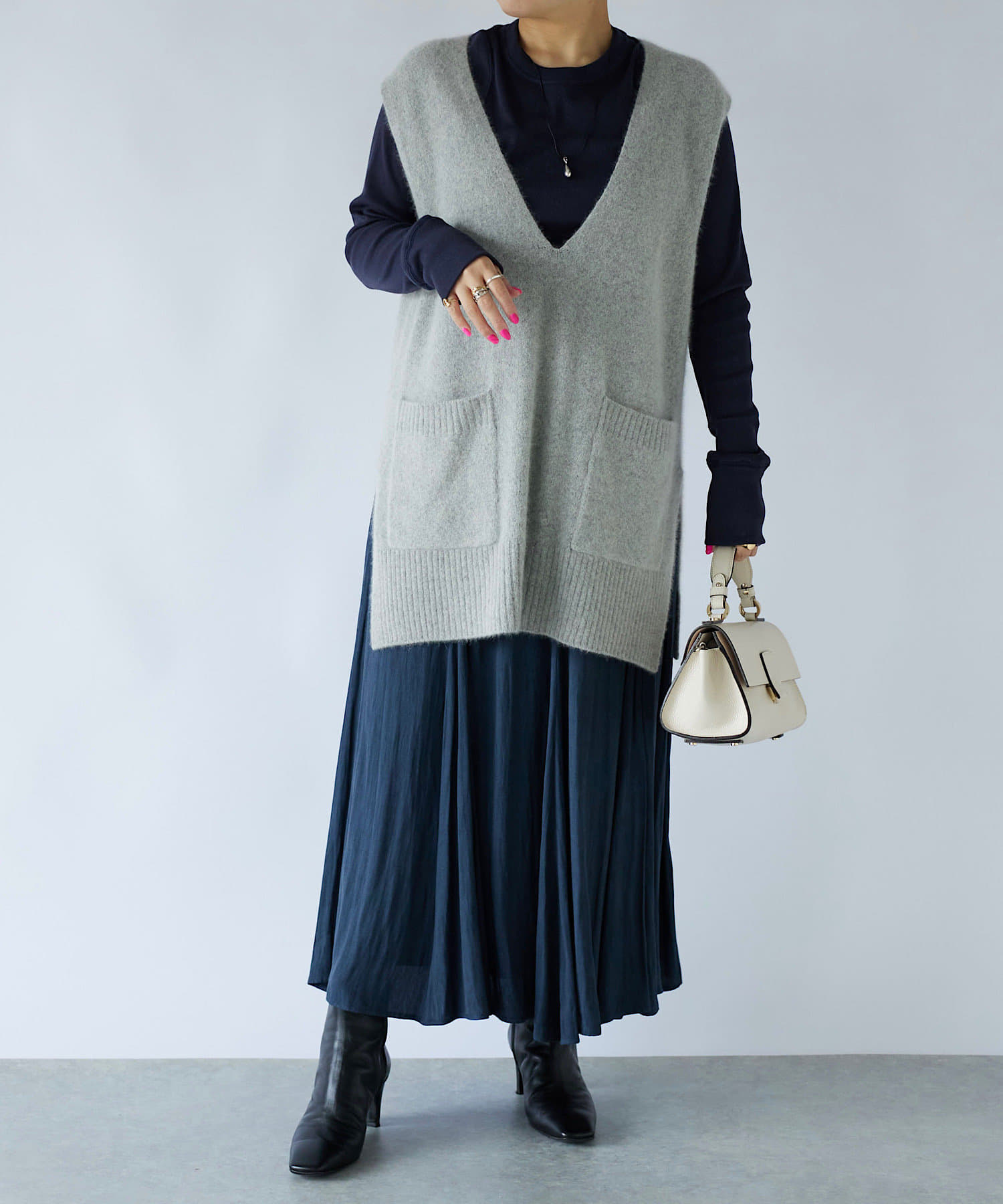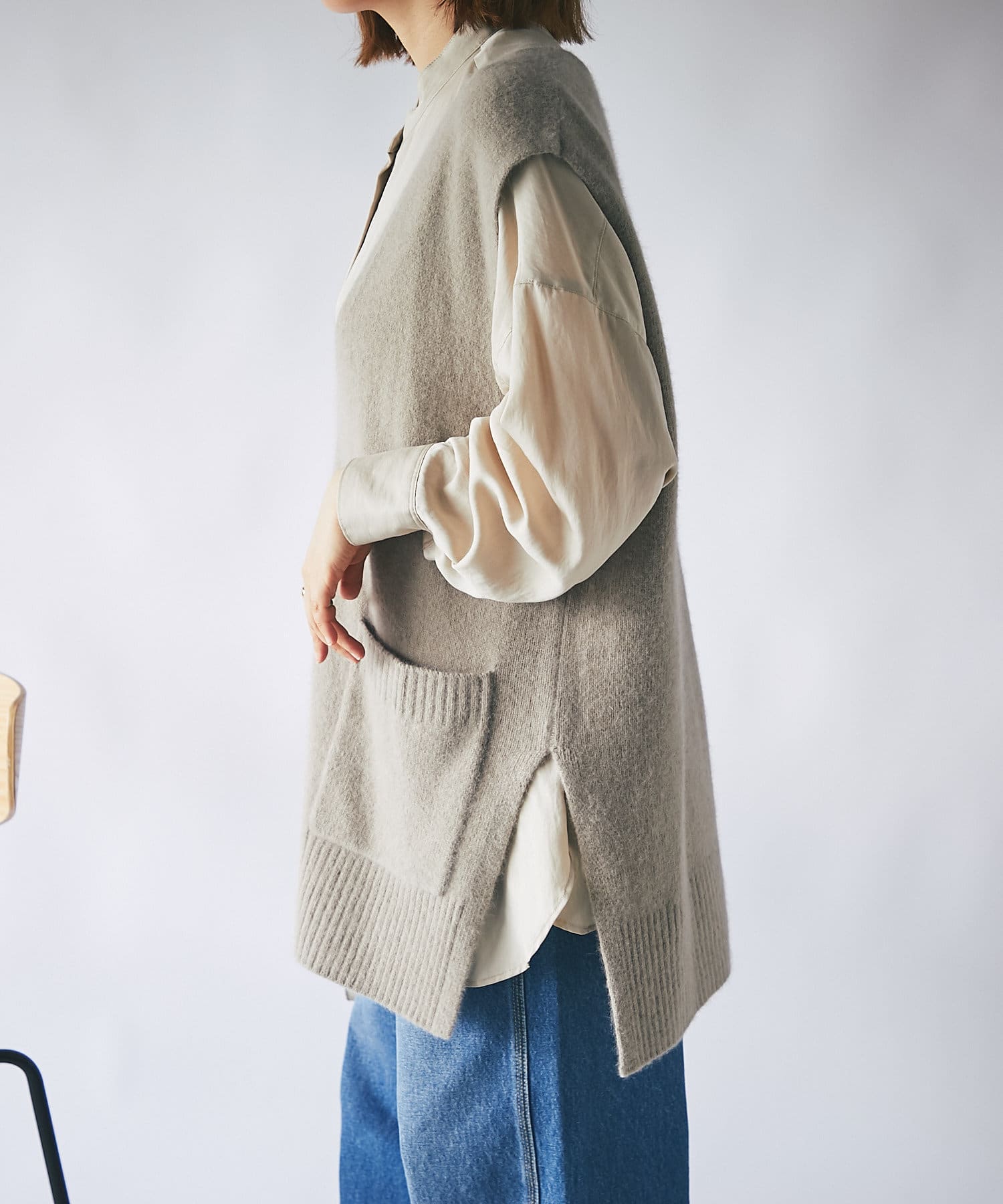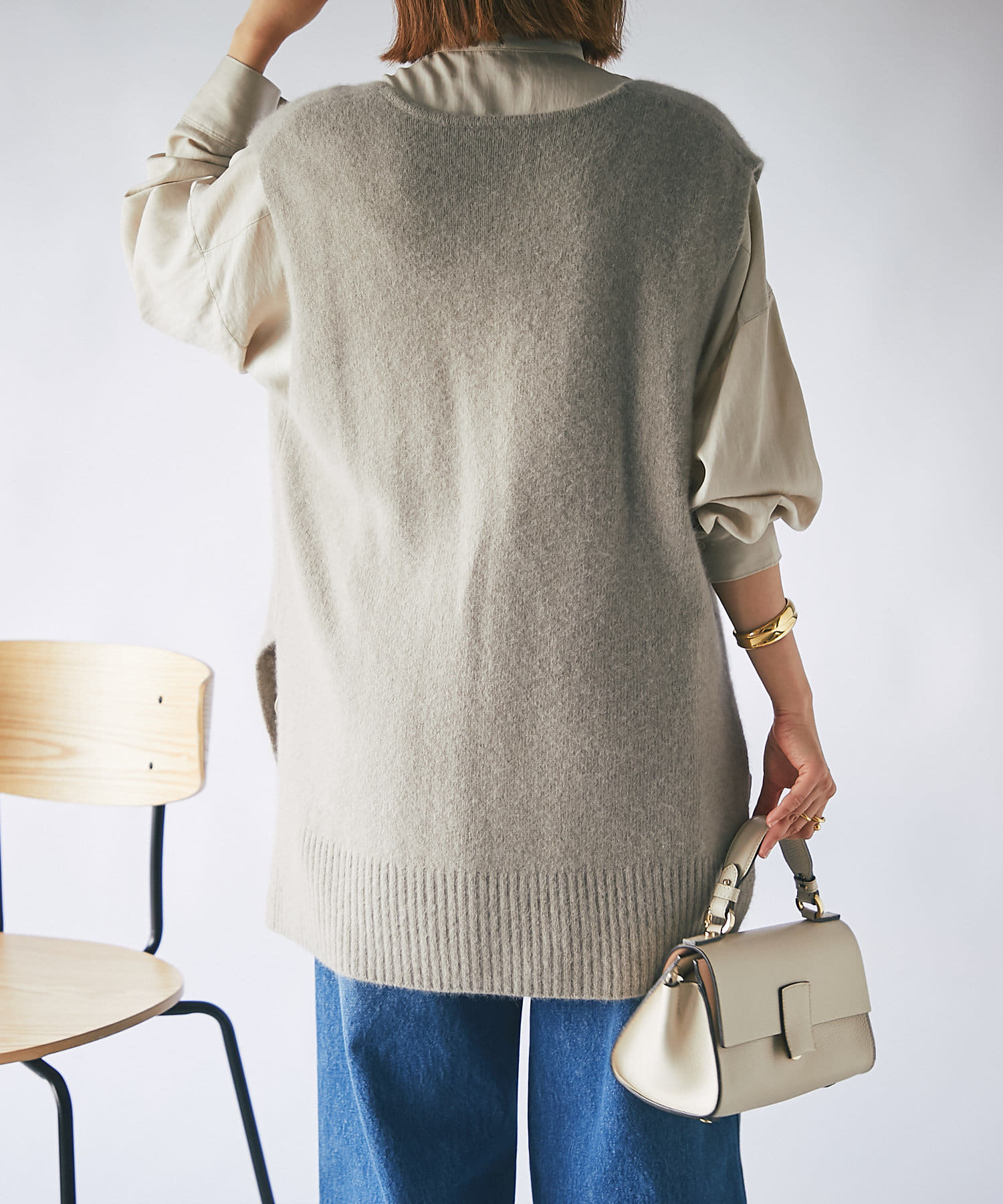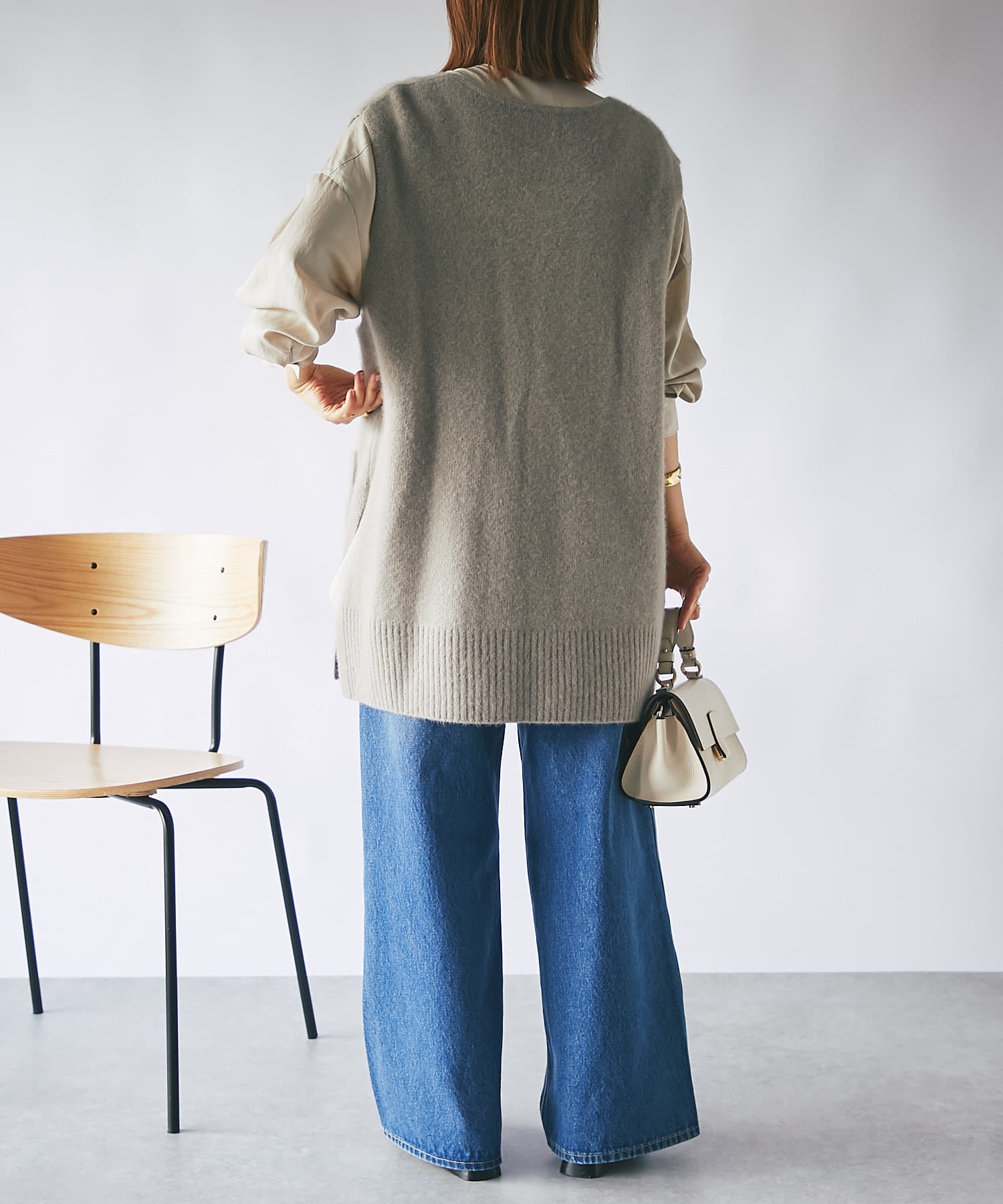 【こなれたレイヤードスタイルにおすすめ】ヘアリーヤーンロングベスト