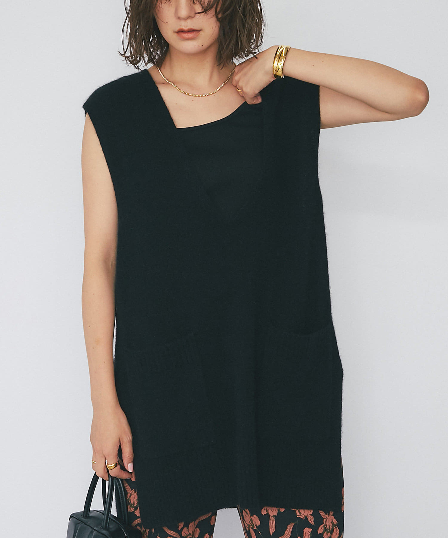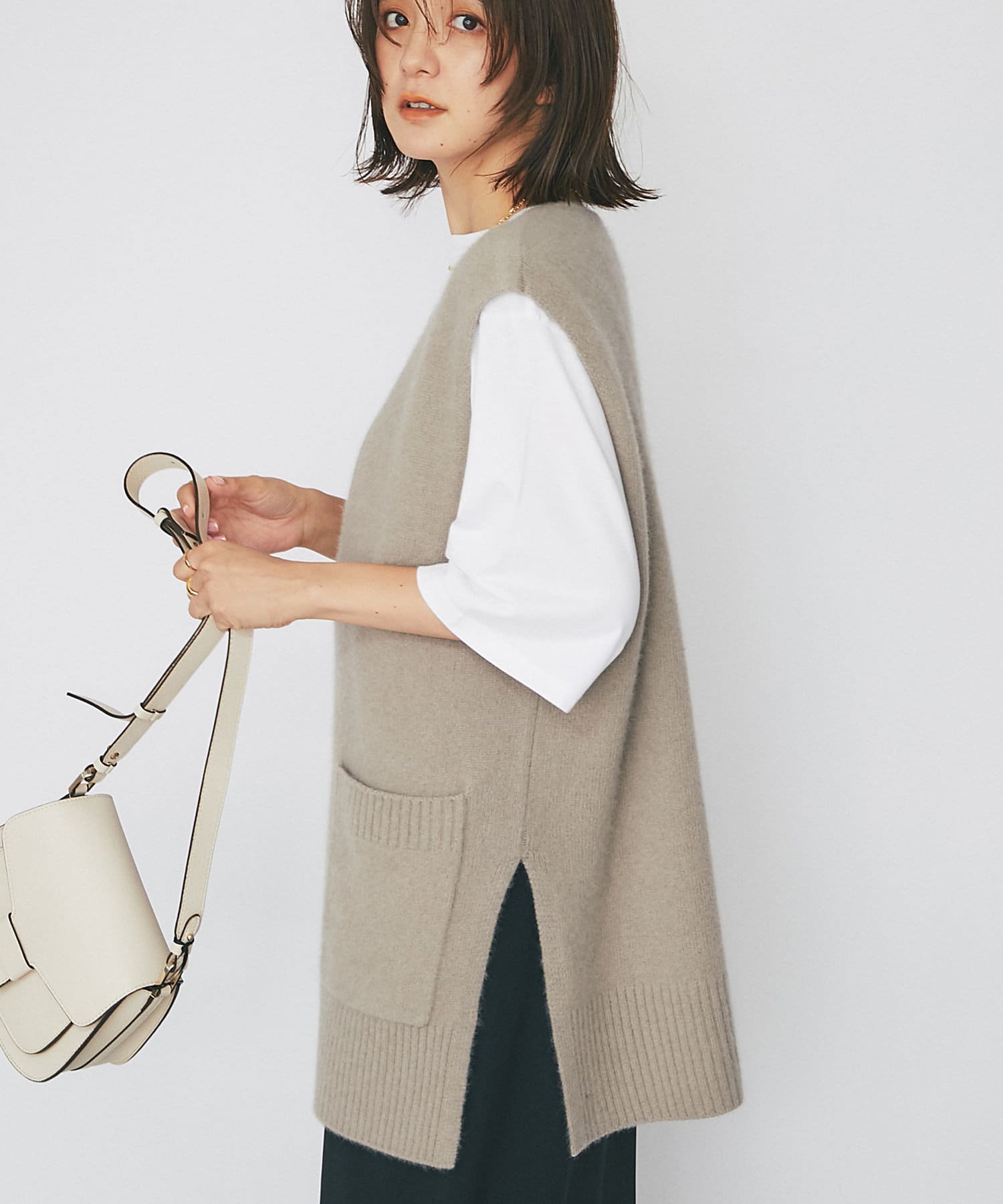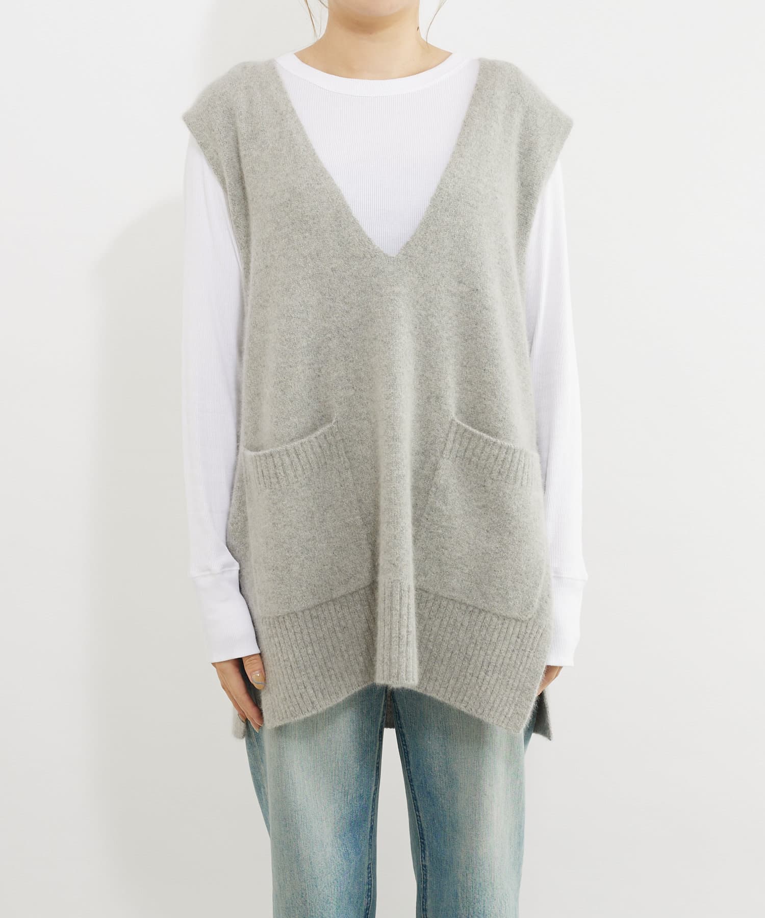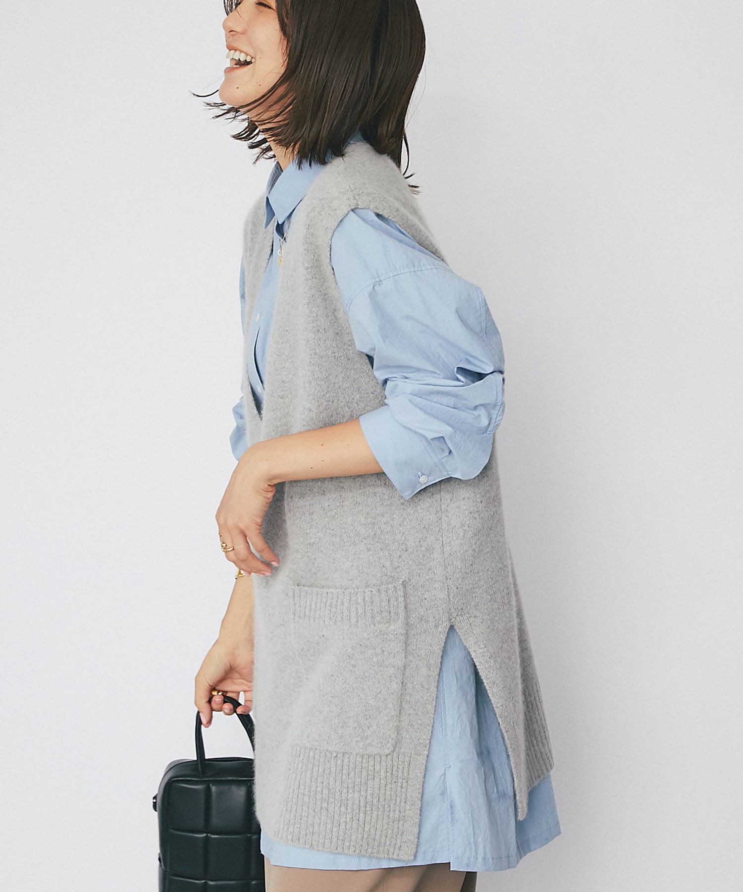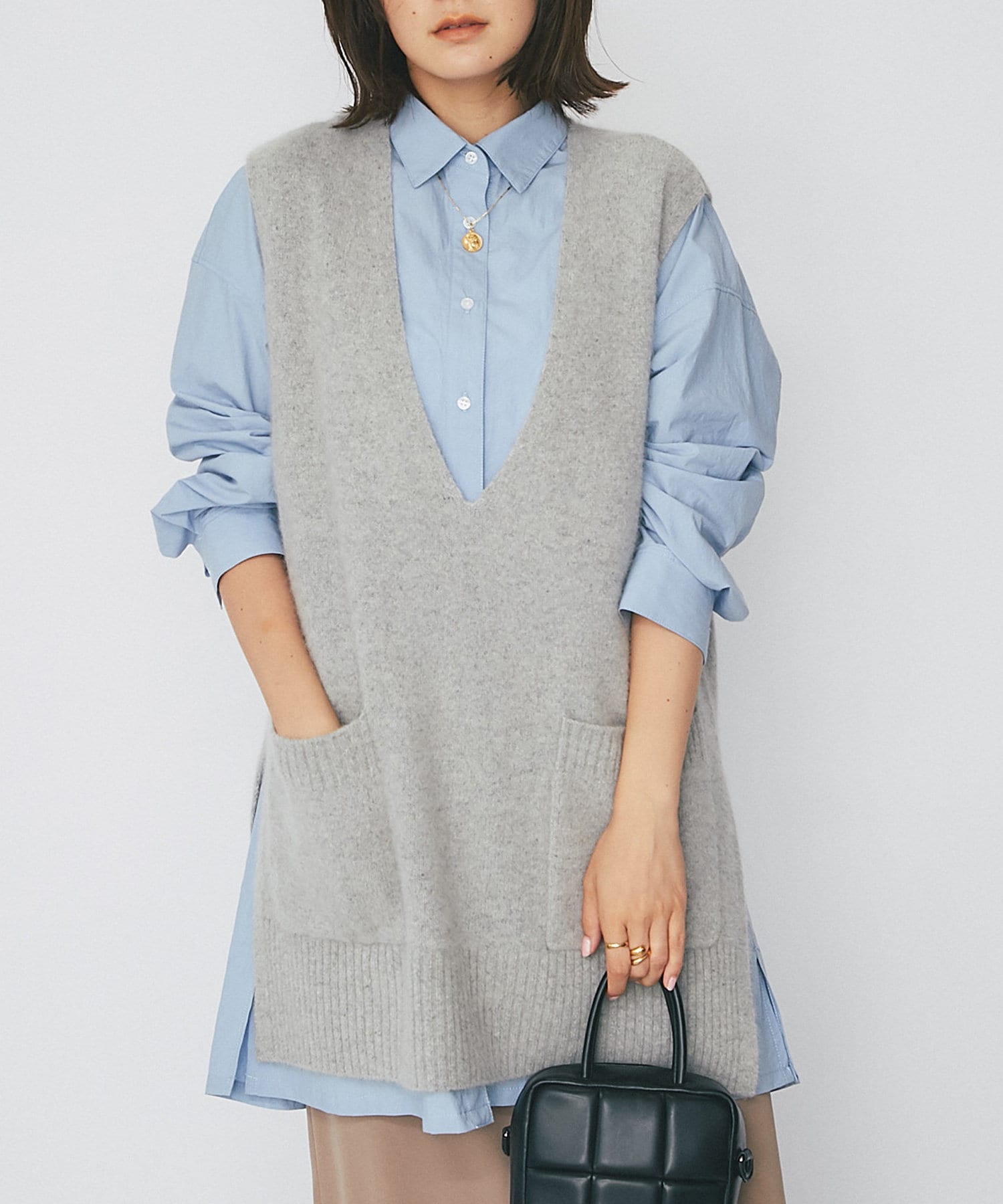 【こなれたレイヤードスタイルにおすすめ】ヘアリーヤーンロングベスト