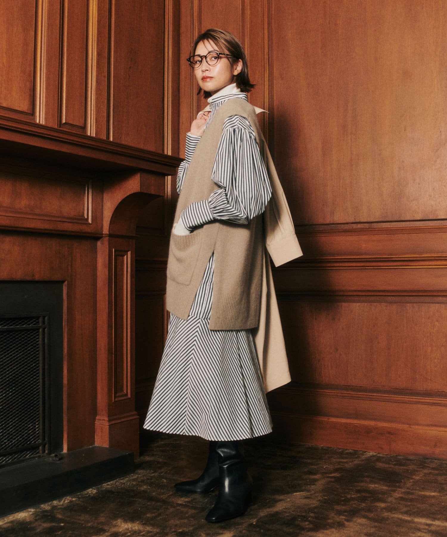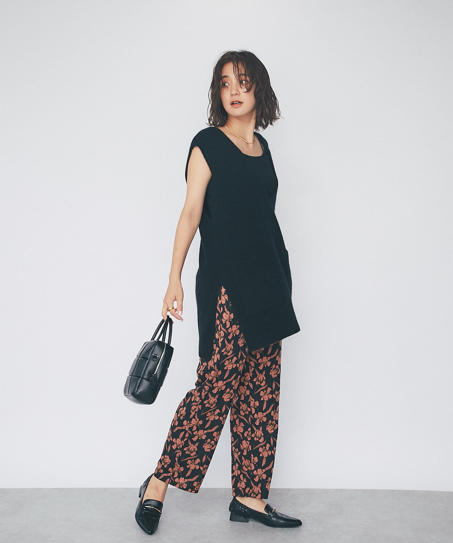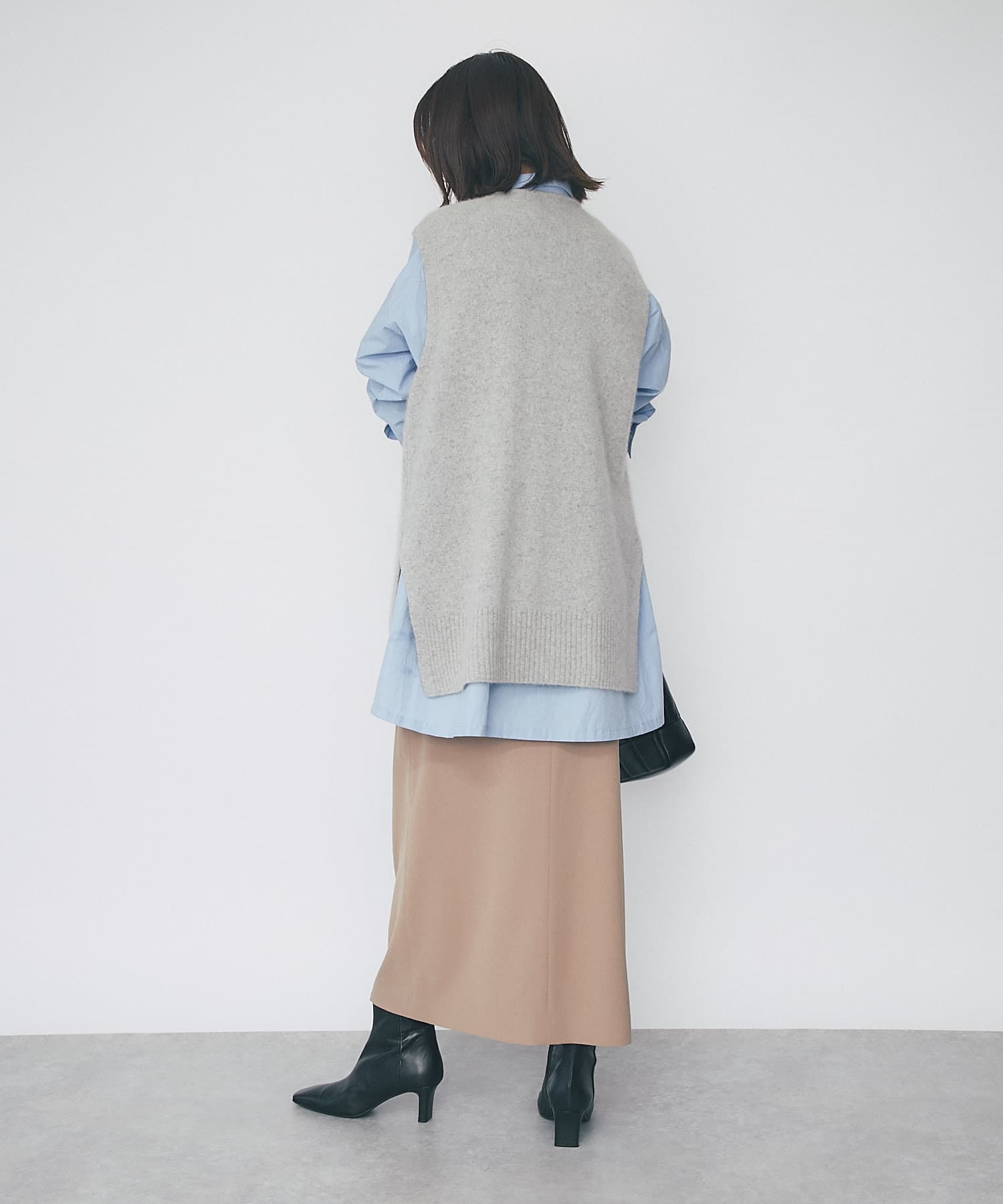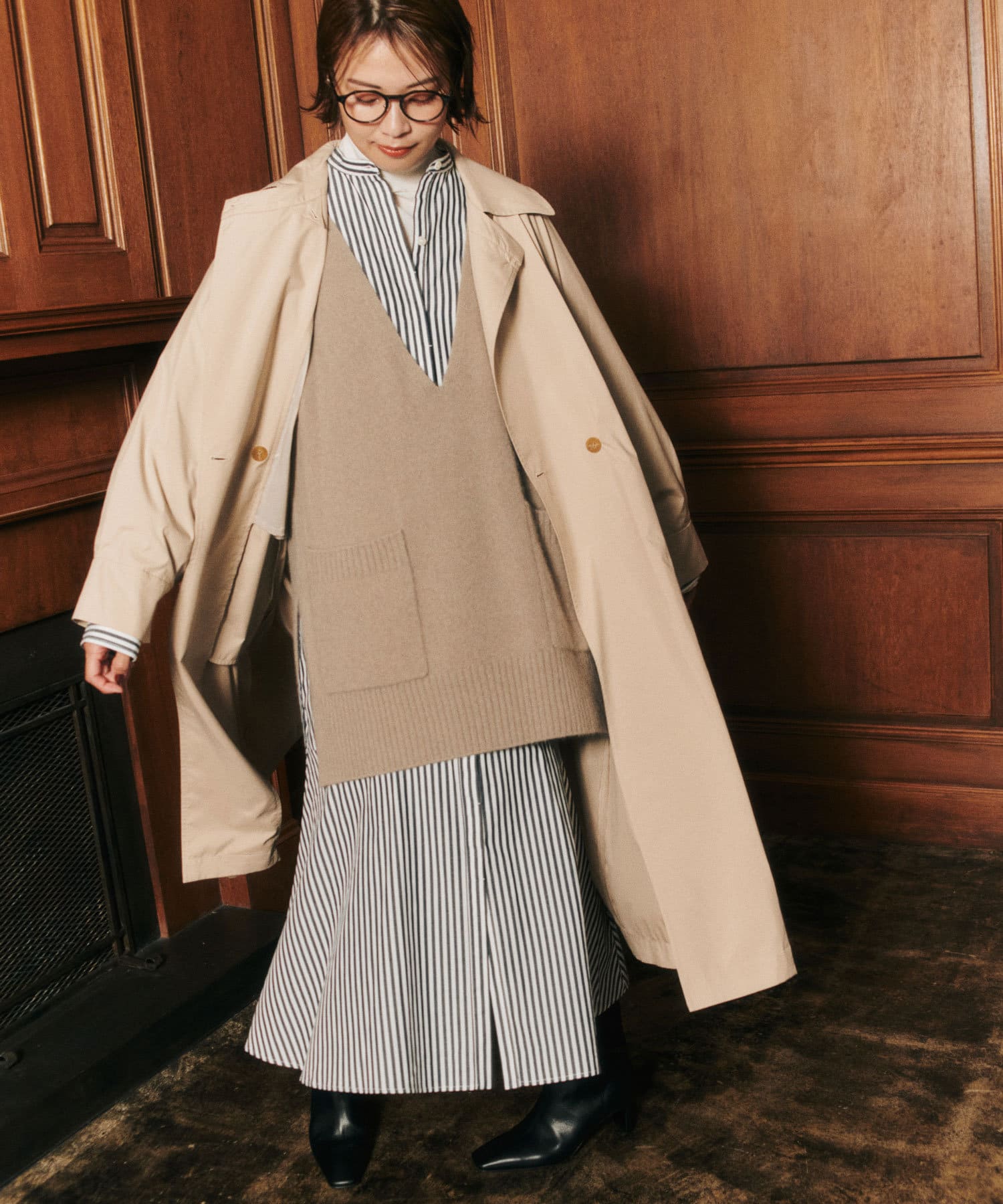 絶妙な丈感とサイドスリットで重たく見えず、ロング丈のスカートやワイドパンツなどボトムを選ばずに着用できるのがポイント。