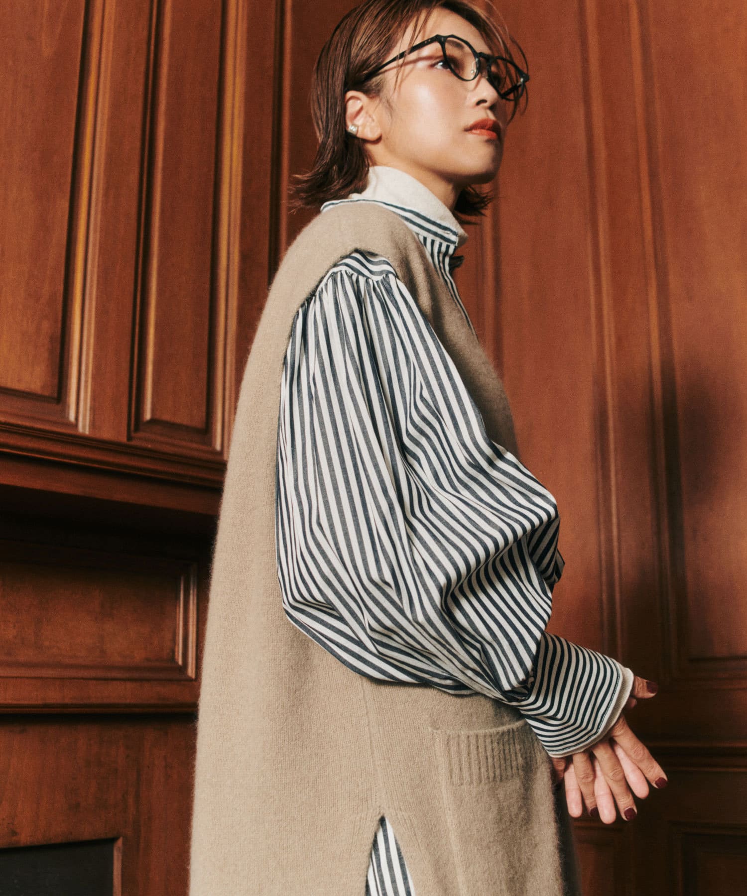シンプルなロンTやカットソー、シャツはもちろん、アームが広めなので、ボリュームブラウスなどの着こなしに◎