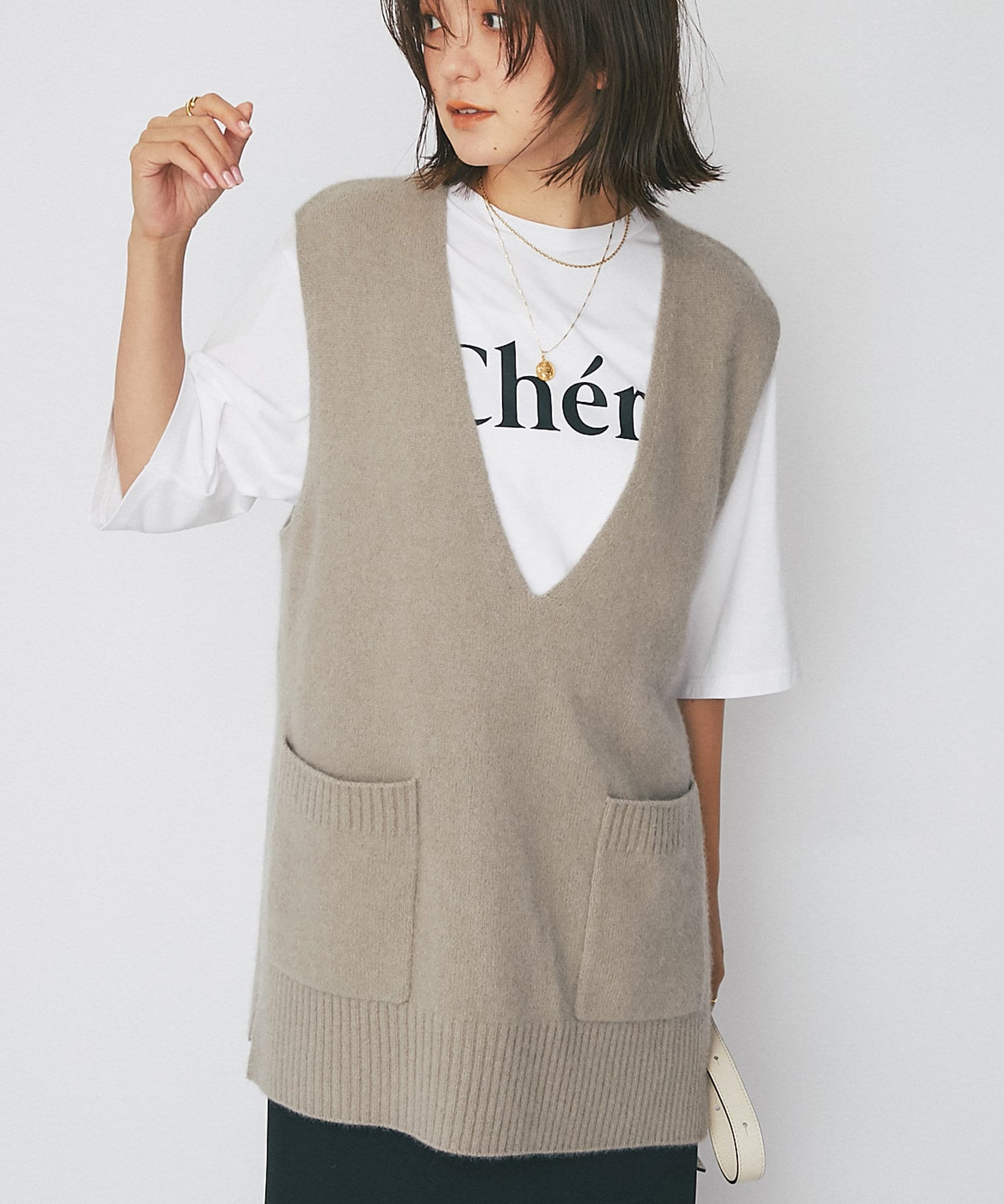 深めのVネックは、抜け感をプラスしこなれた印象に。