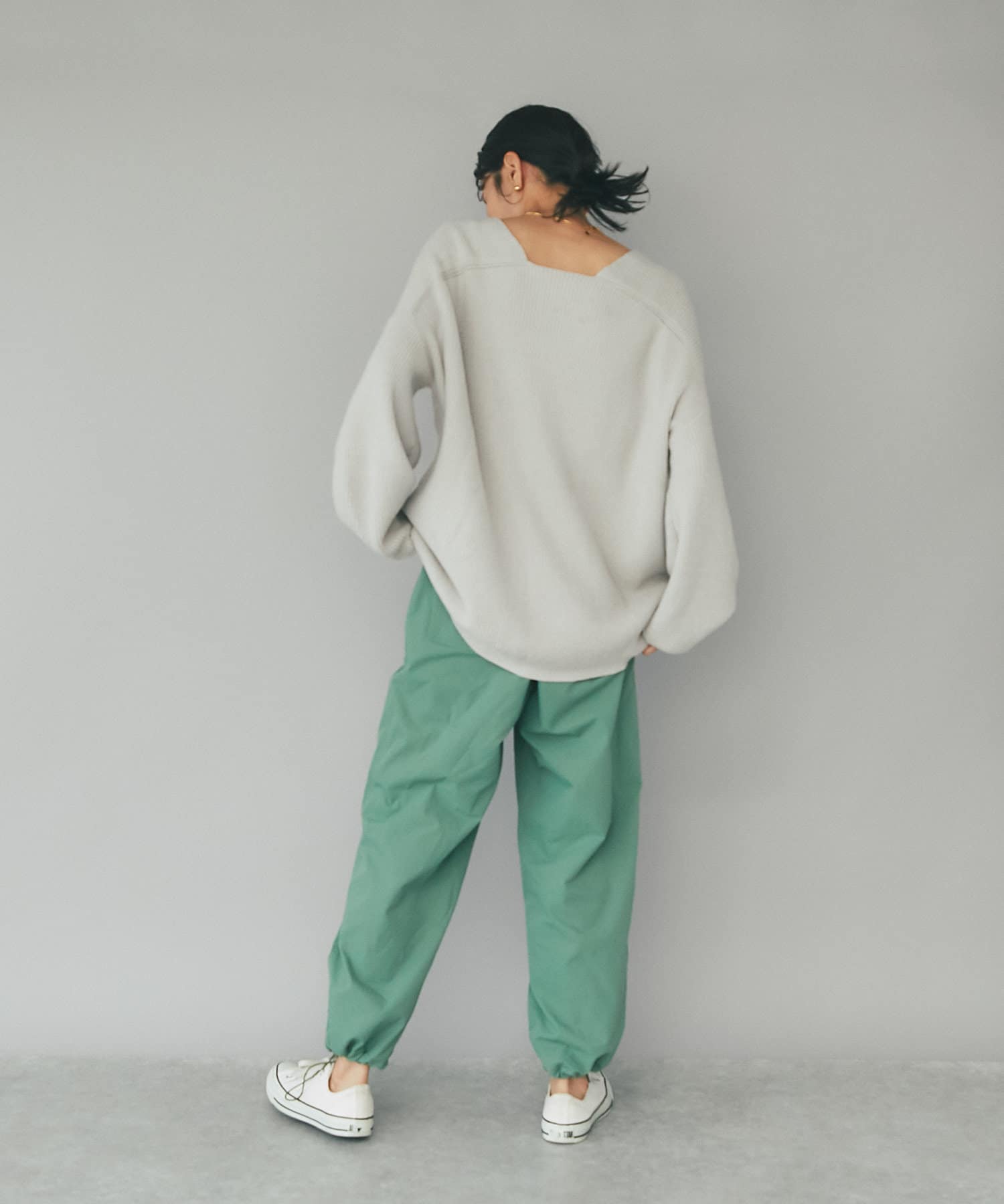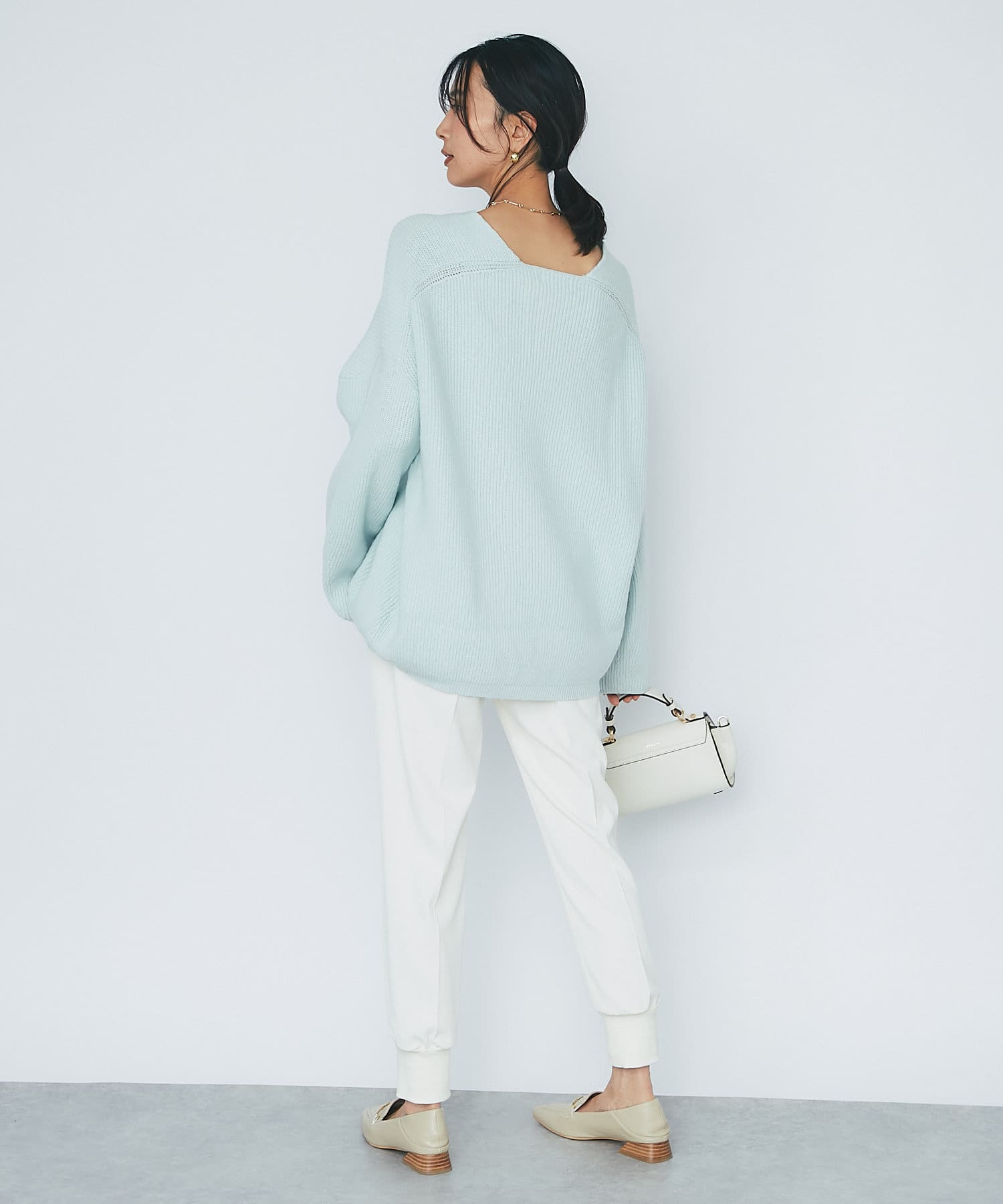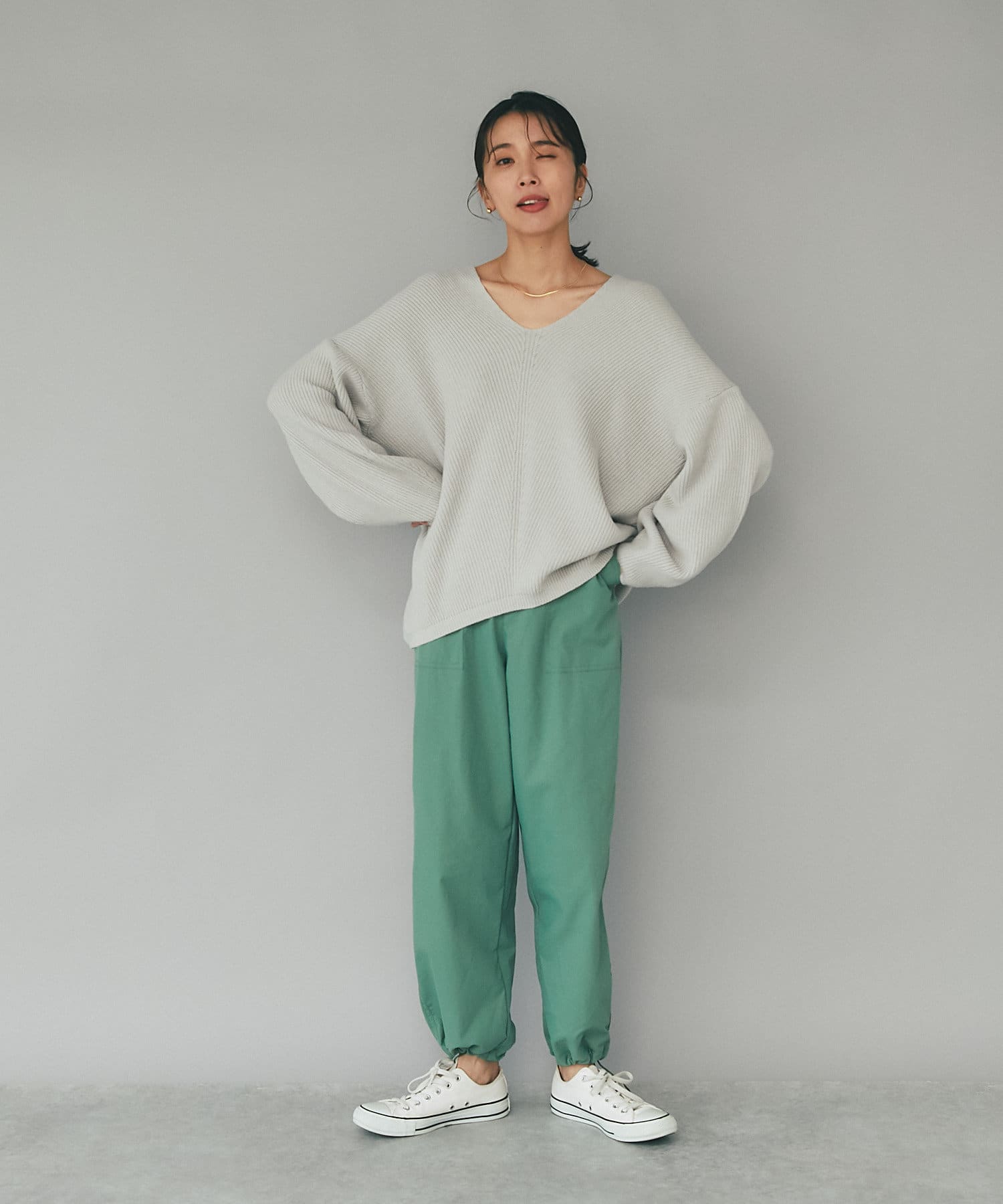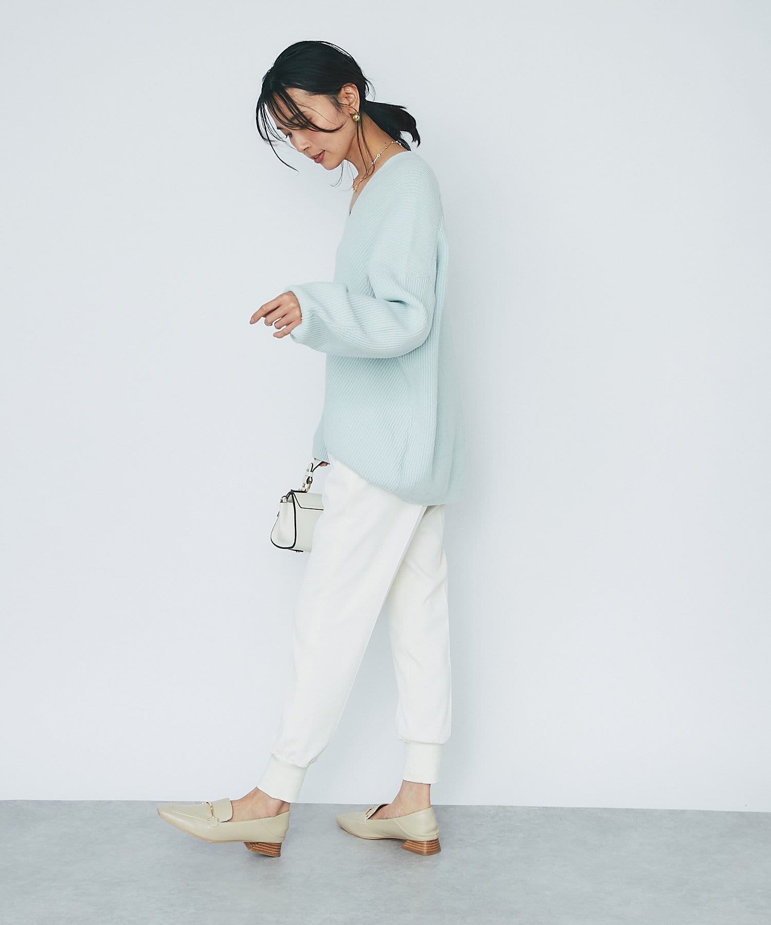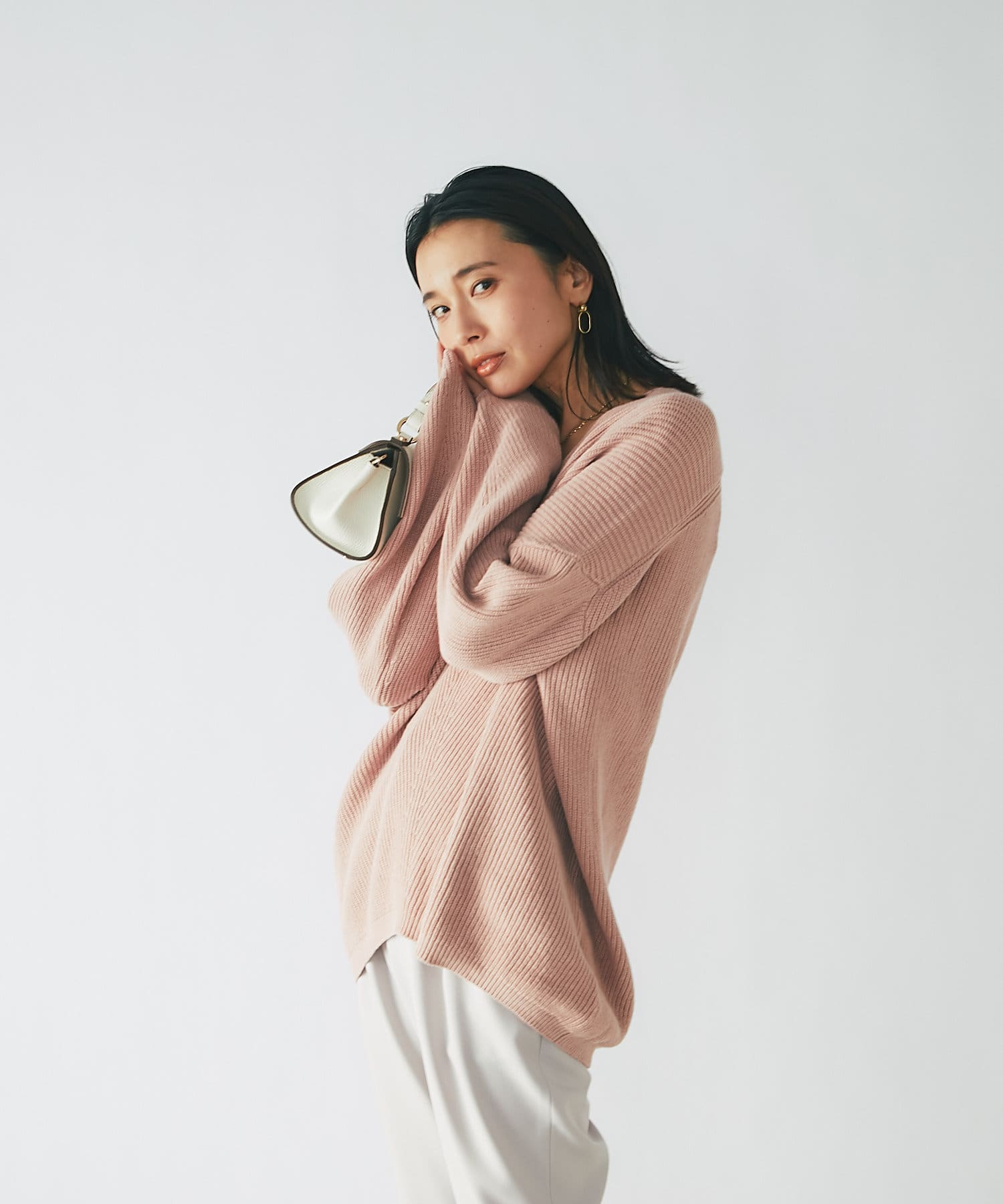 ユルッとしたサイズ感と丸みを帯びた袖と裾のバルーンフォルムが女性らしいVネックプルオーバー。