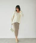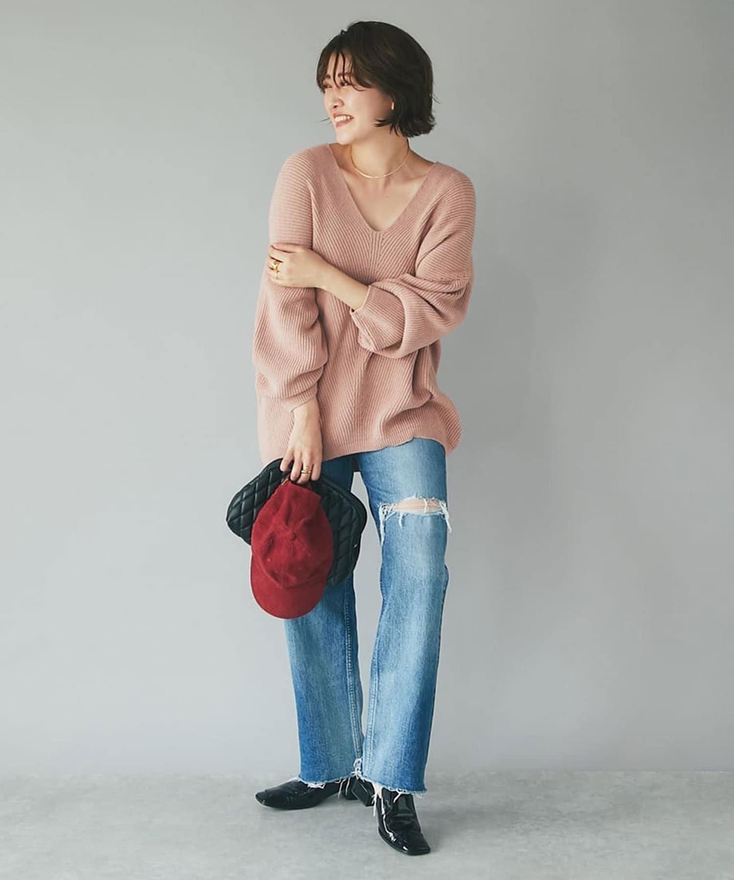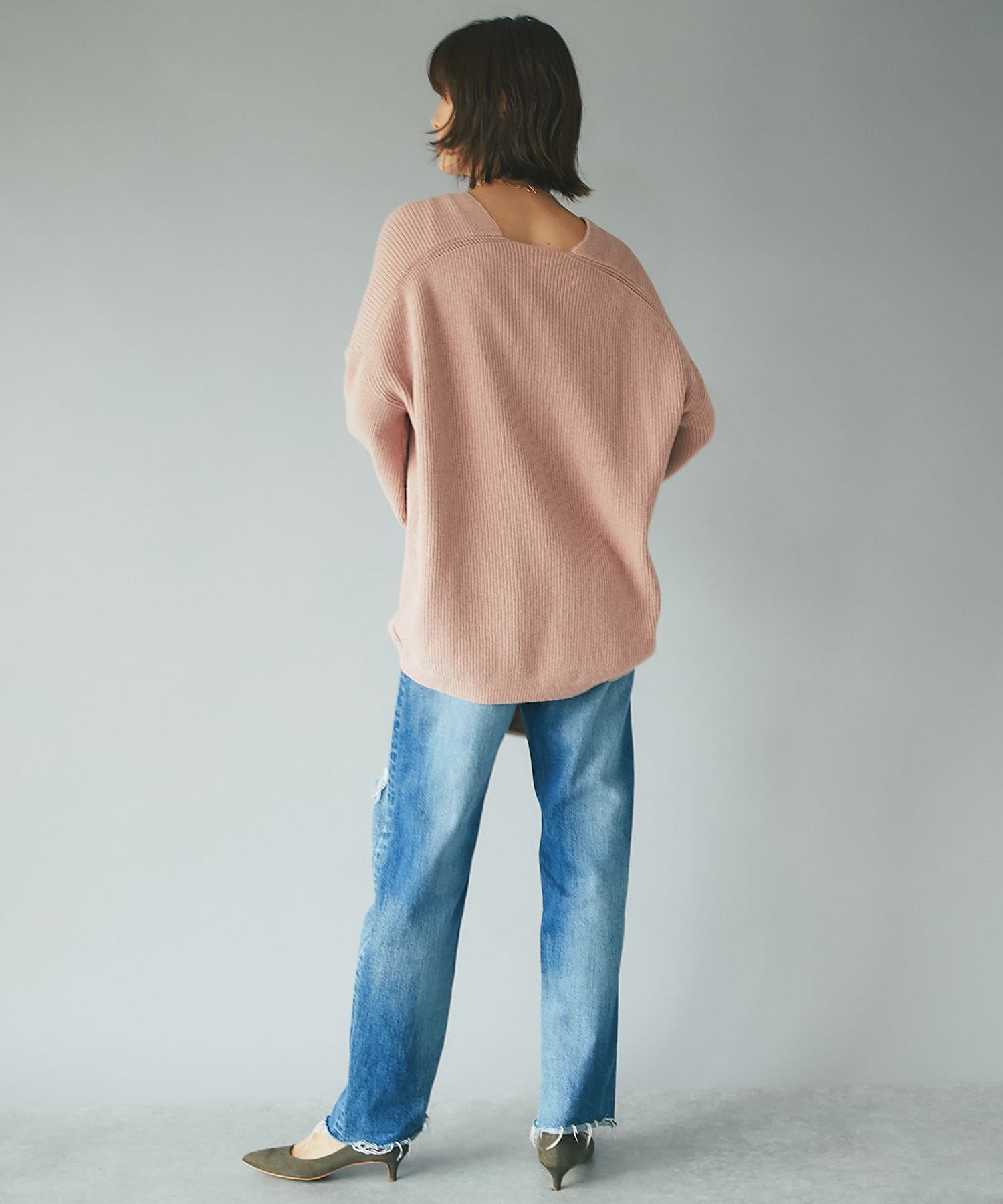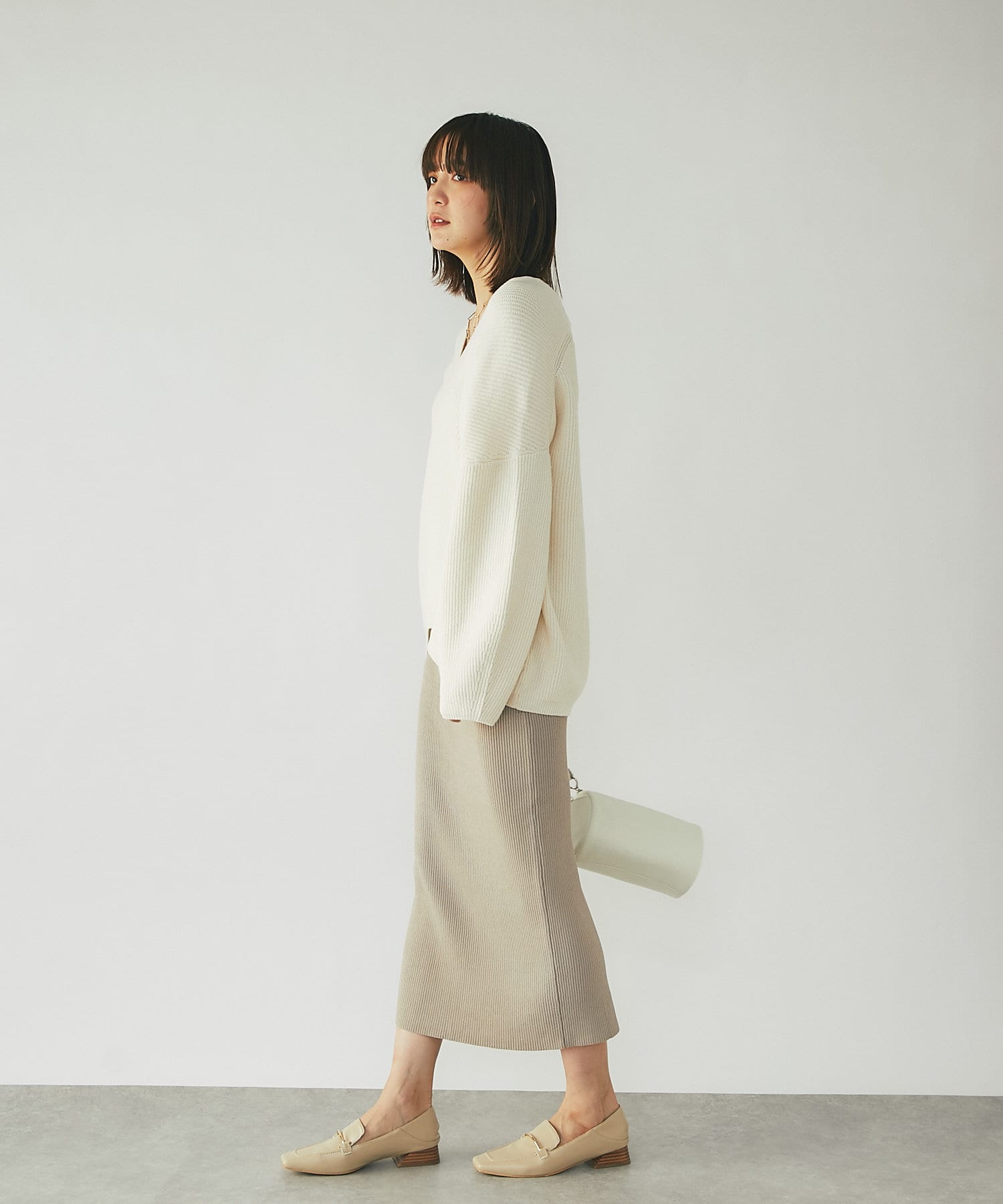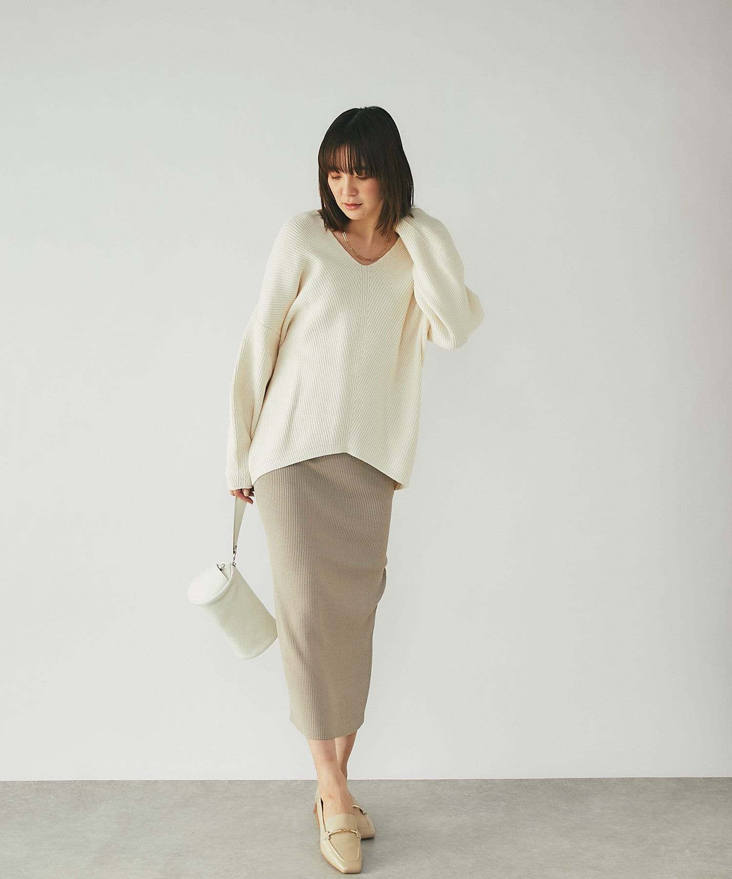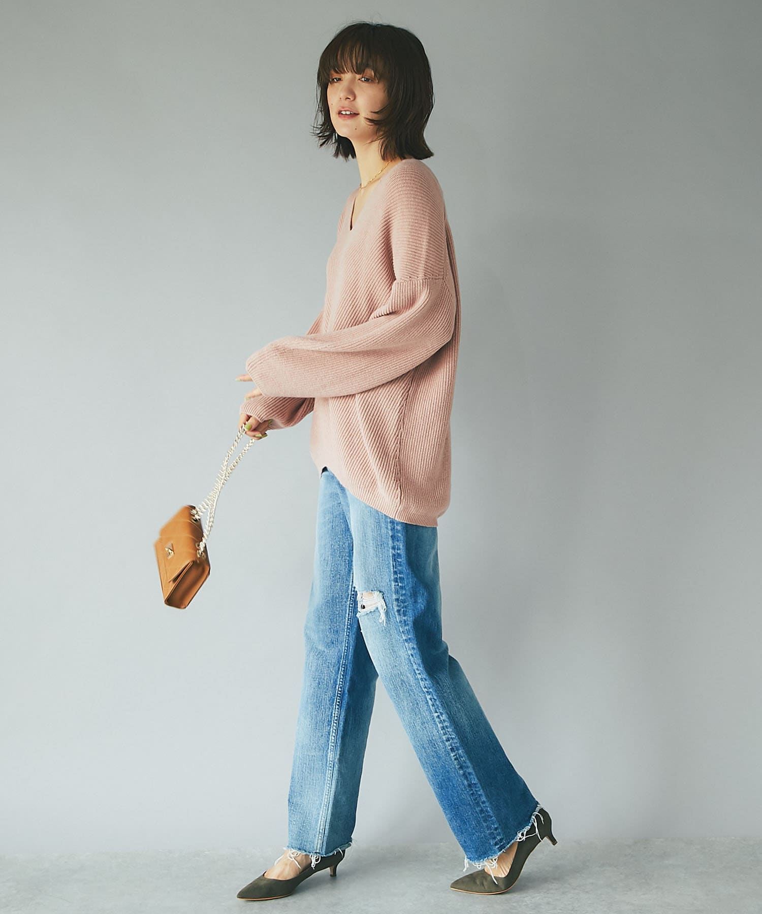 ユルッとしたサイズ感と丸みを帯びた袖と裾のバルーンフォルムが女性らしいVネックプルオーバー。