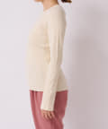 首元を綺麗に見せるネックラインにもこだわった大人のベーシックアイテムです。 コットンタッチのセミドライな風合いとシンプルなデザインはアウターINでも1枚でもサマになり、ロングシーズン着回せます。 ご自宅で手洗い可能。