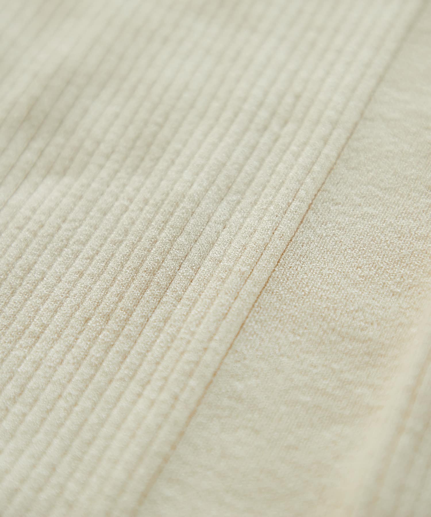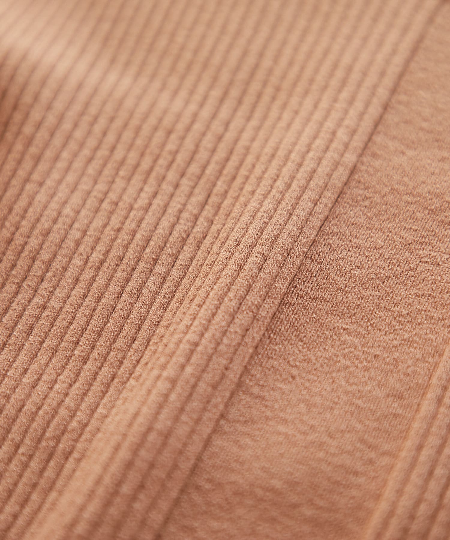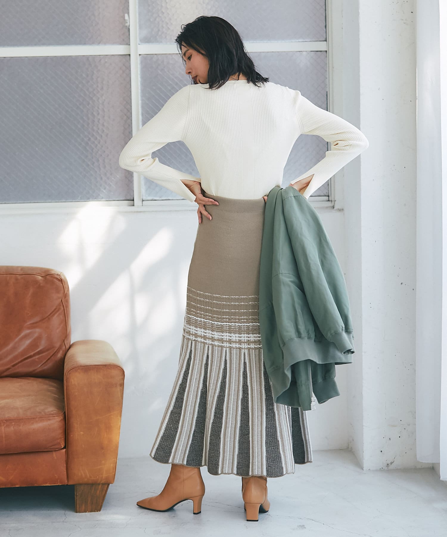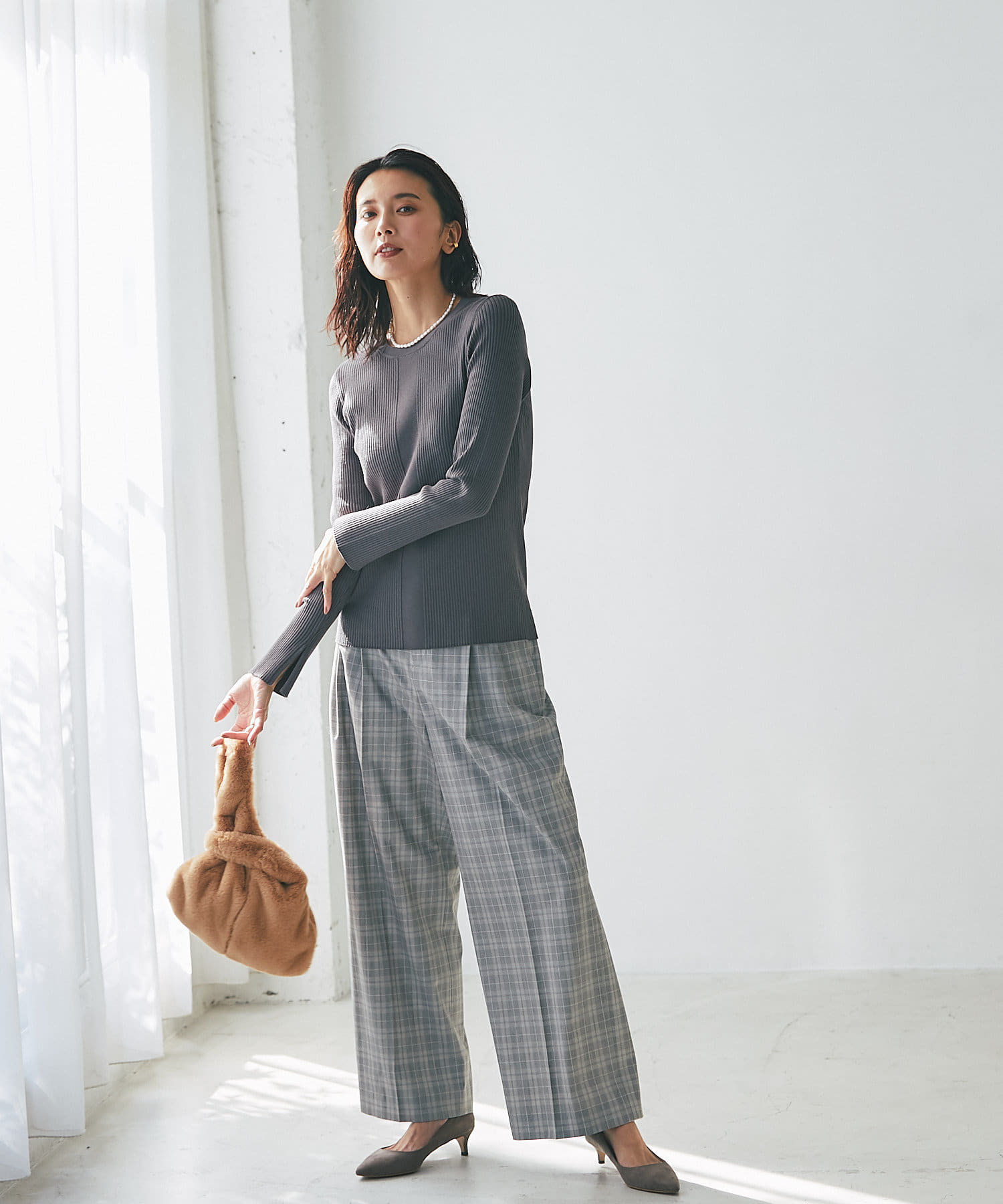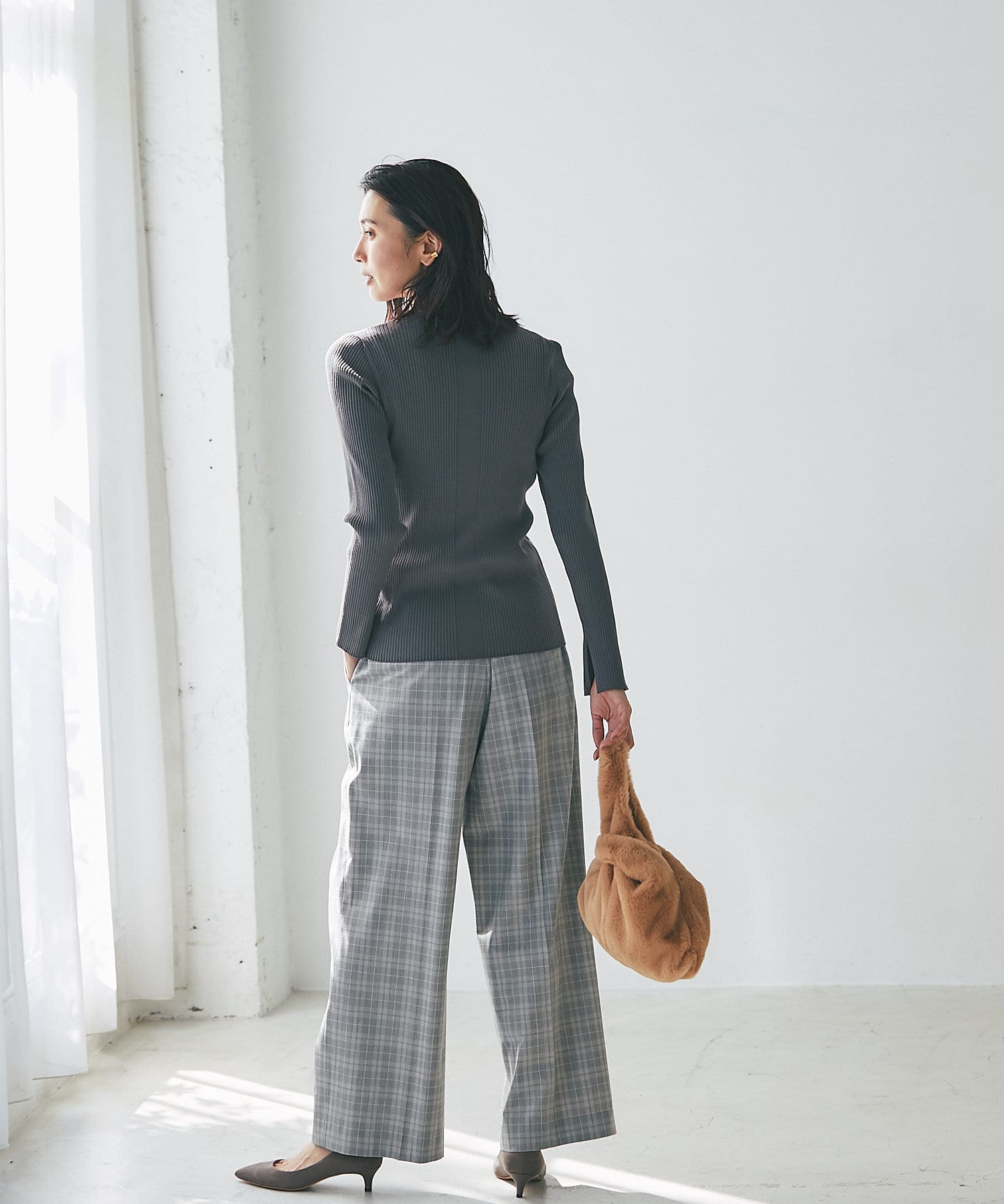 程よくフィットするサイズ感とセンターライン入りの編み地がボディラインをすっきり見せてくれるワイドリブニット。 やや長めの袖丈と袖口のスリットがフェミニンでこなれた着こなしを叶えます。