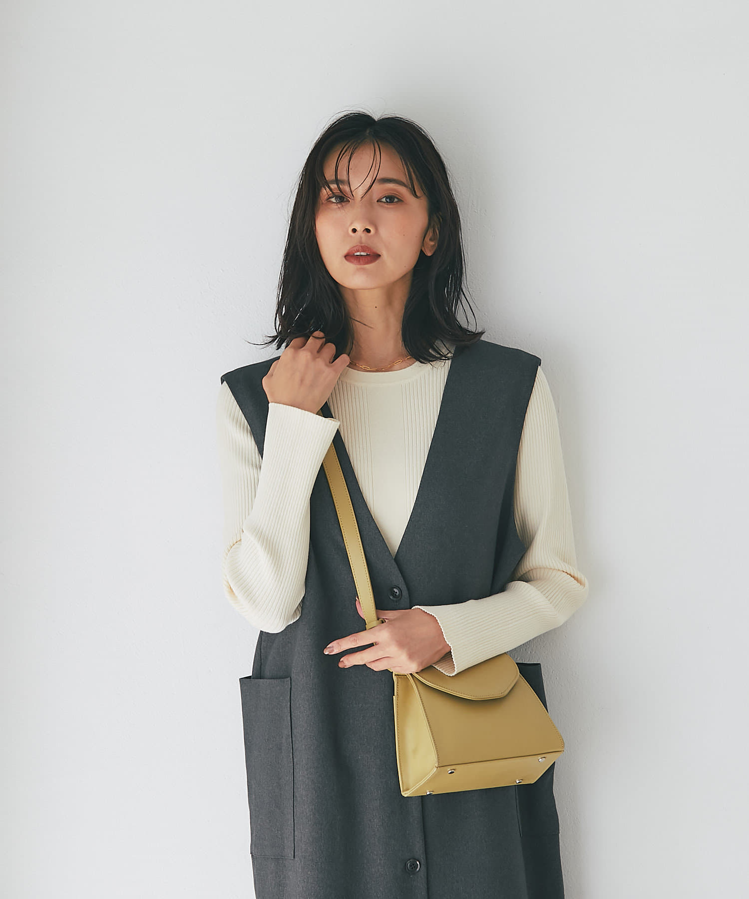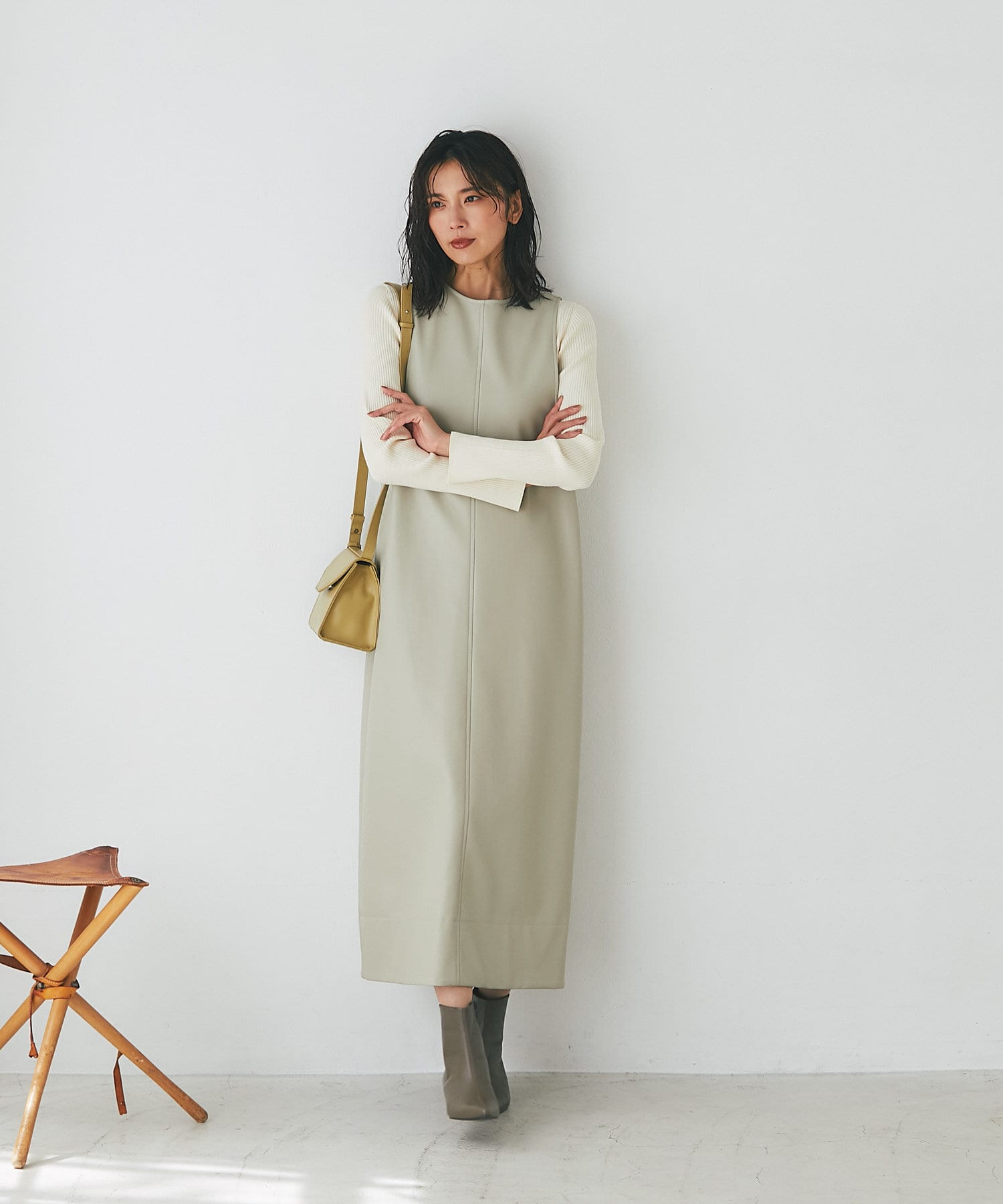 【小山田 早織さん着用】セミドライリブクルーネックニット