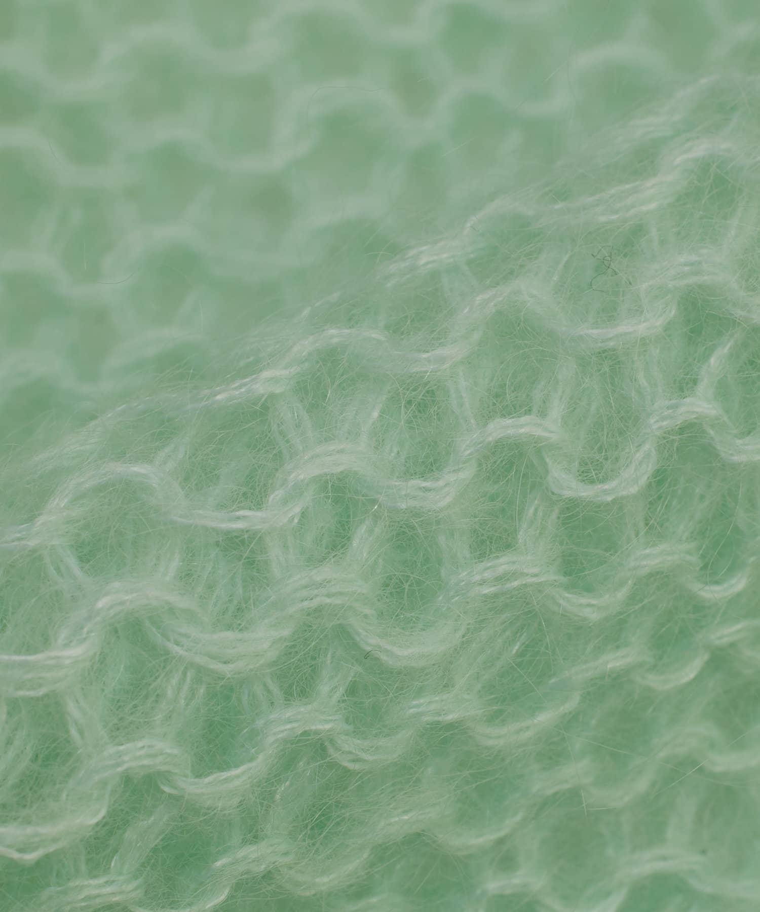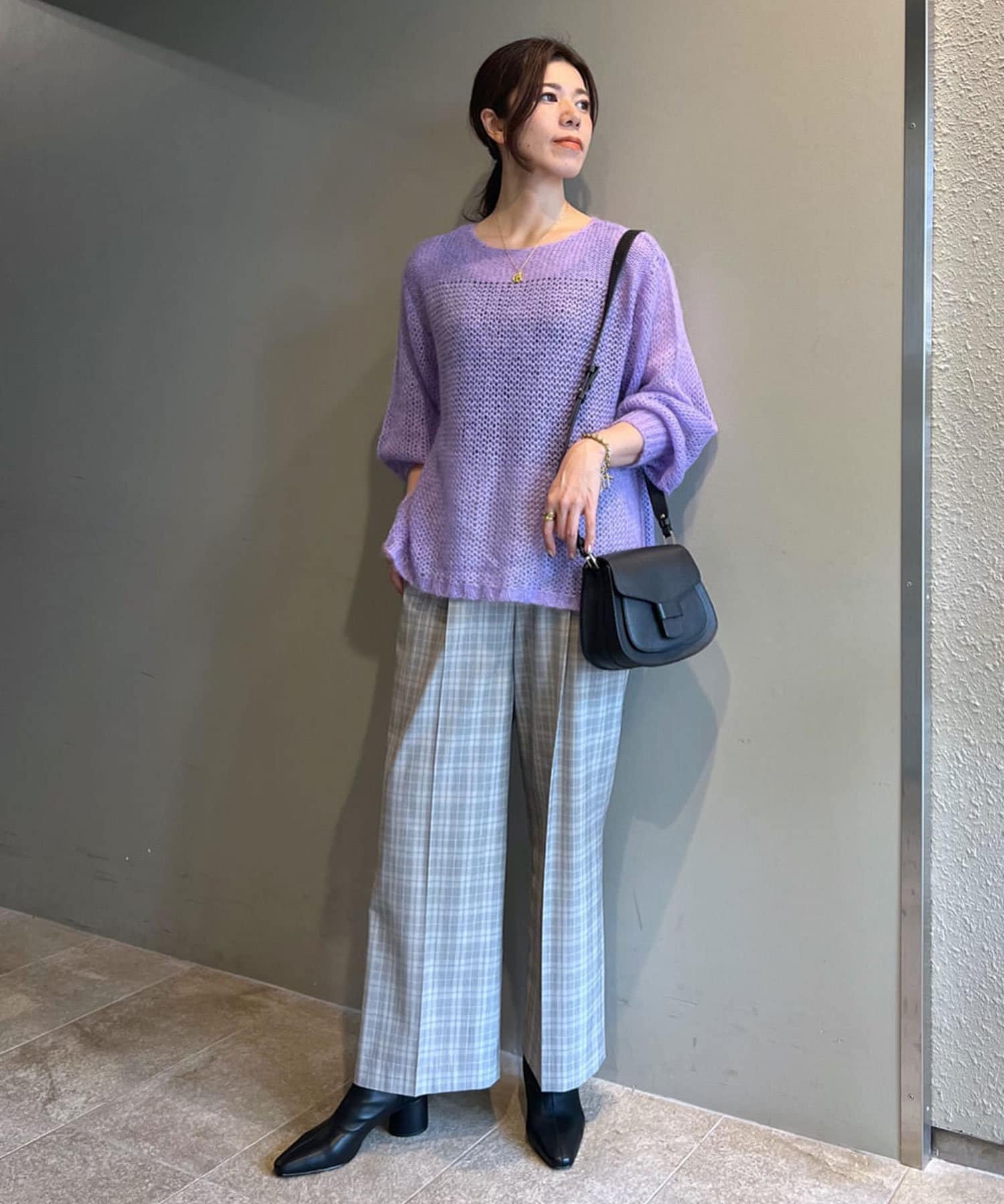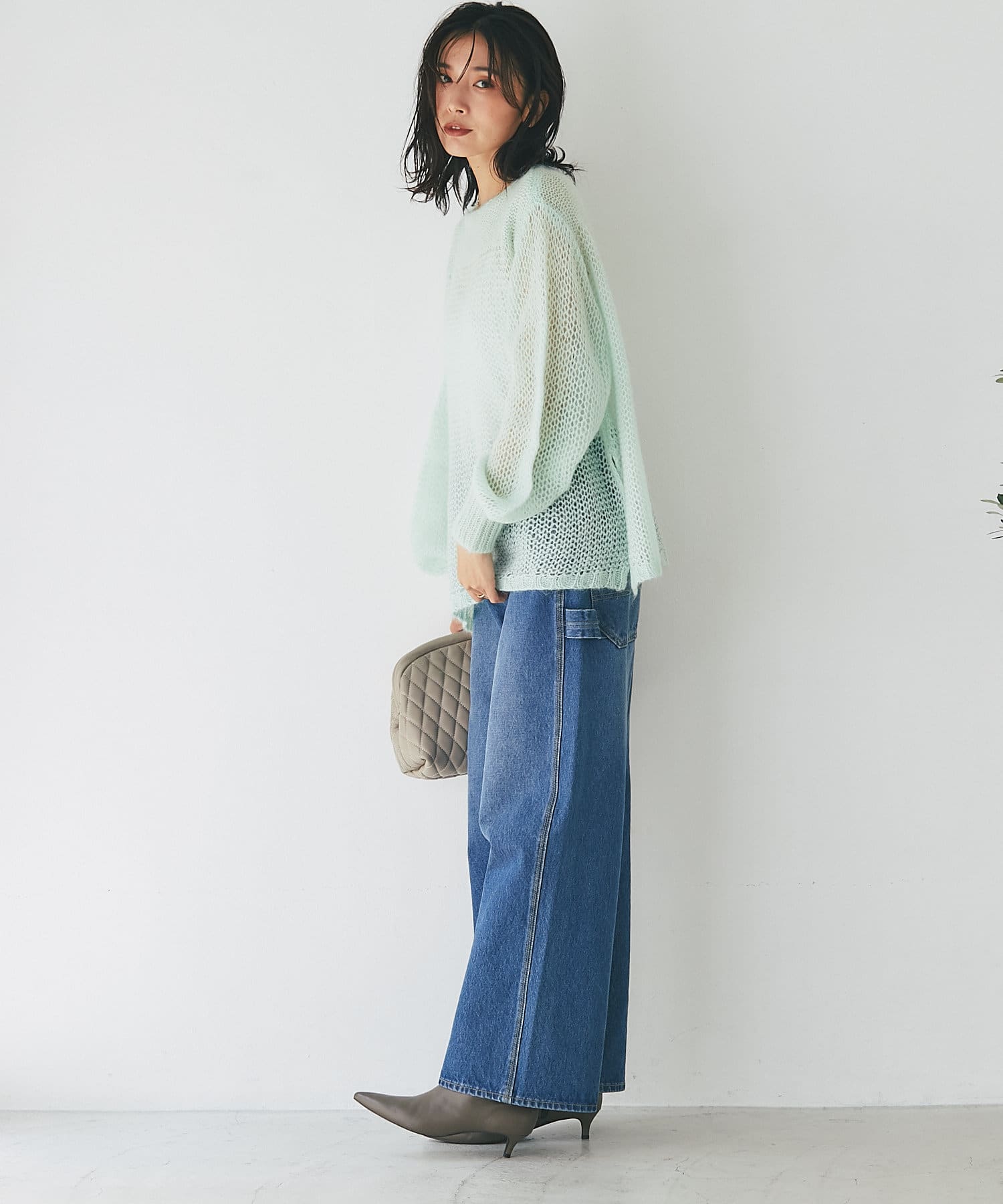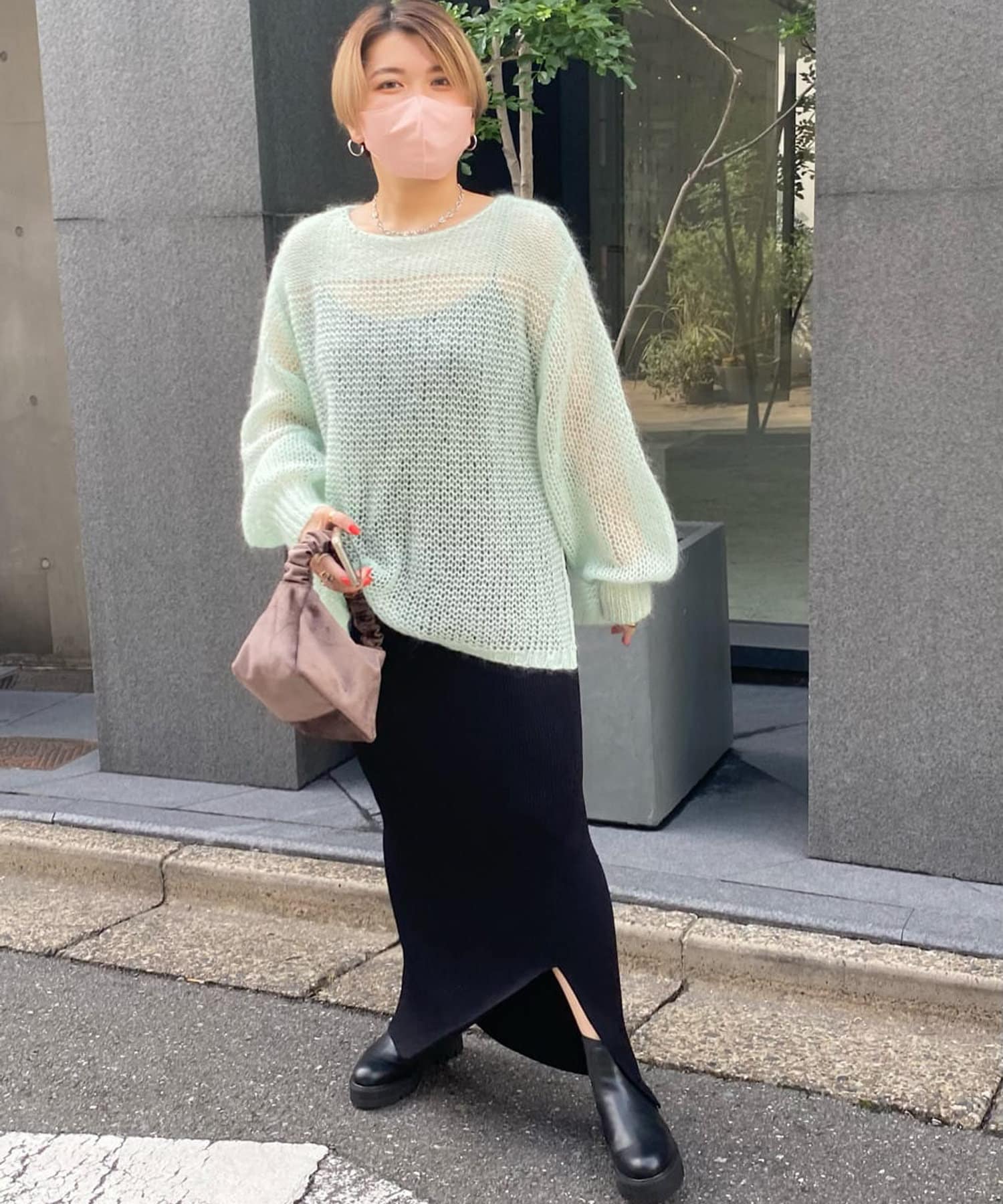 モヘヤの起毛感とトレンド感のあるのレイヤードスタイルも簡単に決まる一枚です。