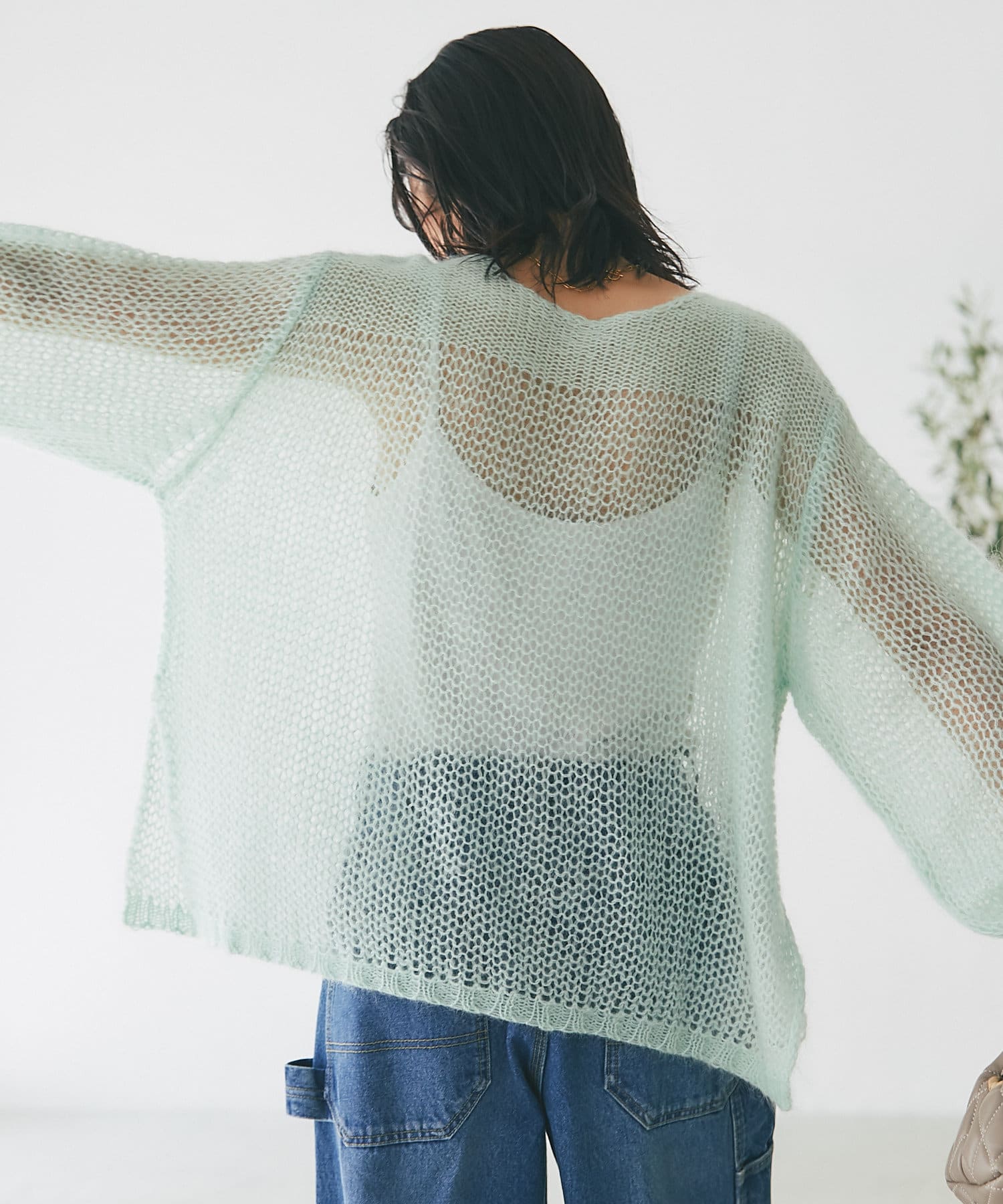 ざっくりとした編み地でリラックス感のある透かし編みニット。