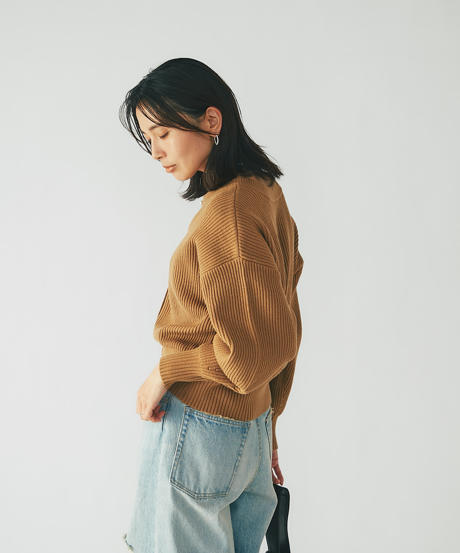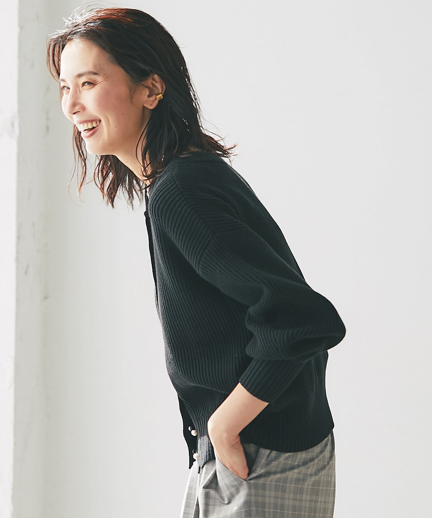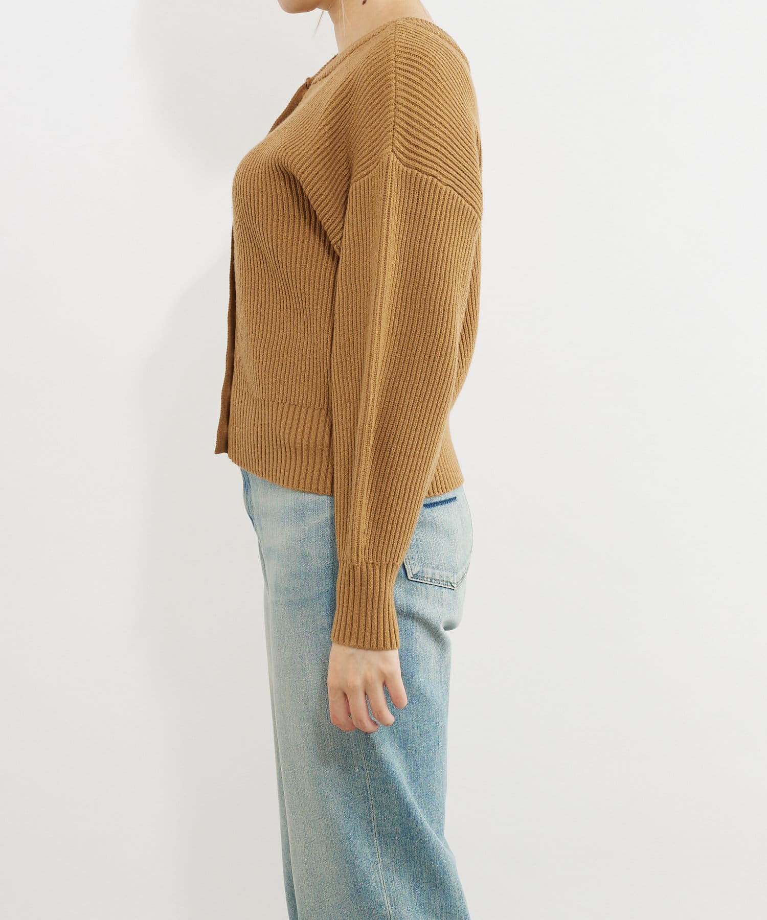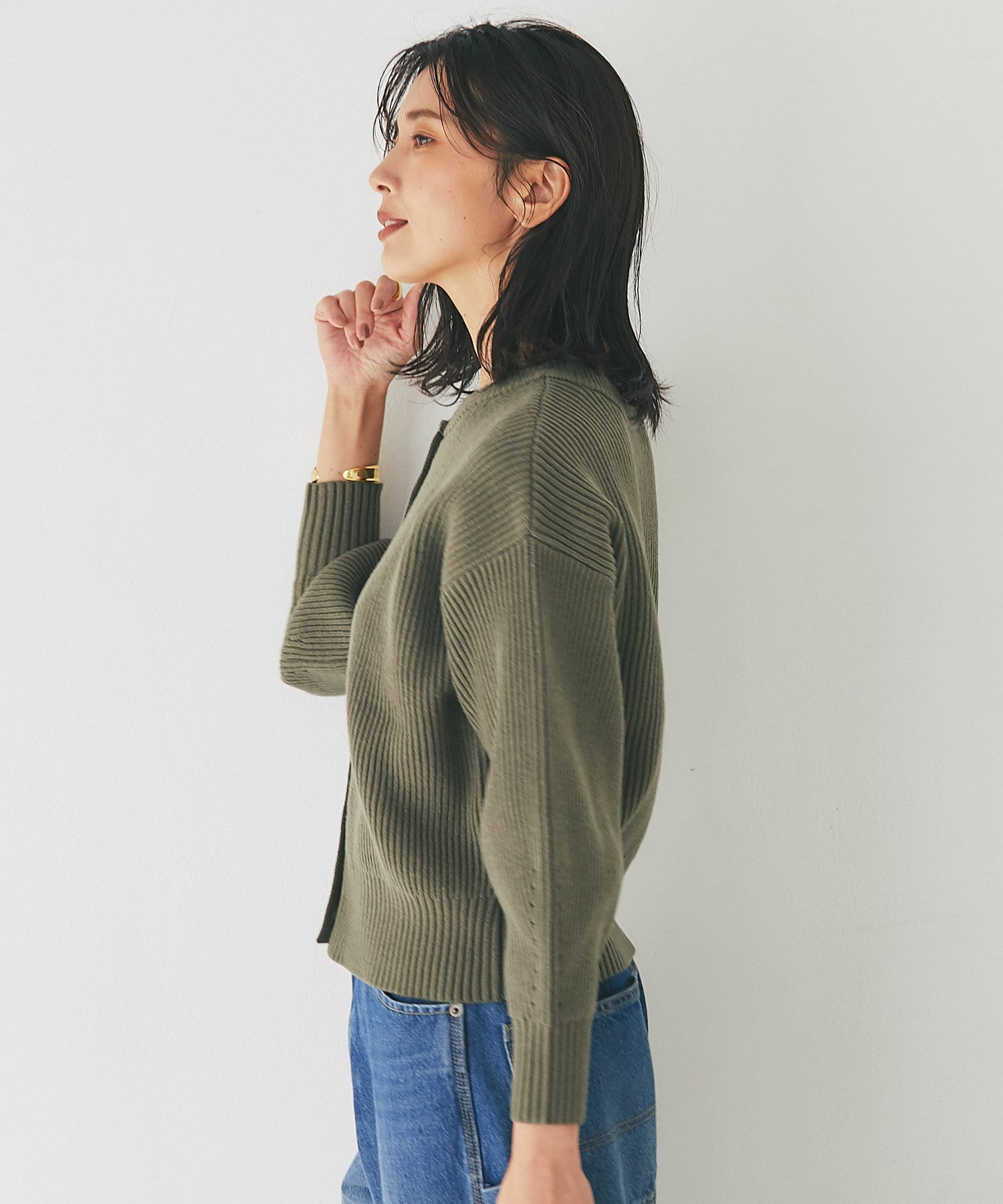 カーディガンとしてはもちろん、ボタンをとめてプルオーバーとしても着映えするデザインです。